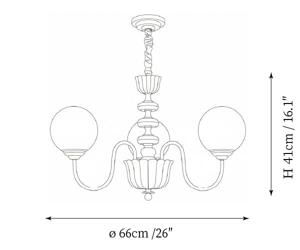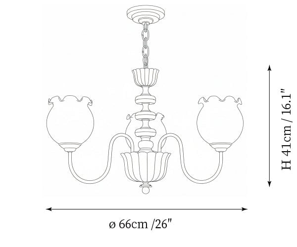 - Model A 3-Lights Size: Dia 66cm x H 41cm / ∅ 26″ x H 16.1″