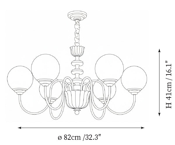 - Model A 6-Lights Size: Dia 82cm x H 41cm / ∅ 32.3″ x H 16.1″