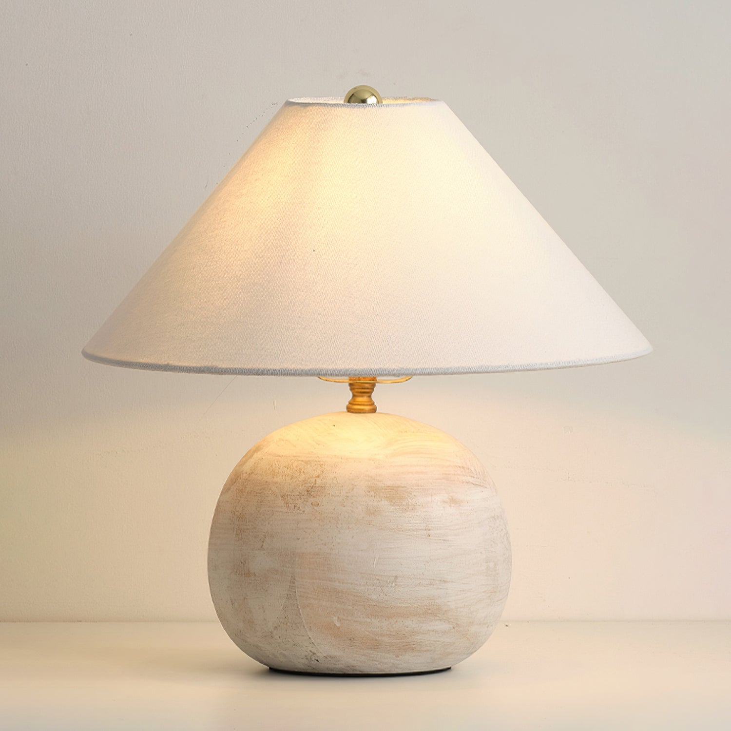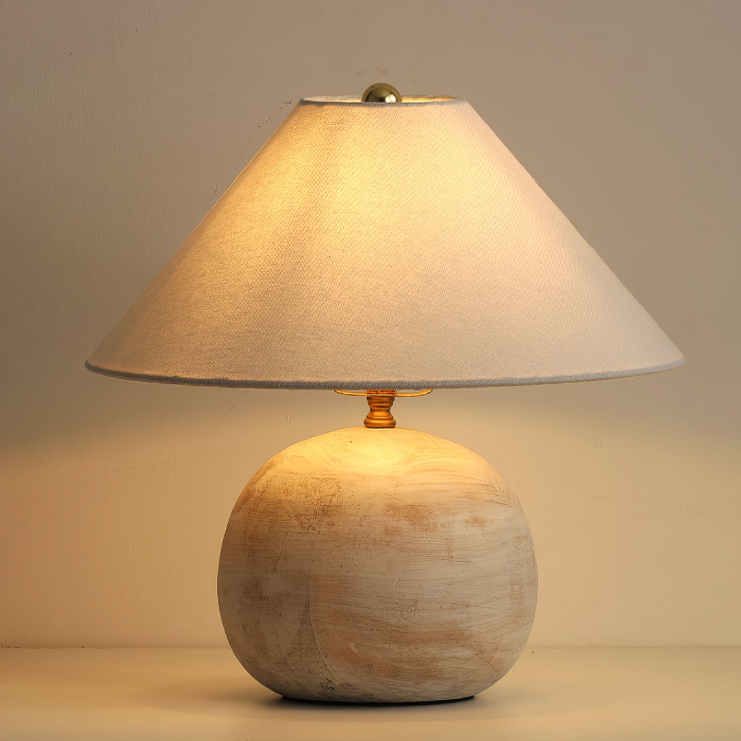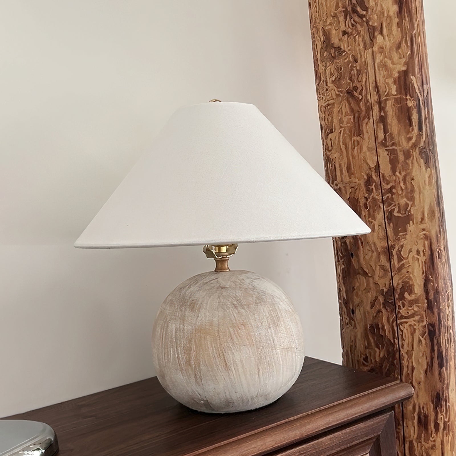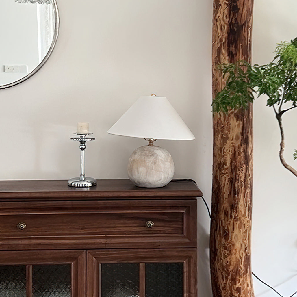 Bring warm, soothing style to your home with the Houa Table Lamp from Mooijane. Featuring a beige wooden globe base and a white tapered fabric shade, this freestanding table lamp adds texture and depth to your decor. Perfect for a coffee table, beside a sofa, or on an entryway console.