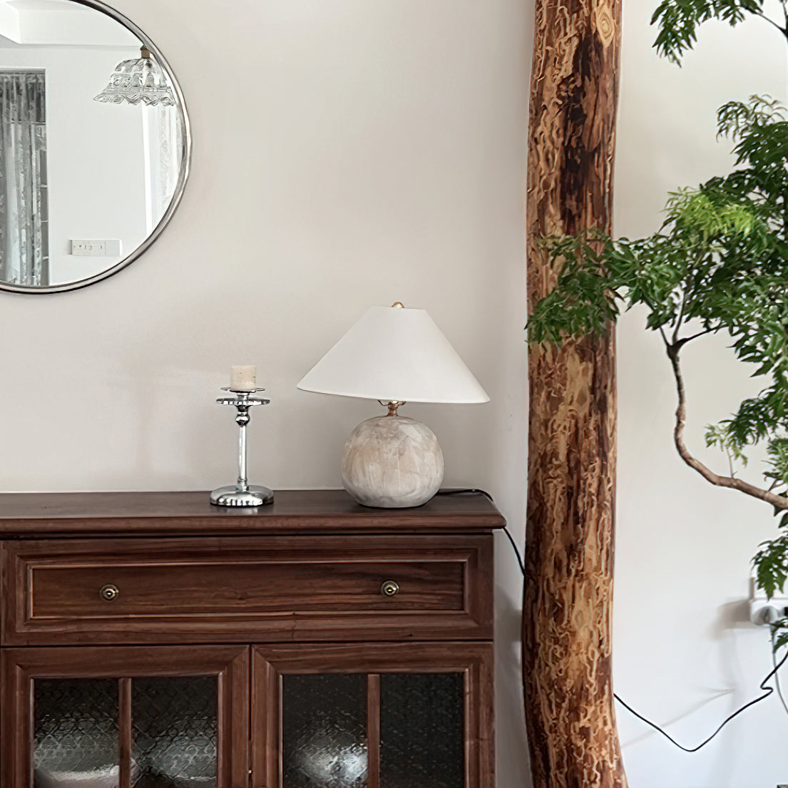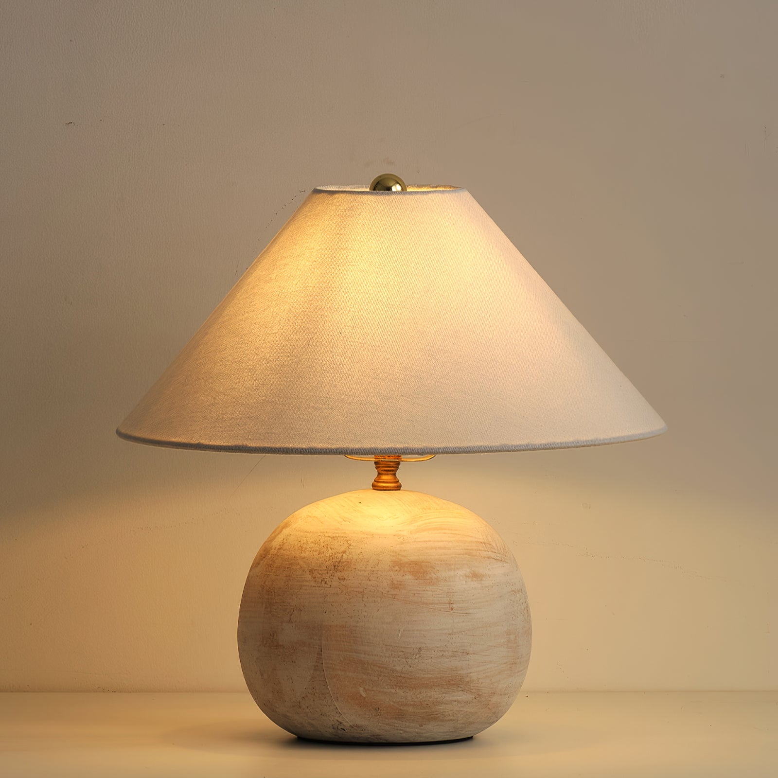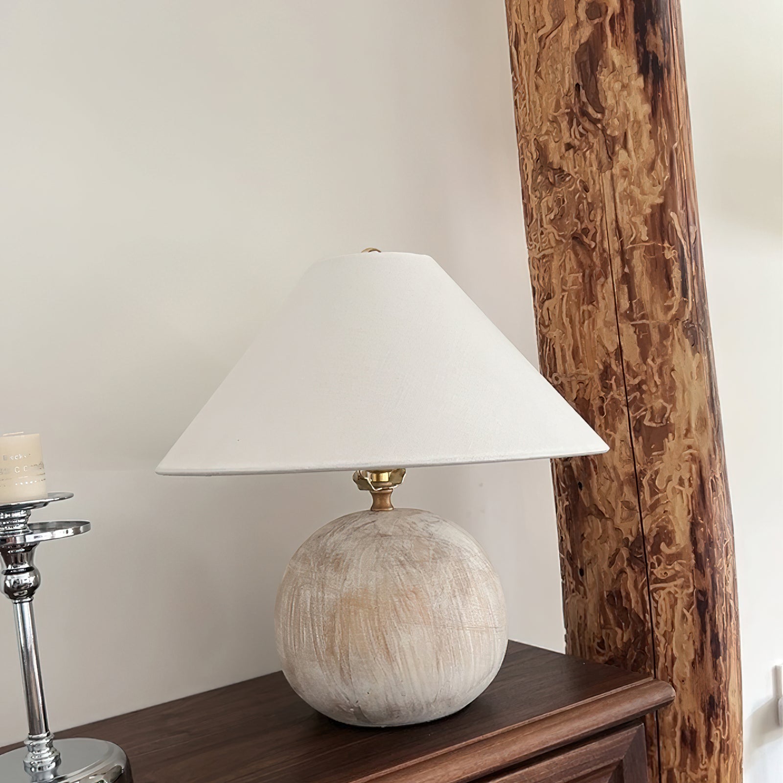 Bring warm, soothing style to your home with the Houa Table Lamp from Mooijane. Featuring a beige wooden globe base and a white tapered fabric shade, this freestanding table lamp adds texture and depth to your decor. Perfect for a coffee table, beside a sofa, or on an entryway console.