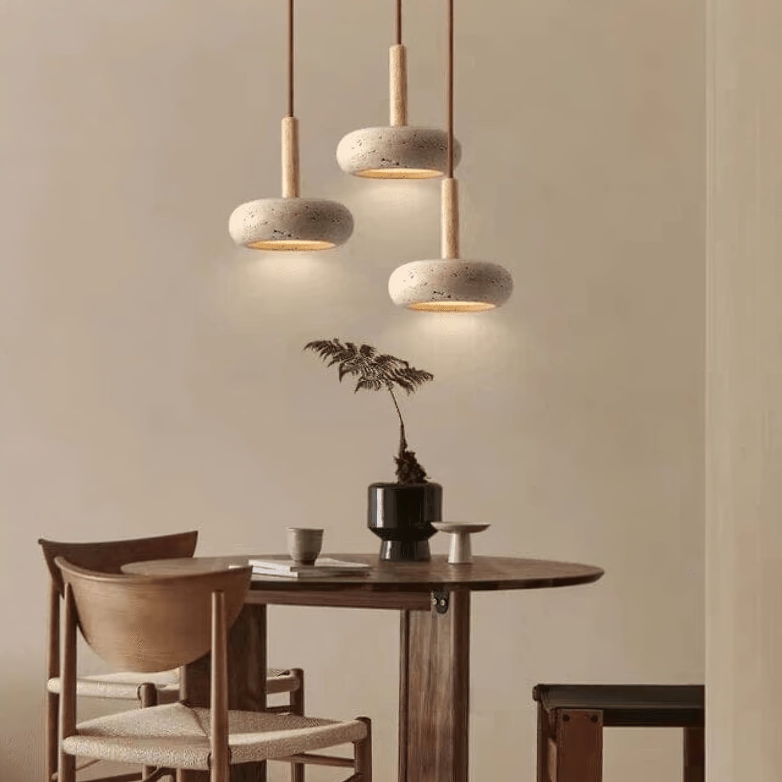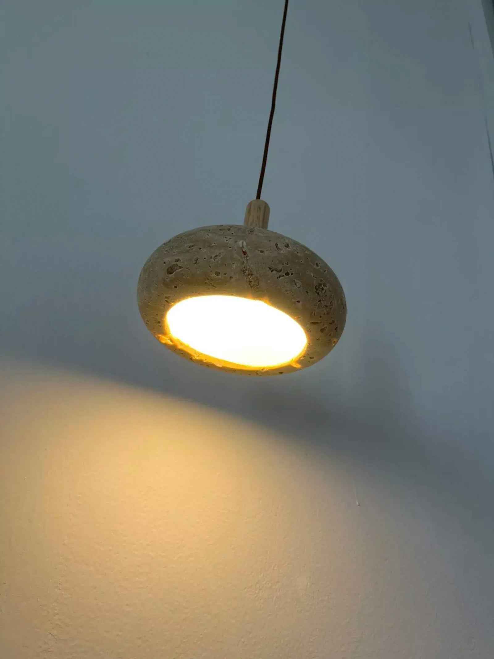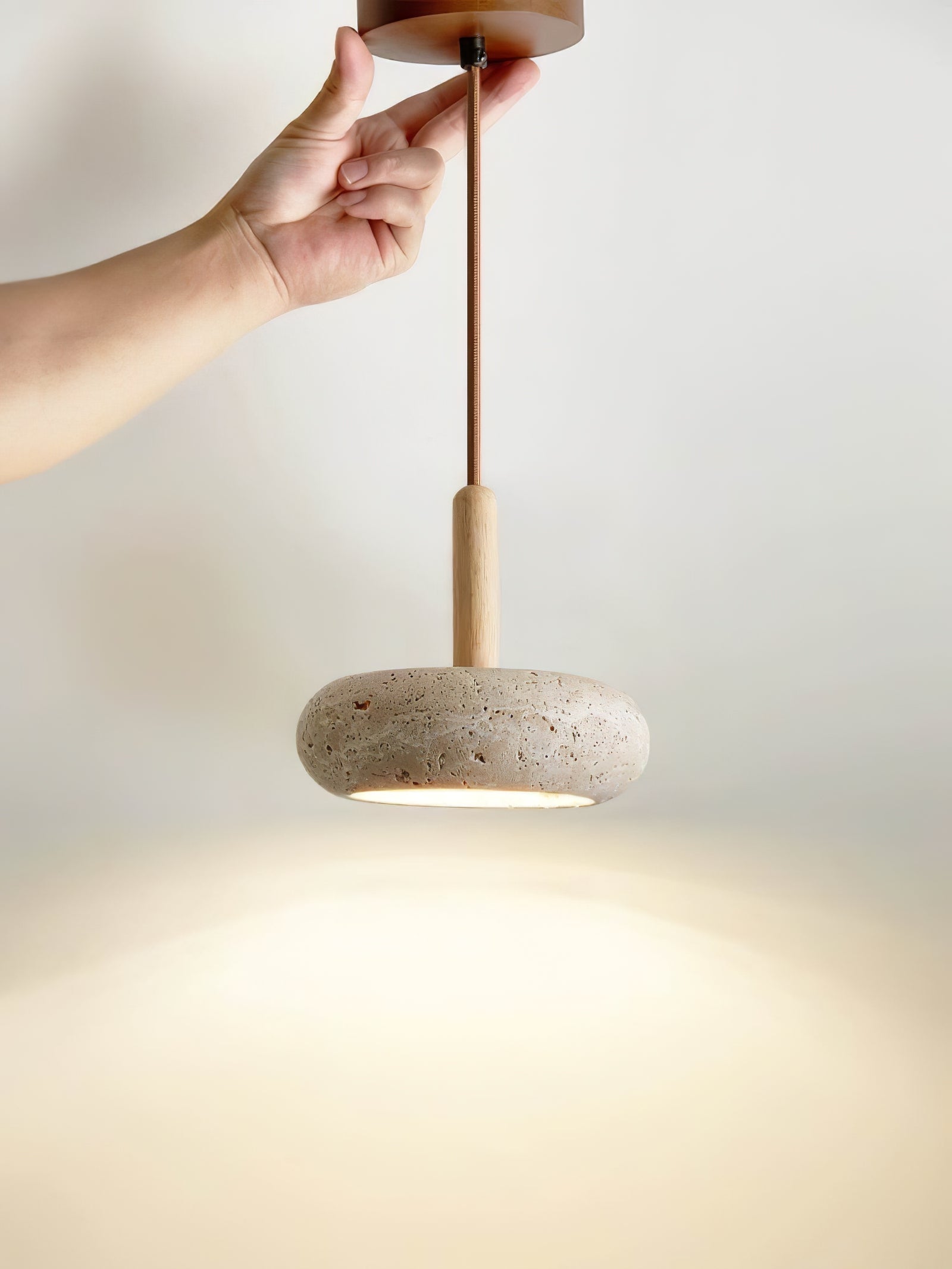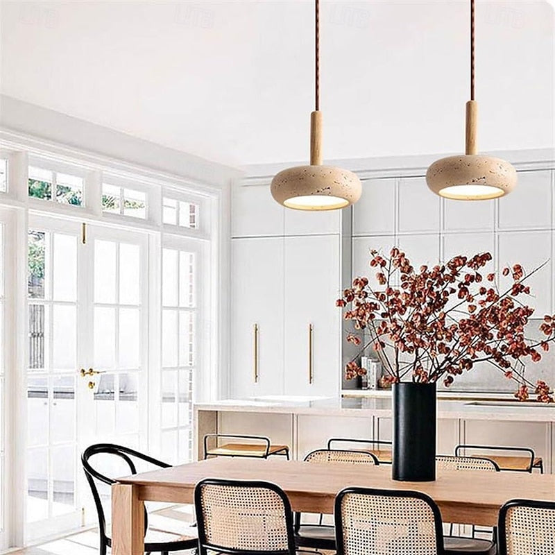 The Hourglass Travertine Pendant Light combines natural textures with a sleek, modern silhouette. Featuring a unique hourglass-shaped travertine stone shade, this pendant light brings earthy elegance to any space. The smooth wooden handle adds a touch of warmth, creating a balanced contrast with the rugged travertine. Emitting a soft, focused glow, this light is perfect for intimate settings like dining areas, kitchens, or reading nooks. Its minimalist design and natural materials make it a stylish addition to interiors that value organic beauty and understated sophistication.