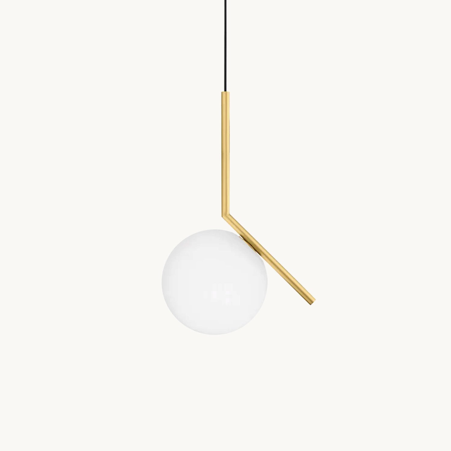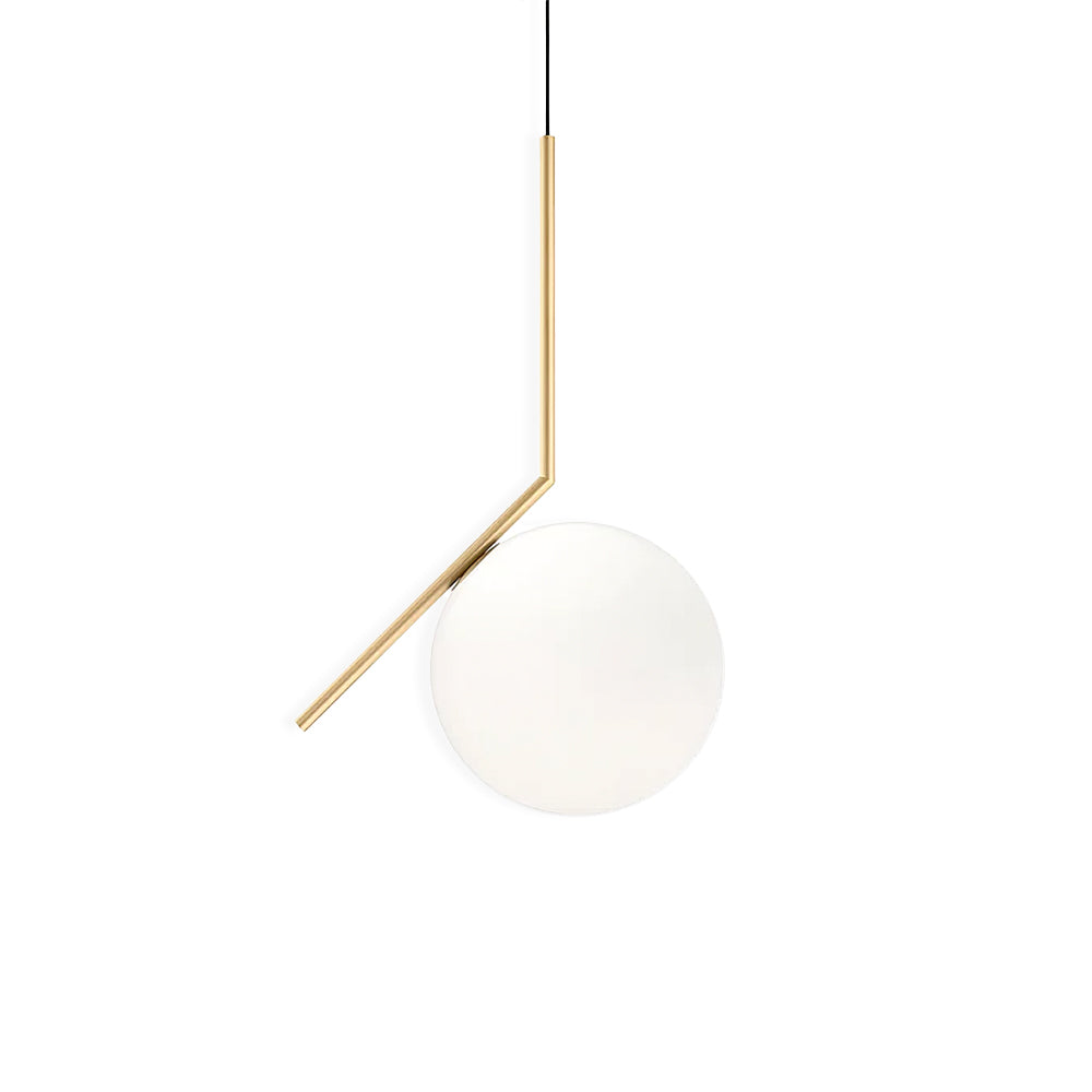 Like the other pieces in the IC Light Series, the IC Lights Pendant light balances designer Michael Anastassiades’ love of industrial simplicity with intricate symbolism. Providing diffused light through an opal blown glass diffuser, this pendant light is framed in brass-finished.