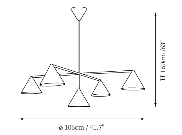 - 5-Lights Size: Dia 106cm x H 160cm / ∅ 41.7″ x H 63″