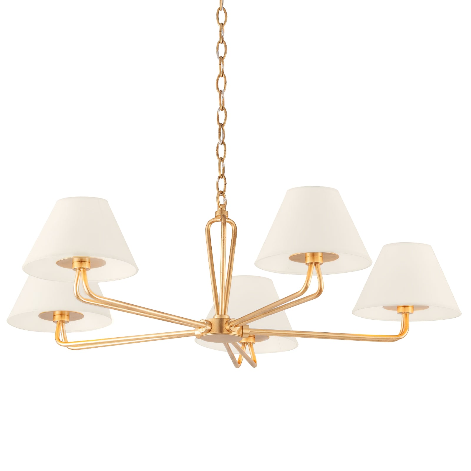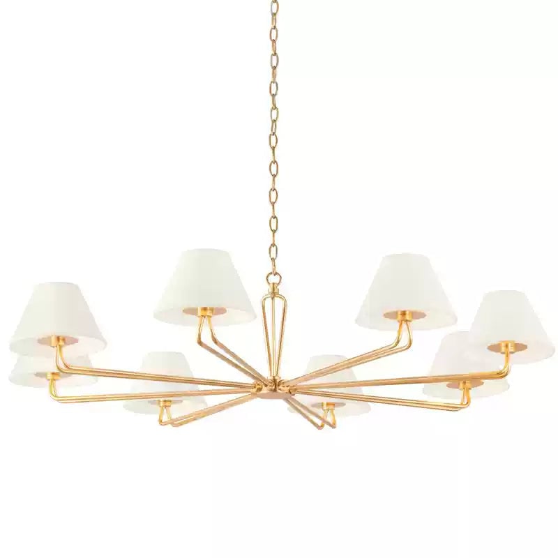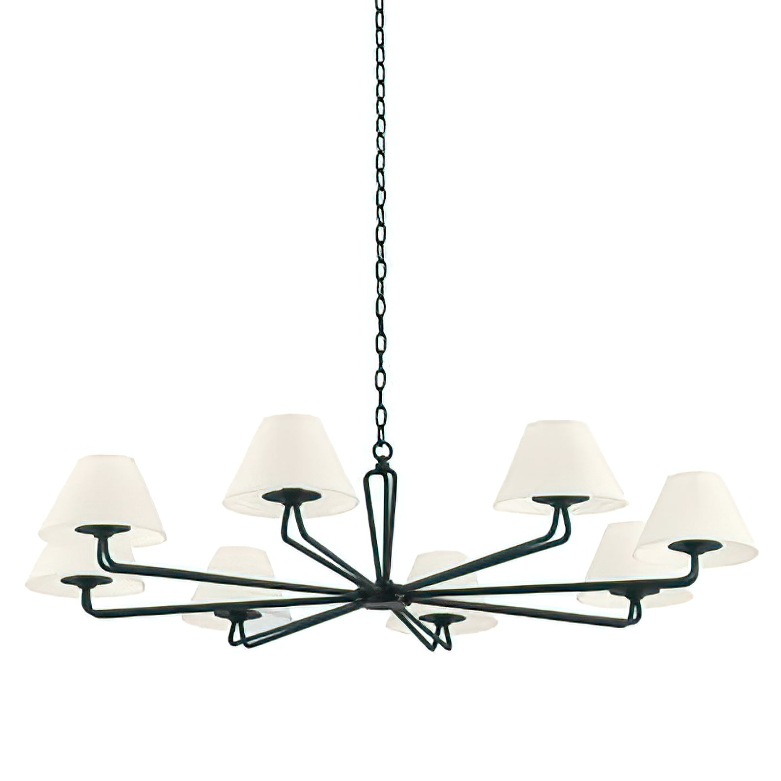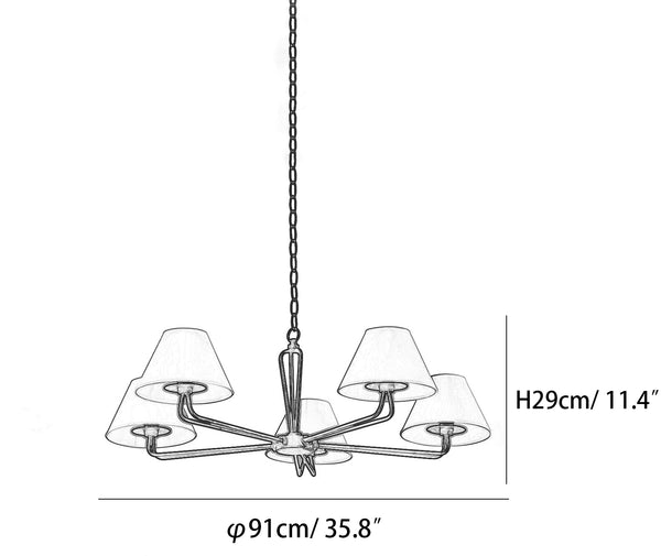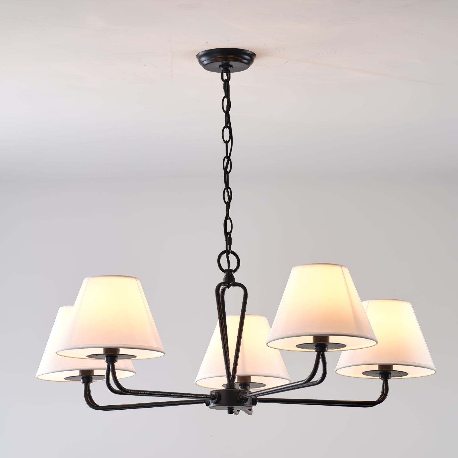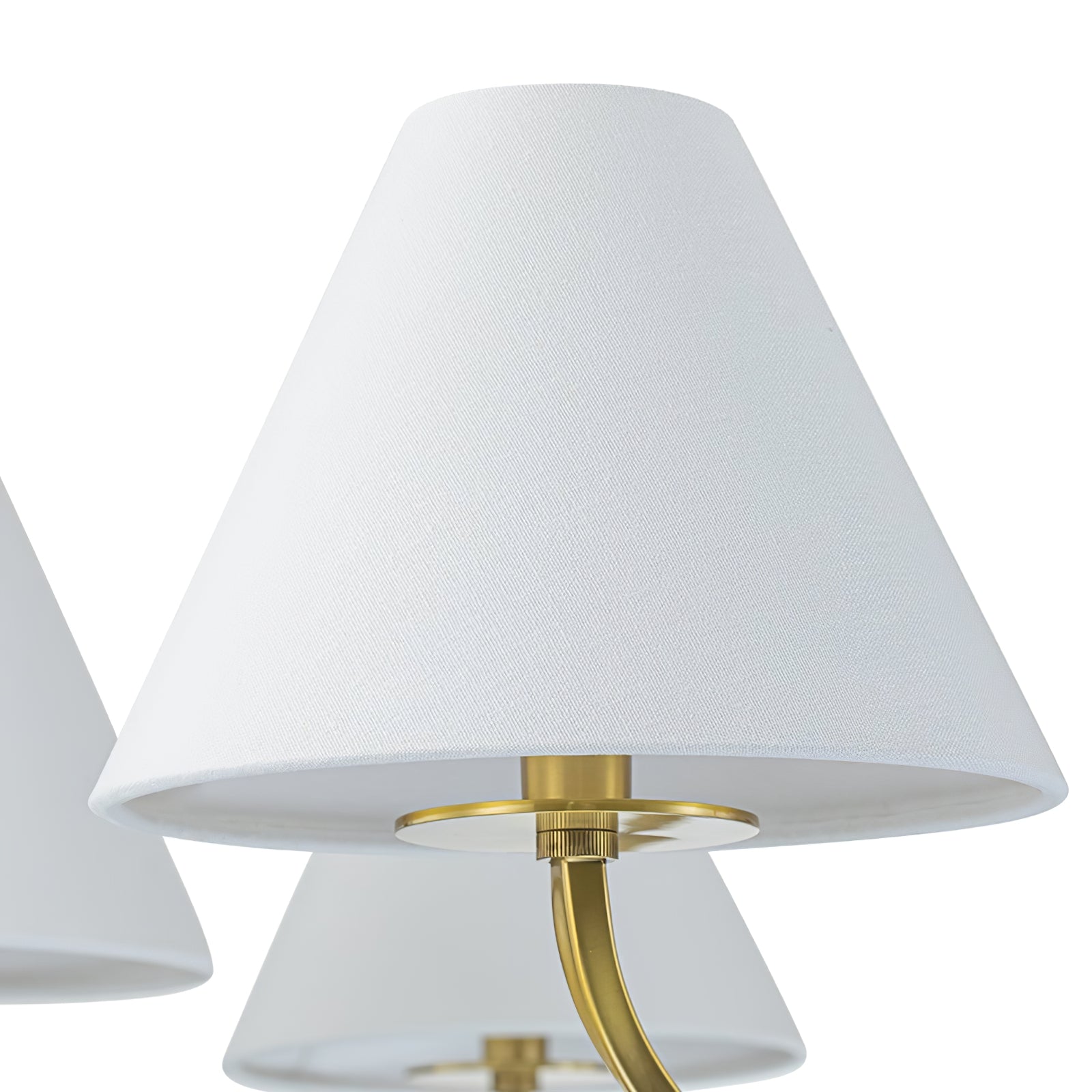Create a timeless ambiance in your space with this elegant chandelier. Its refined double-arm design, paired with classic cream fabric shades, brings a transitional charm that effortlessly blends with both traditional and modern interiors. The chandelier's low-profile design makes it versatile enough to enhance the atmosphere of various settings, from intimate dining rooms to expansive open-plan lofts. Its stately presence and subtle detailing offer a graceful focal point.