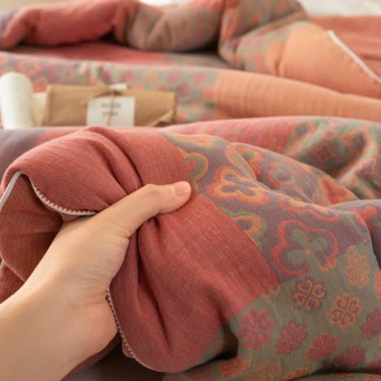 Made from premium cotton gauze, this quilt is soft and cozy, offering warmth and comfort for cool night. With meticulous craftsmanship, it’s a durable and luxurious addition to your bedding collection. This quilt makes a beautiful gift for holidays, weddings, or housewarmings, blending functionality with style.