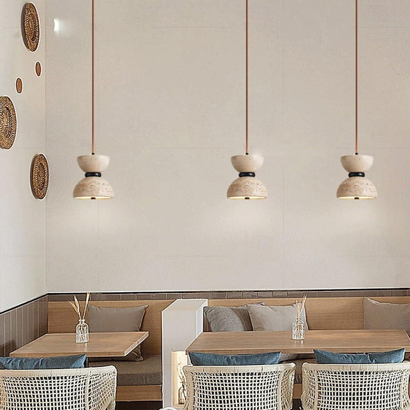 Japanese Style Double Bowl Travertine Pendant Light