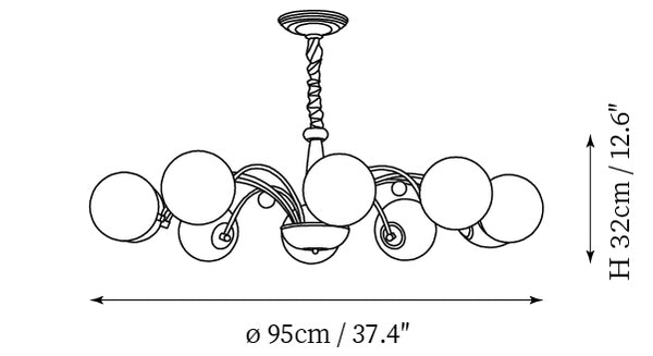 - 10-Lights Size: Dia 95cm x H 32cm / ∅ 37.4″ x H 12.6″