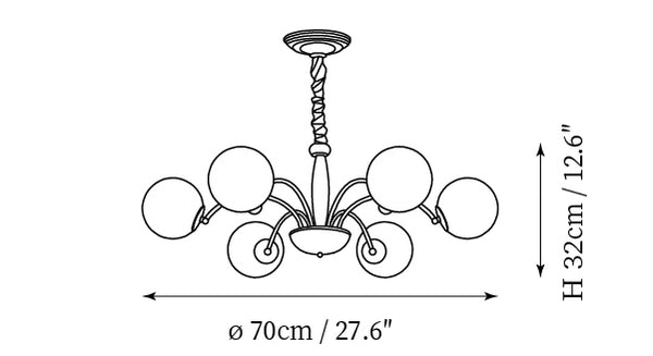 - 6-Lights Size: Dia 70cm x H 32cm / ∅ 27.6″ x H 12.6″