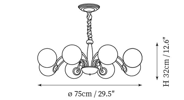 - 8-Lights Size: Dia 75cm x H 32cm / ∅ 29.5″ x H 12.6″