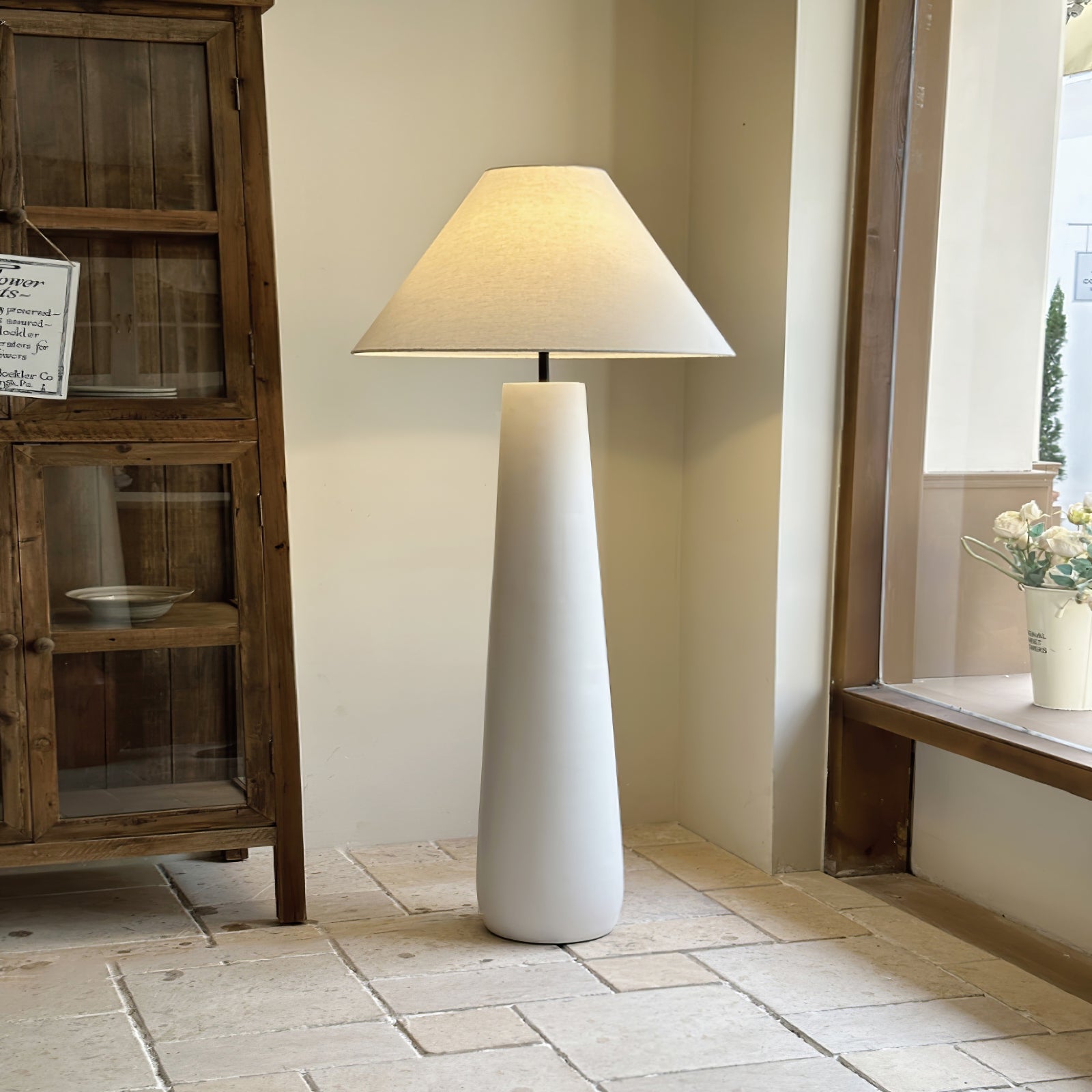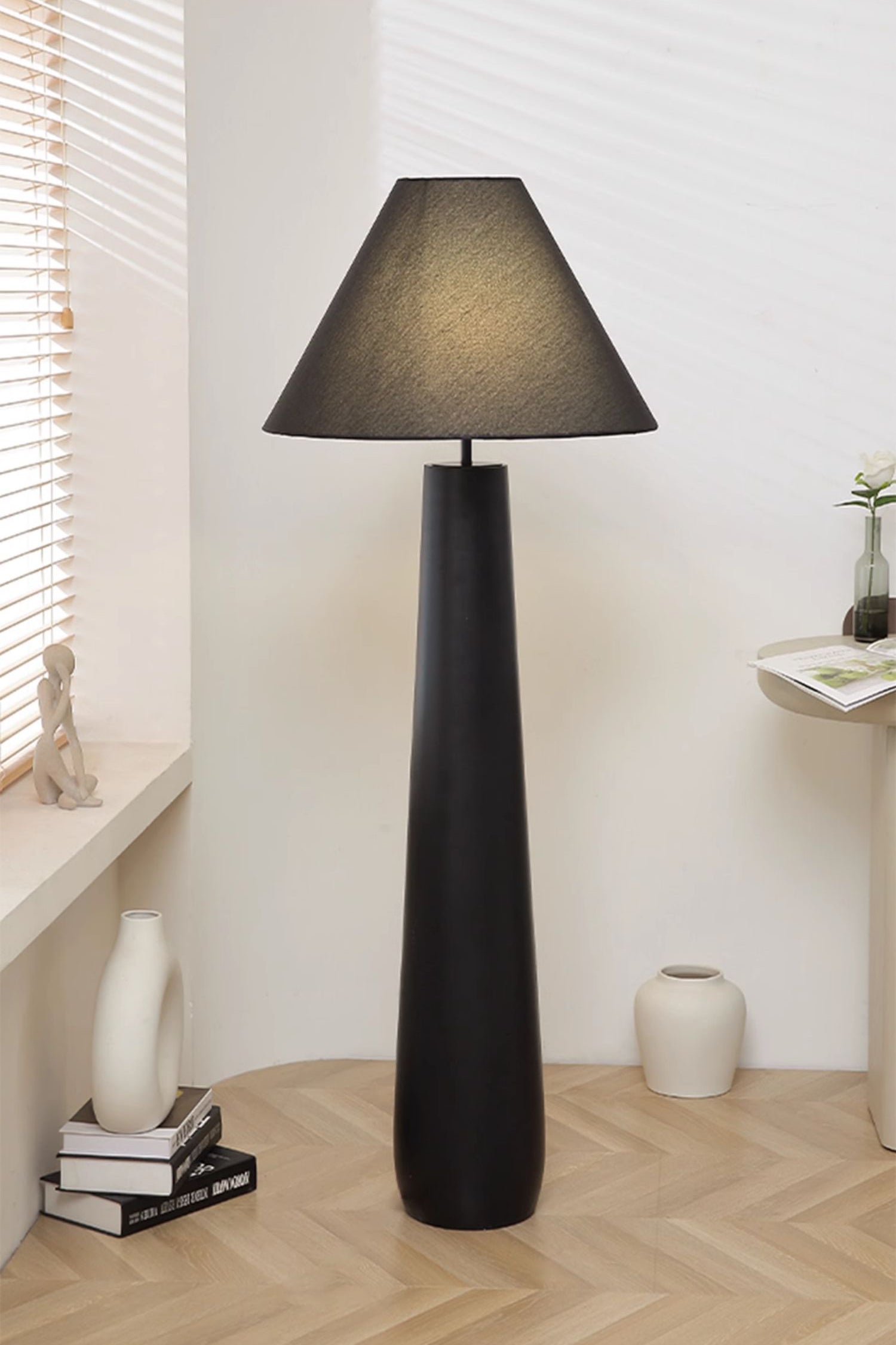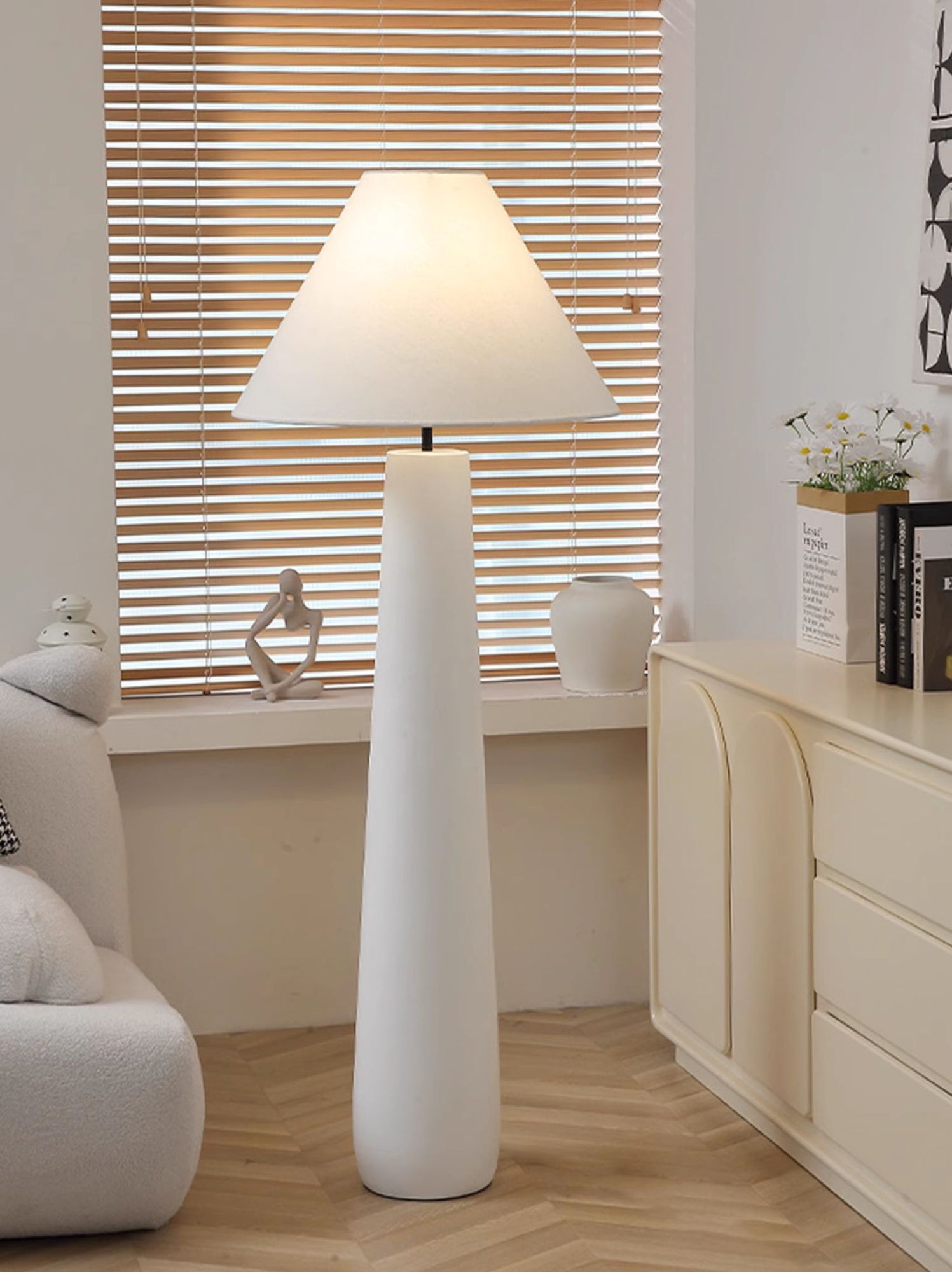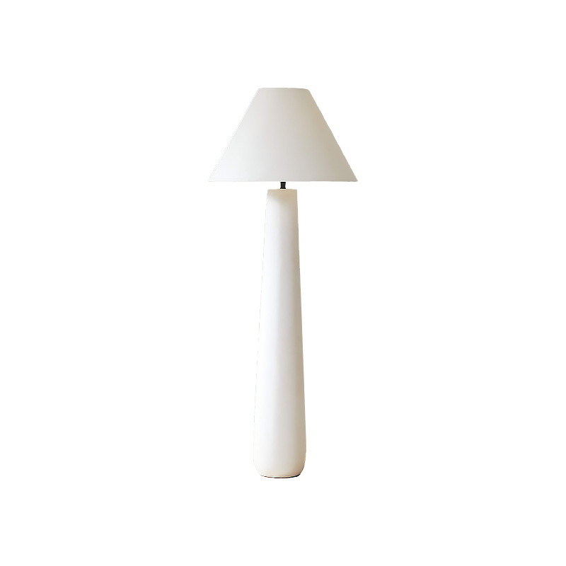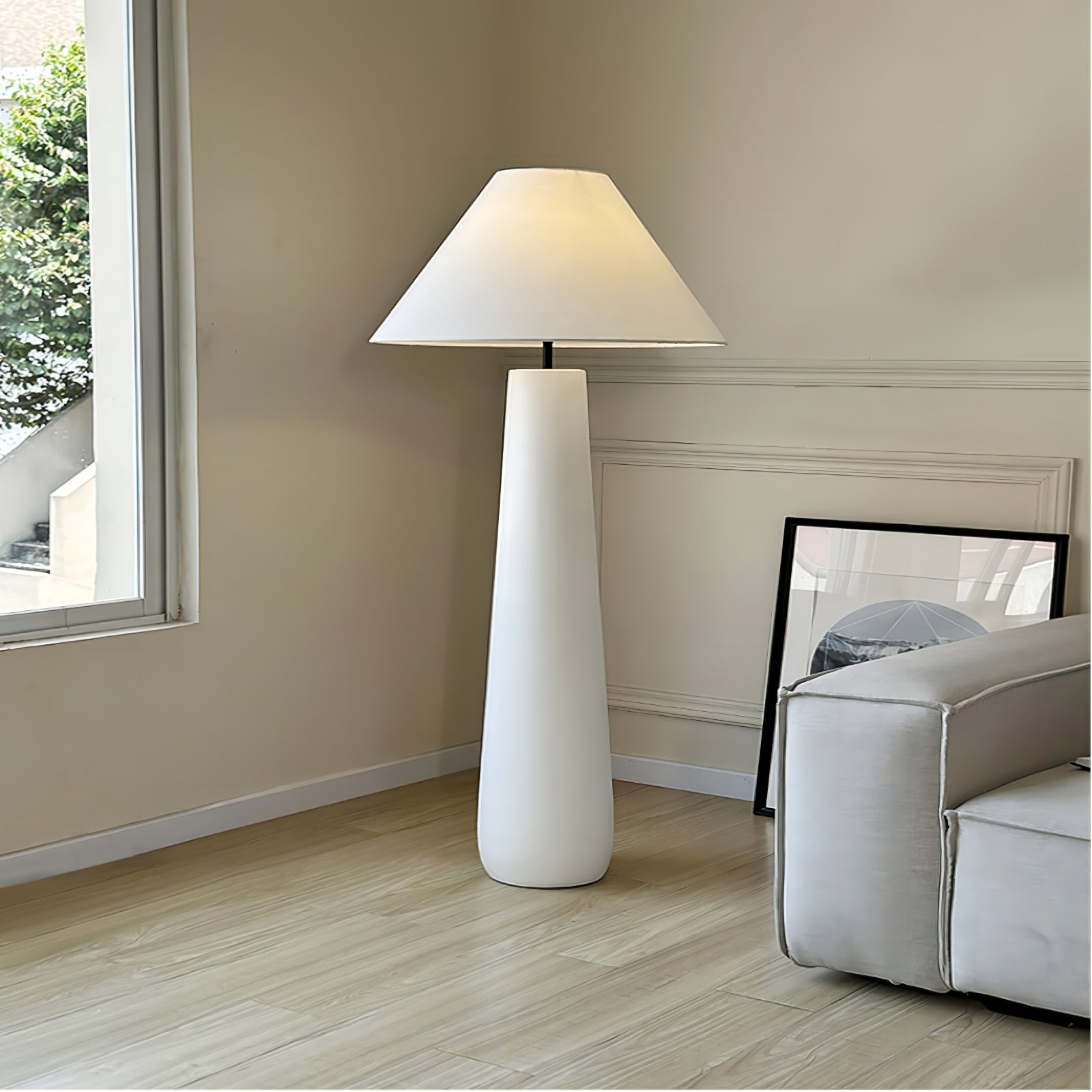 Illuminate your space with the Kara Mann Polar Cement Floor Lamp. Featuring a solid concrete base that tapers to a sophisticated shade design, this lamp adds a touch of elegance and warmth to any room. Its soft light is designed to push boundaries and create a cozy ambiance.