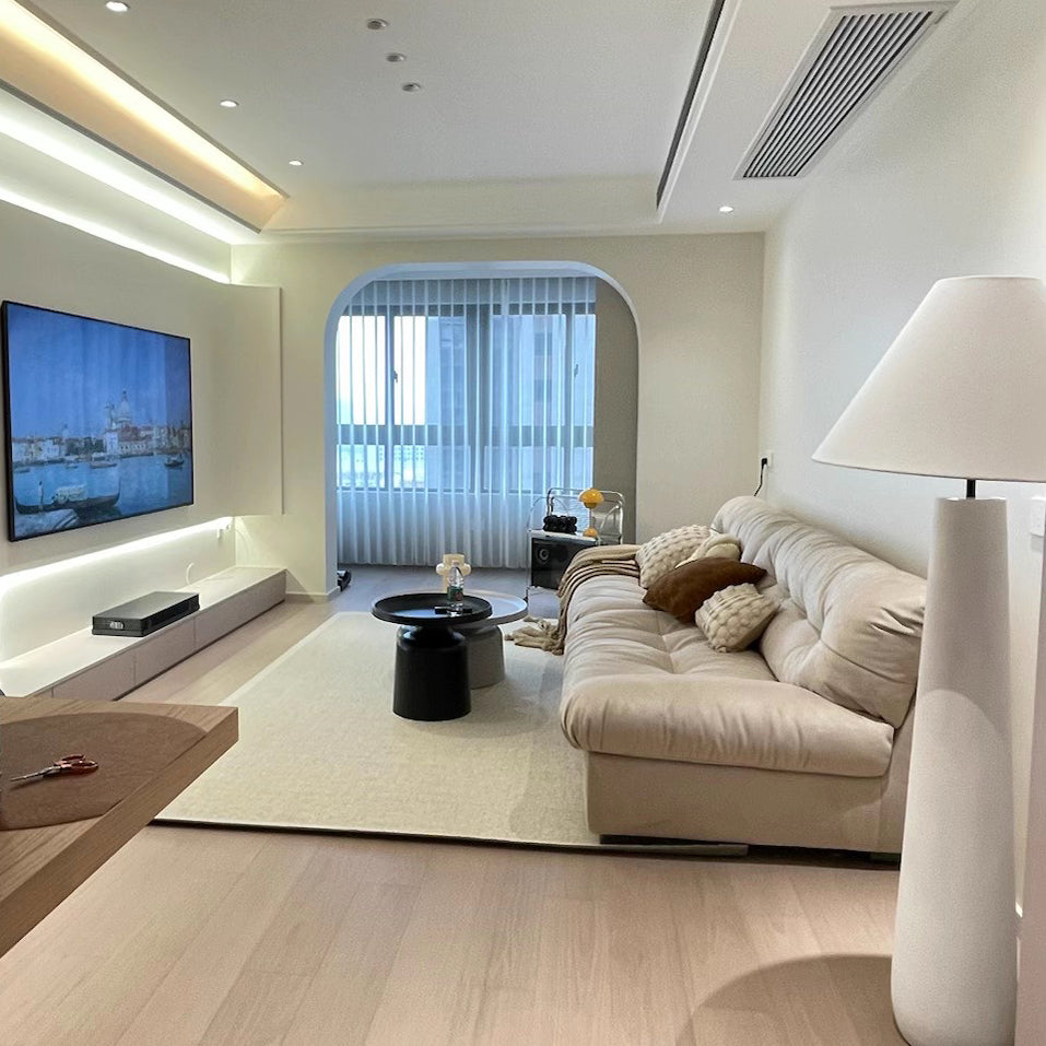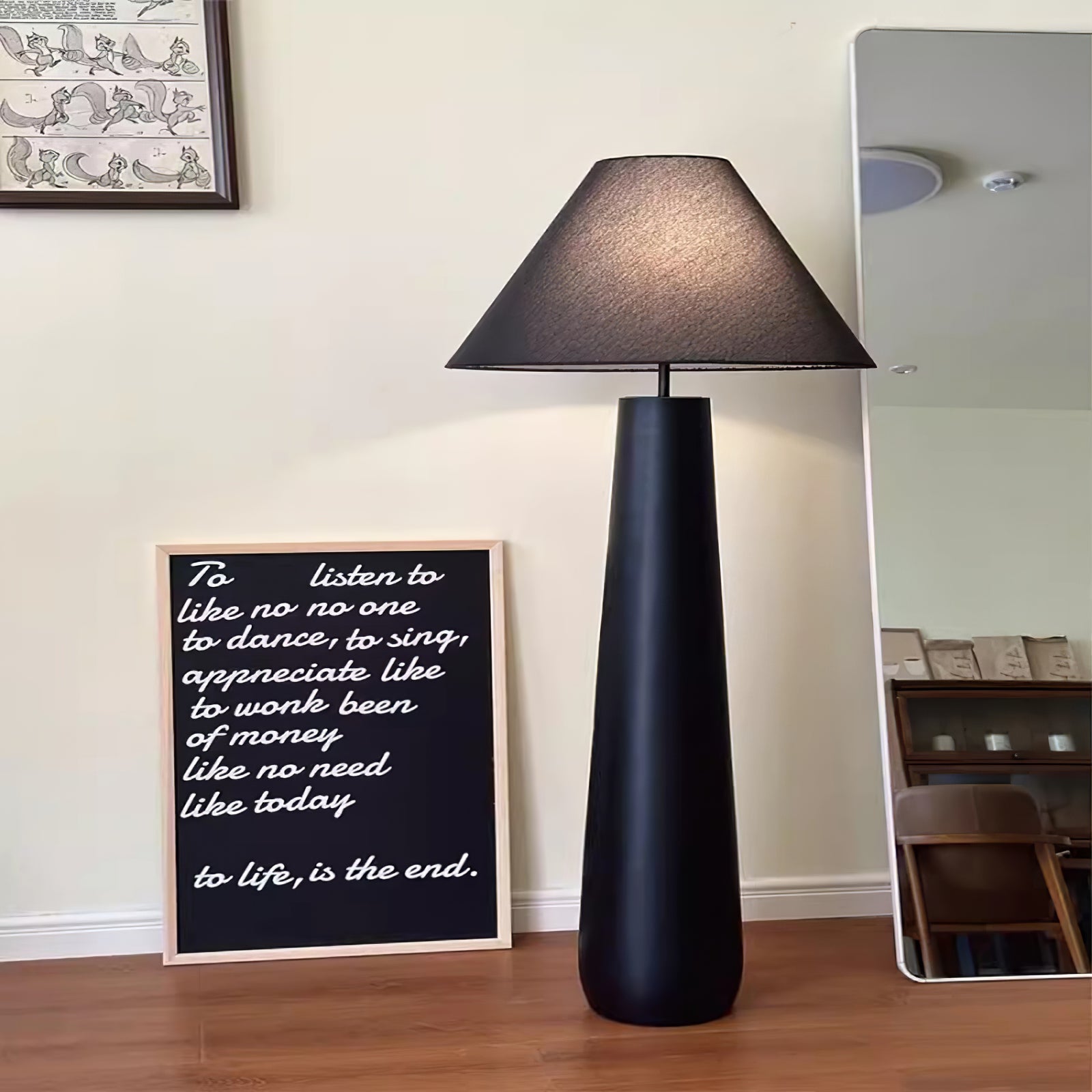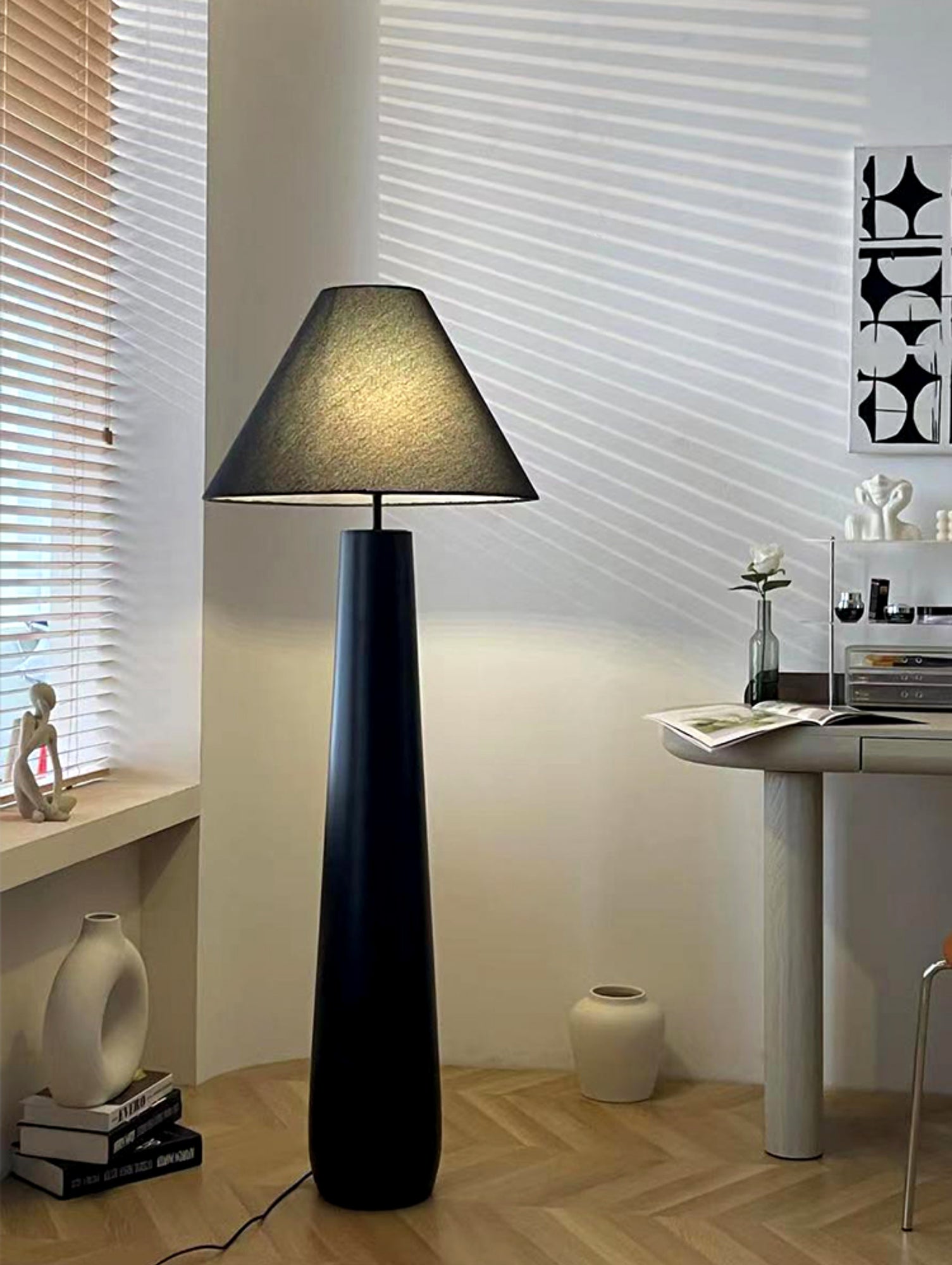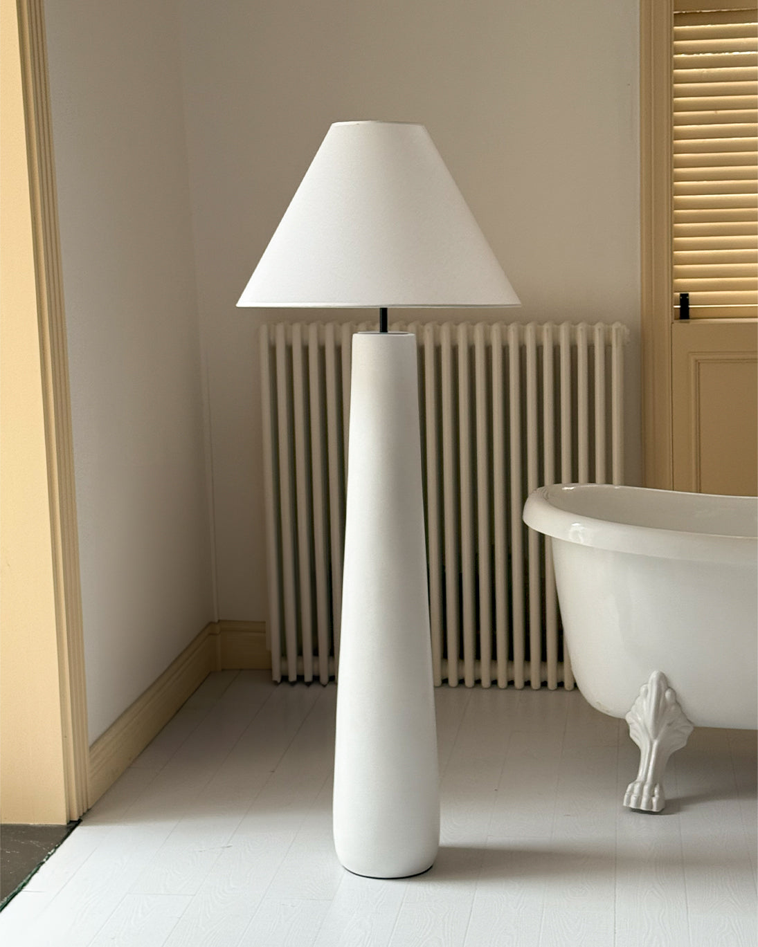 Illuminate your space with the Kara Mann Polar Cement Floor Lamp. Featuring a solid concrete base that tapers to a sophisticated shade design, this lamp adds a touch of elegance and warmth to any room. Its soft light is designed to push boundaries and create a cozy ambiance.