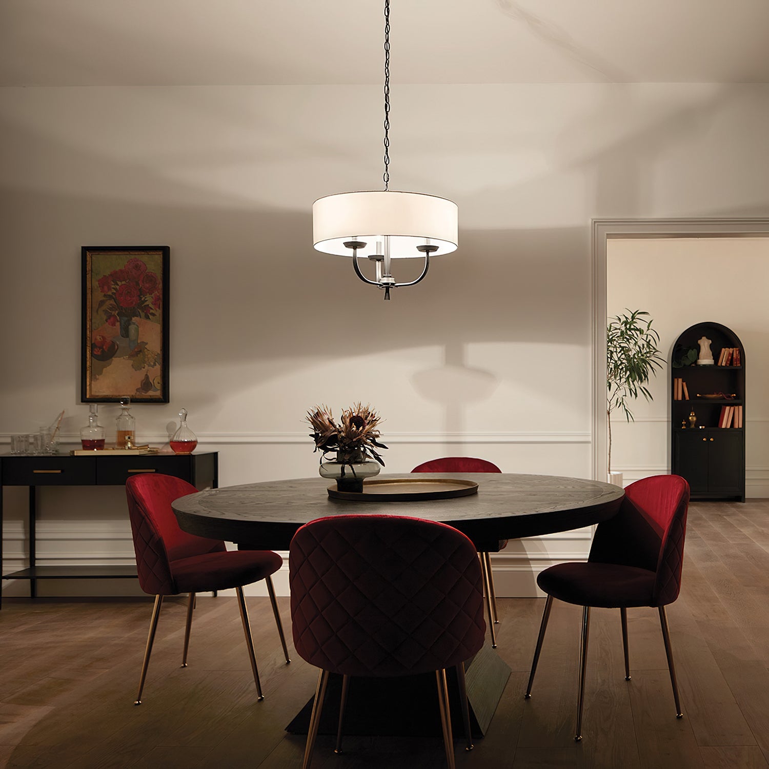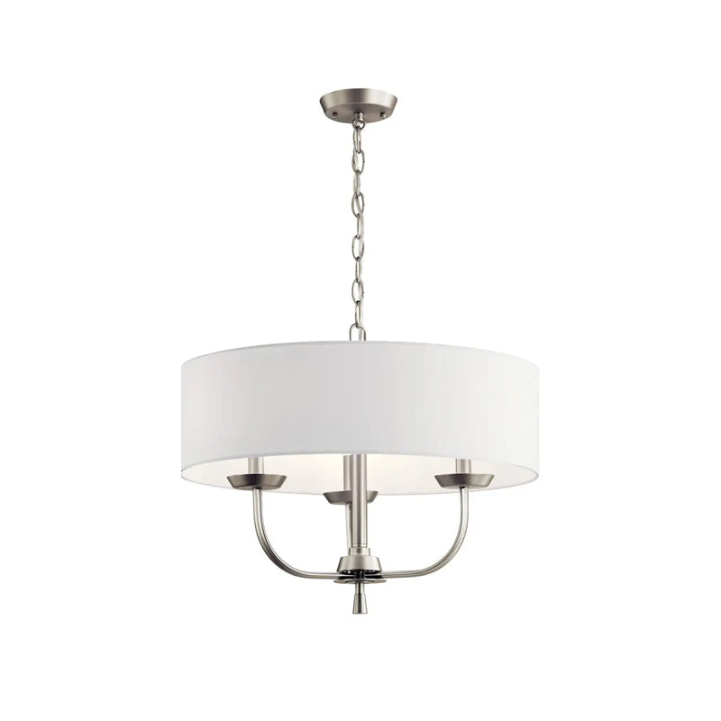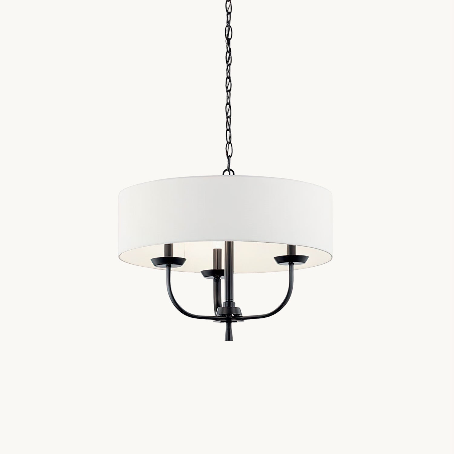 The Kennewick Pendant Light from Mooijane offers a refined take on the classic candelabra. Featuring three lights encased in a single, gracefully curved white fabric shade, it blends traditional charm with modern simplicity. A timeless finish adds elegance, making it a perfect choice for transitional and updated traditional interiors.