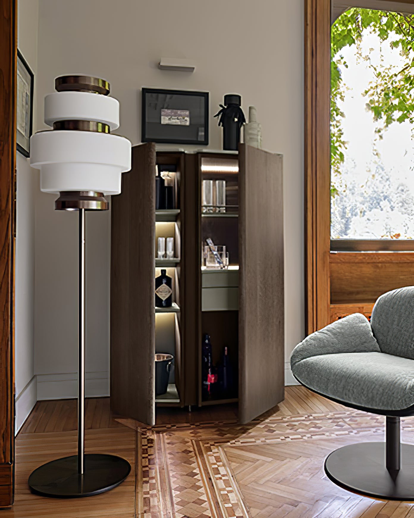 Képi It is without pretension, yet through a sober and classical interpretation, inspired by the shape of a cylinder; it generates a dynamic figure in its own space. An indisputable star of understated contemporary design, rendering it a gem of the most exclusive interiors.