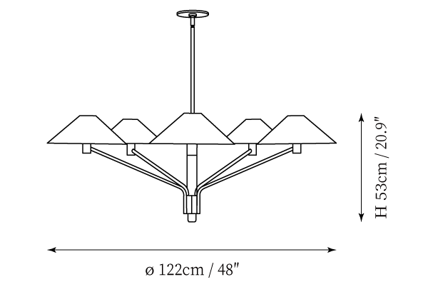 - 5-Lights Size: Dia 122cm x H 53cm / ∅ 48″ x H 20.9″