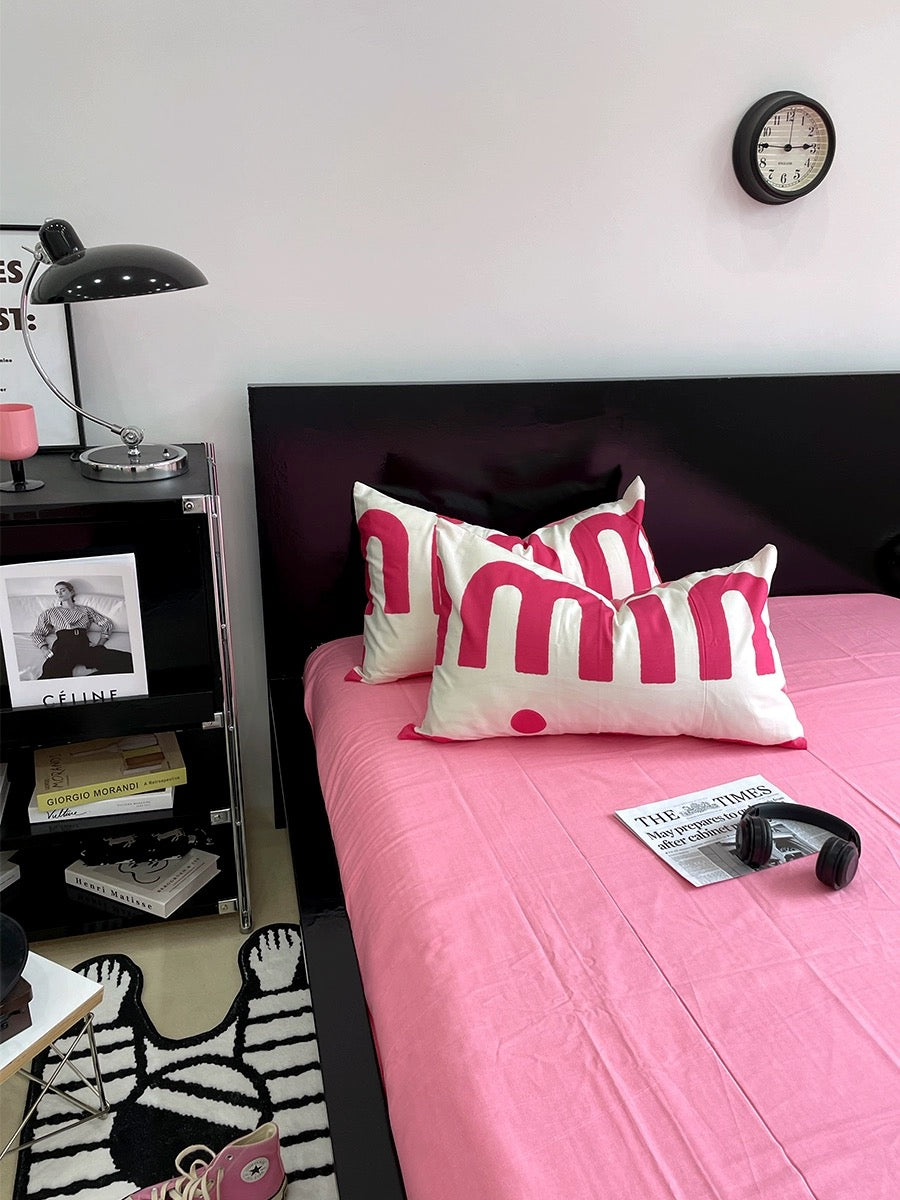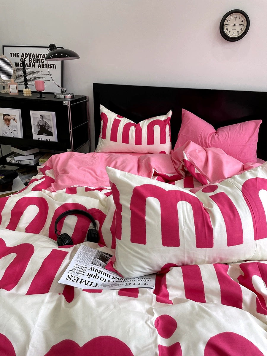 Korean Pink Letter Bedding Set