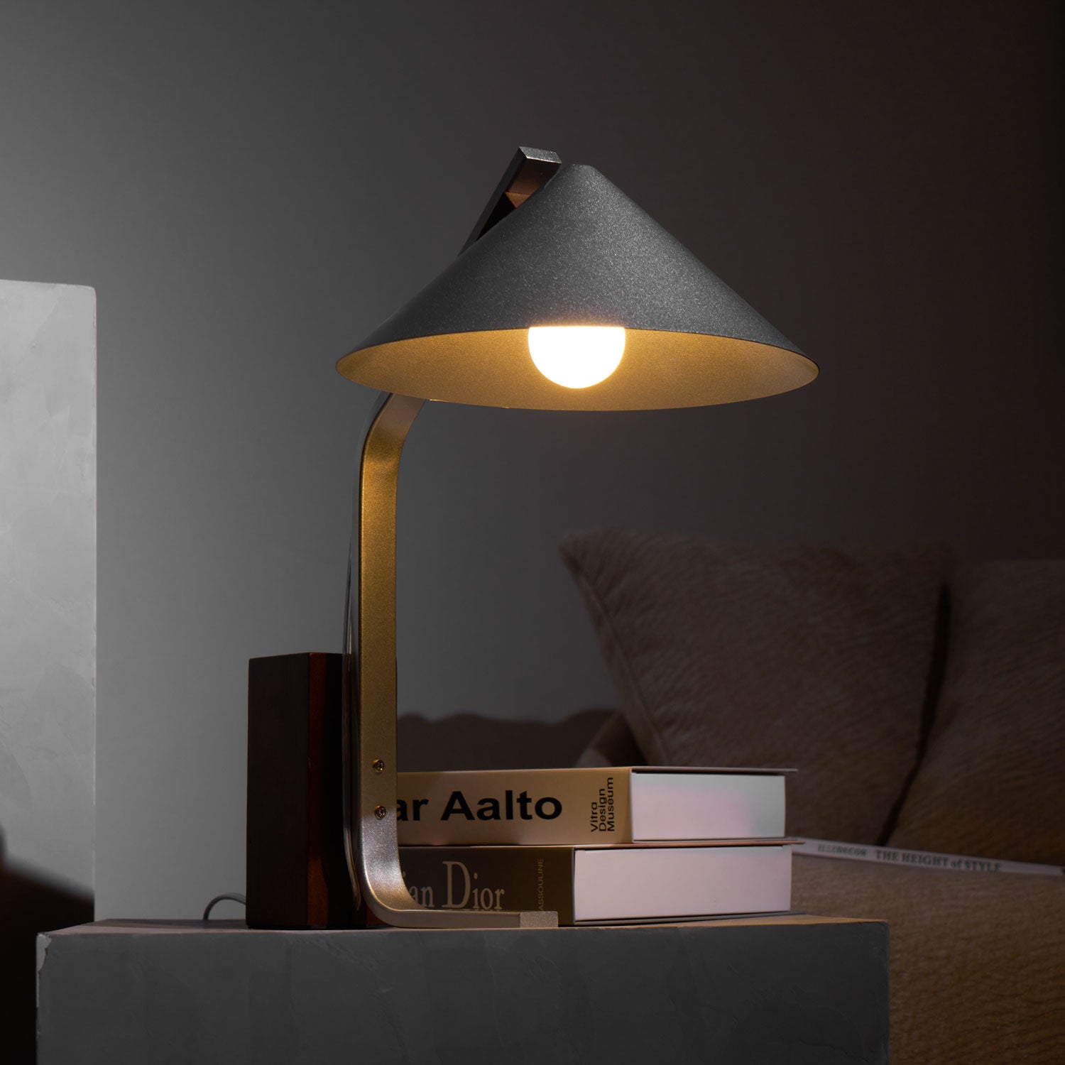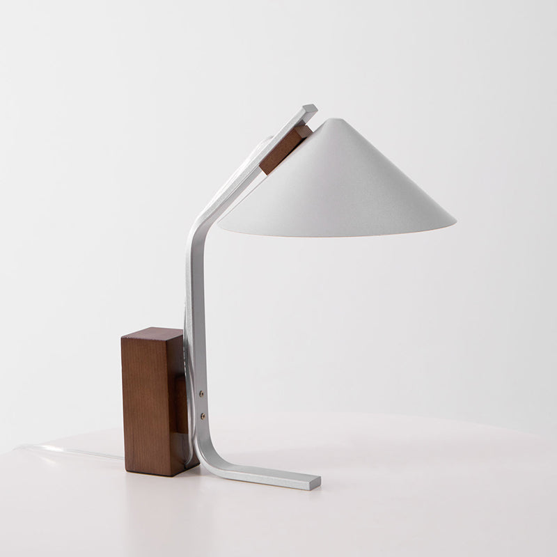 The Kristina Table Lamp from Mooijane combines sleek aluminum and warm walnut wood in a minimalist design. Its geometric form and contrasting materials make it a striking addition to modern or Scandinavian interiors. Perfect for desks, nightstands, or creative spaces, it offers both functional lighting and artistic elegance.