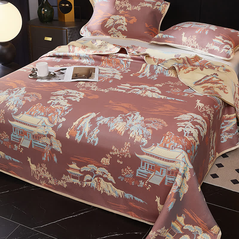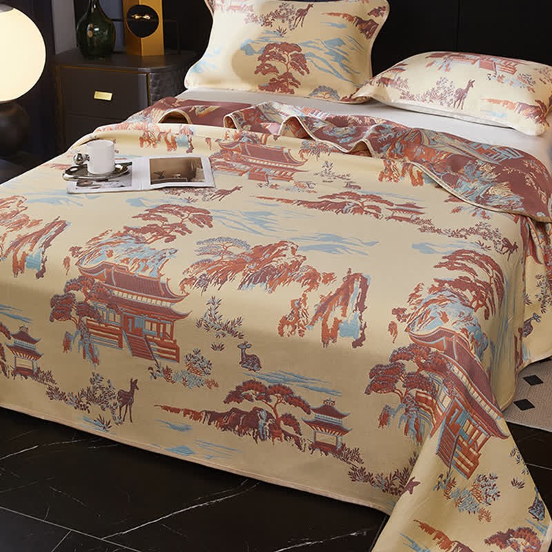 Landscape Three-layer Gauze Cooling Reversible Coverlet