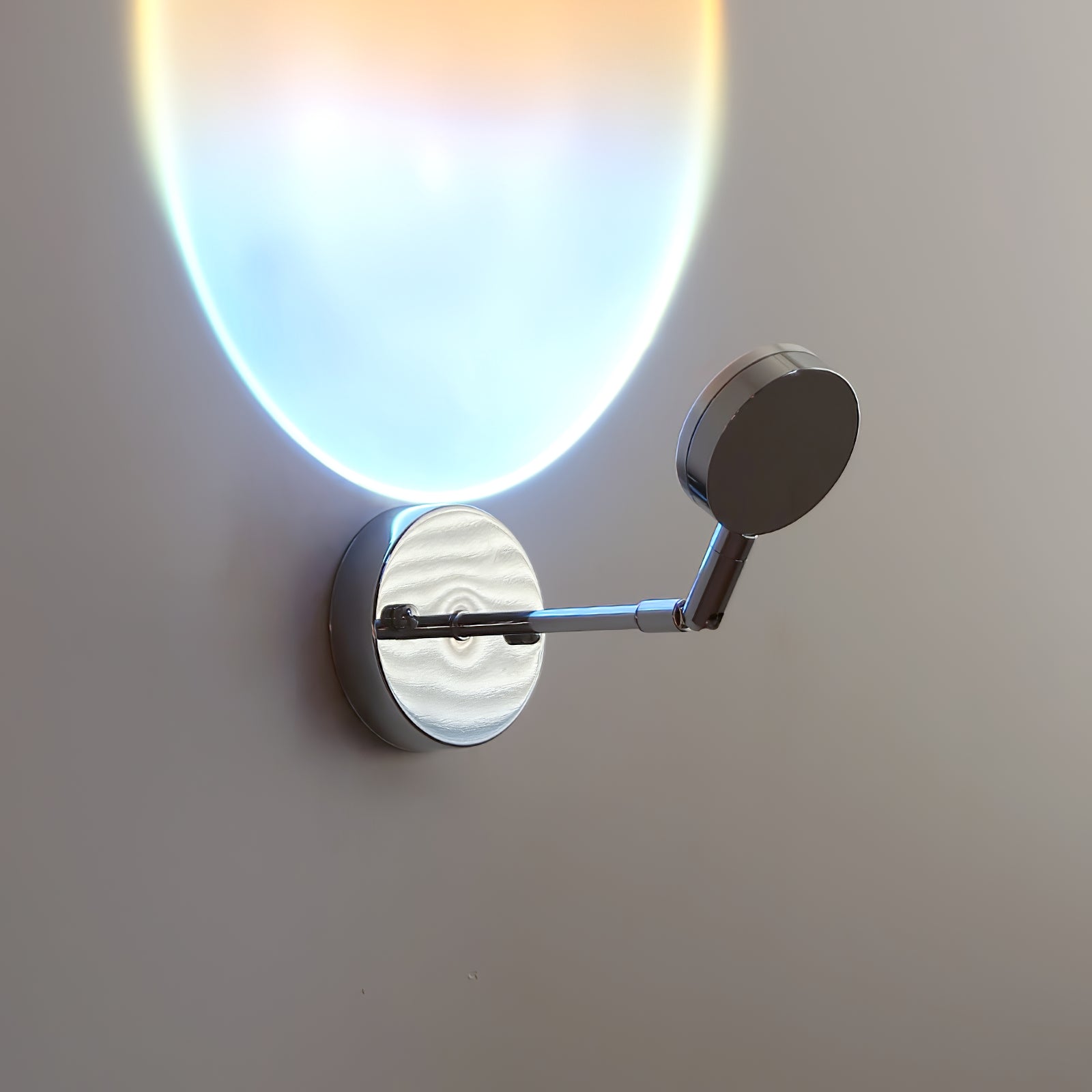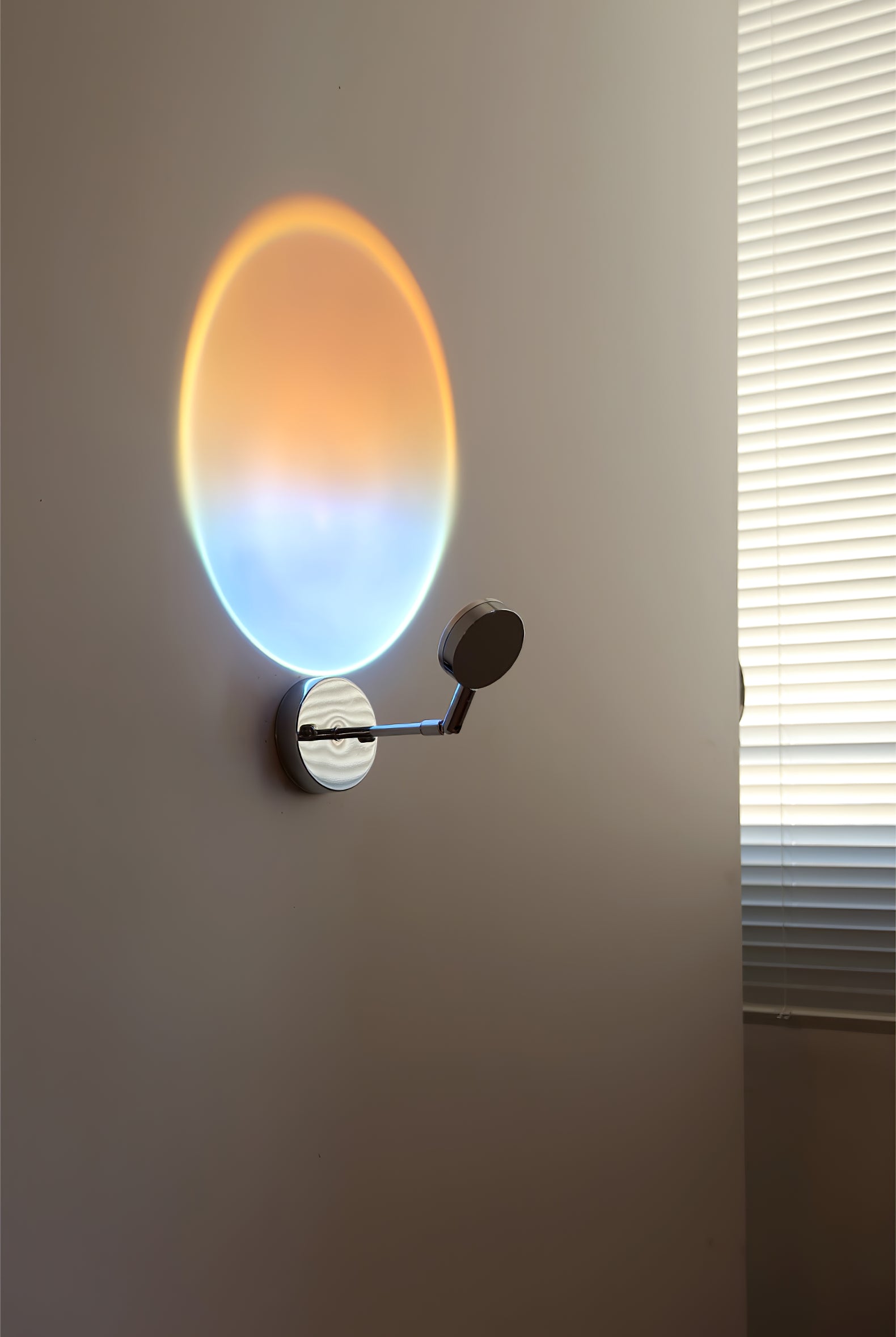 It takes us back to a specific moment in which, on the border between earth and space, day and night meet for a few moments, giving us a breathtaking landscape. Horizon recreates that luminous phenomenon that occurs in nature, where light bent by gravity and scattered in billions of particles in the atmosphere becomes visible in the form of color and shades opening a space-time window overlooking our planet, and which is directly beamed into your home.