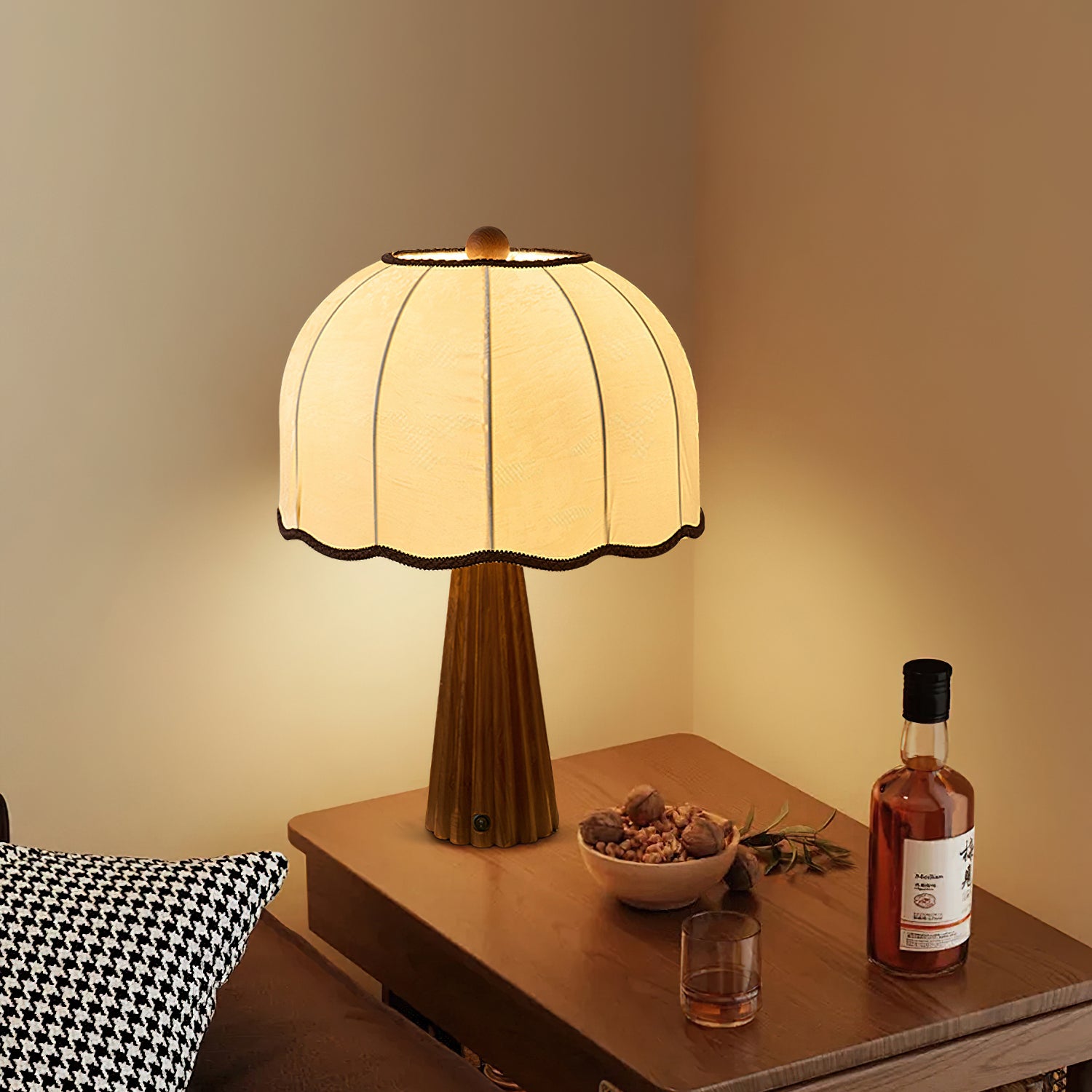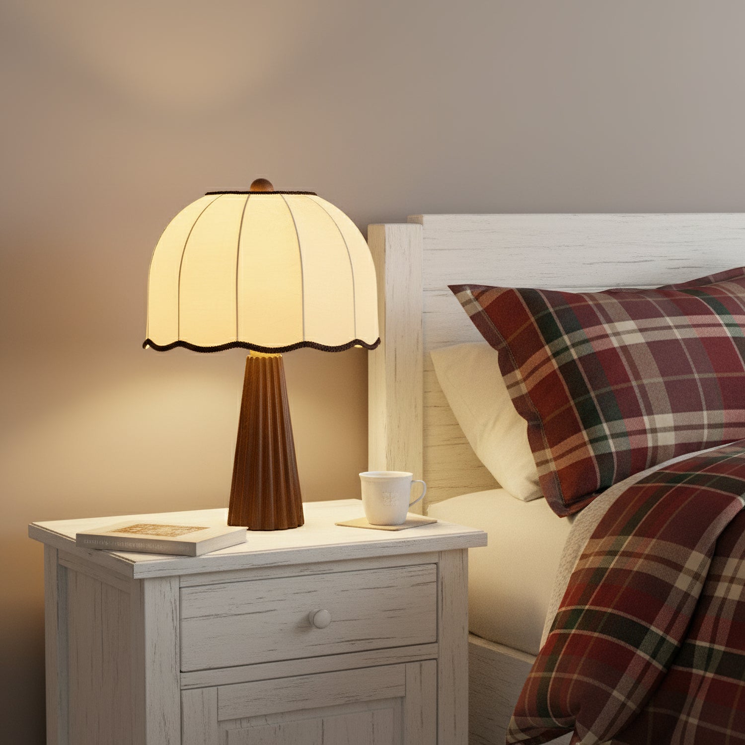 The Layne Table Lamp from Mooijane blends the warmth of wood with the elegance of fabric, creating a timeless expression of quiet beauty. Its tapered wooden base offers natural stability, while the dome-shaped fabric shade with subtle trim adds a hint of vintage charm. The textured fabric diffuses light softly, casting a warm and inviting glow.