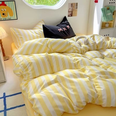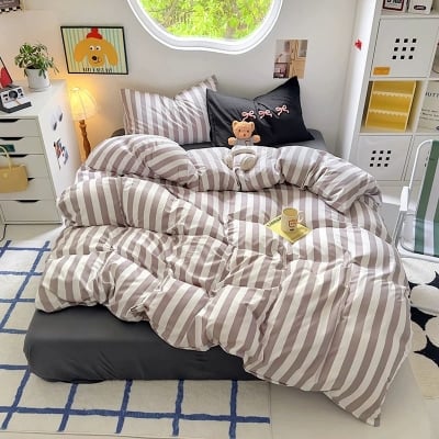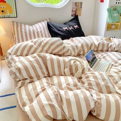 Bring a warm bakery dream into your bedroom with the Let’s Bakery Bedding Set, a soft girl favorite crafted from 100% washed cotton. This kawaii bedding features an adorable puppy print and charming bakery-themed pillows, all in cozy beige and brown striped tones. The skin-friendly fabric provides a breathable, cloud-soft feel — perfect for relaxing nights or lazy mornings. Inspired by Korean dorm aesthetics, this bedding set adds a playful yet elegant touch to any girl’s room, whether you're in college or simply obsessed with cozy, cottagecore decor.