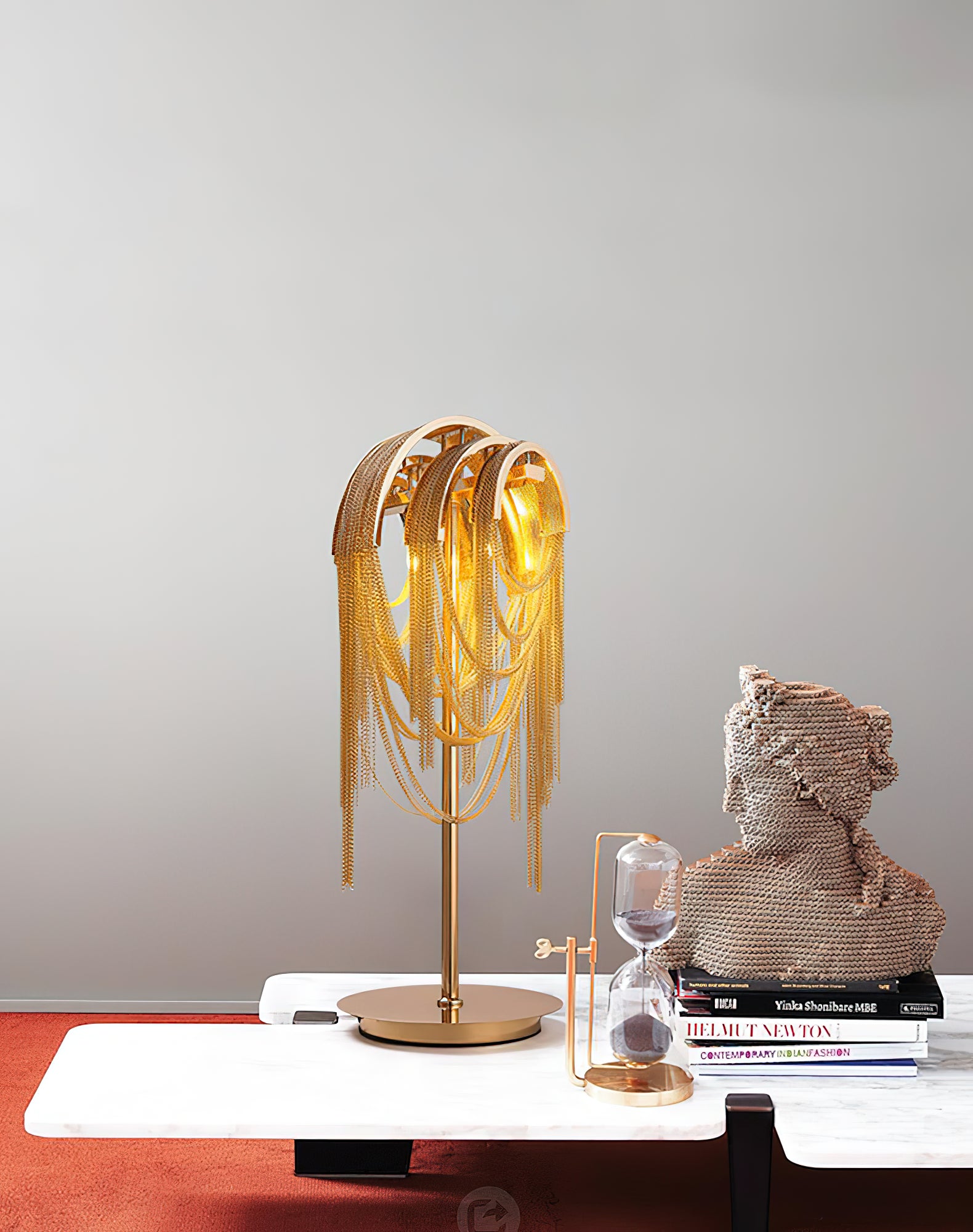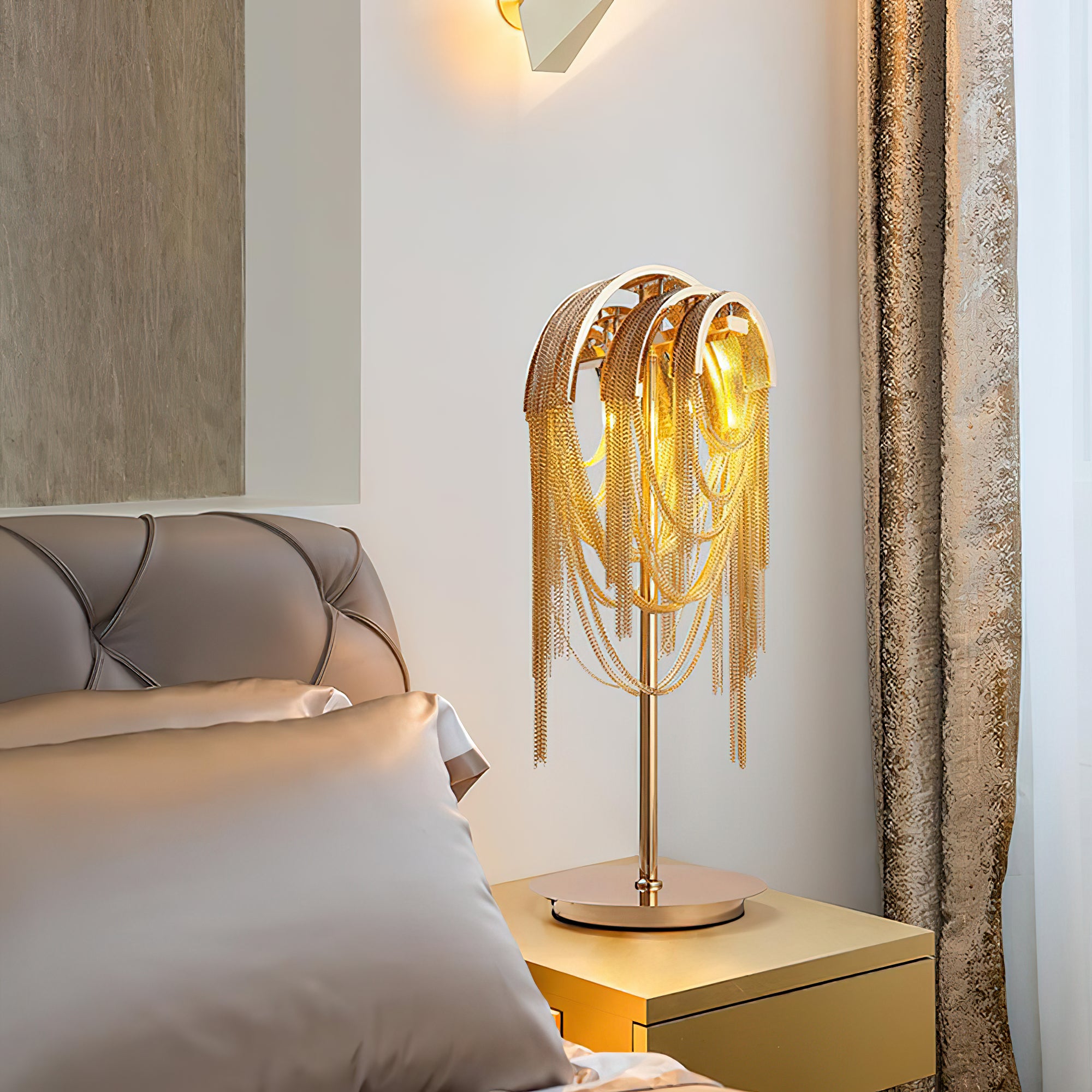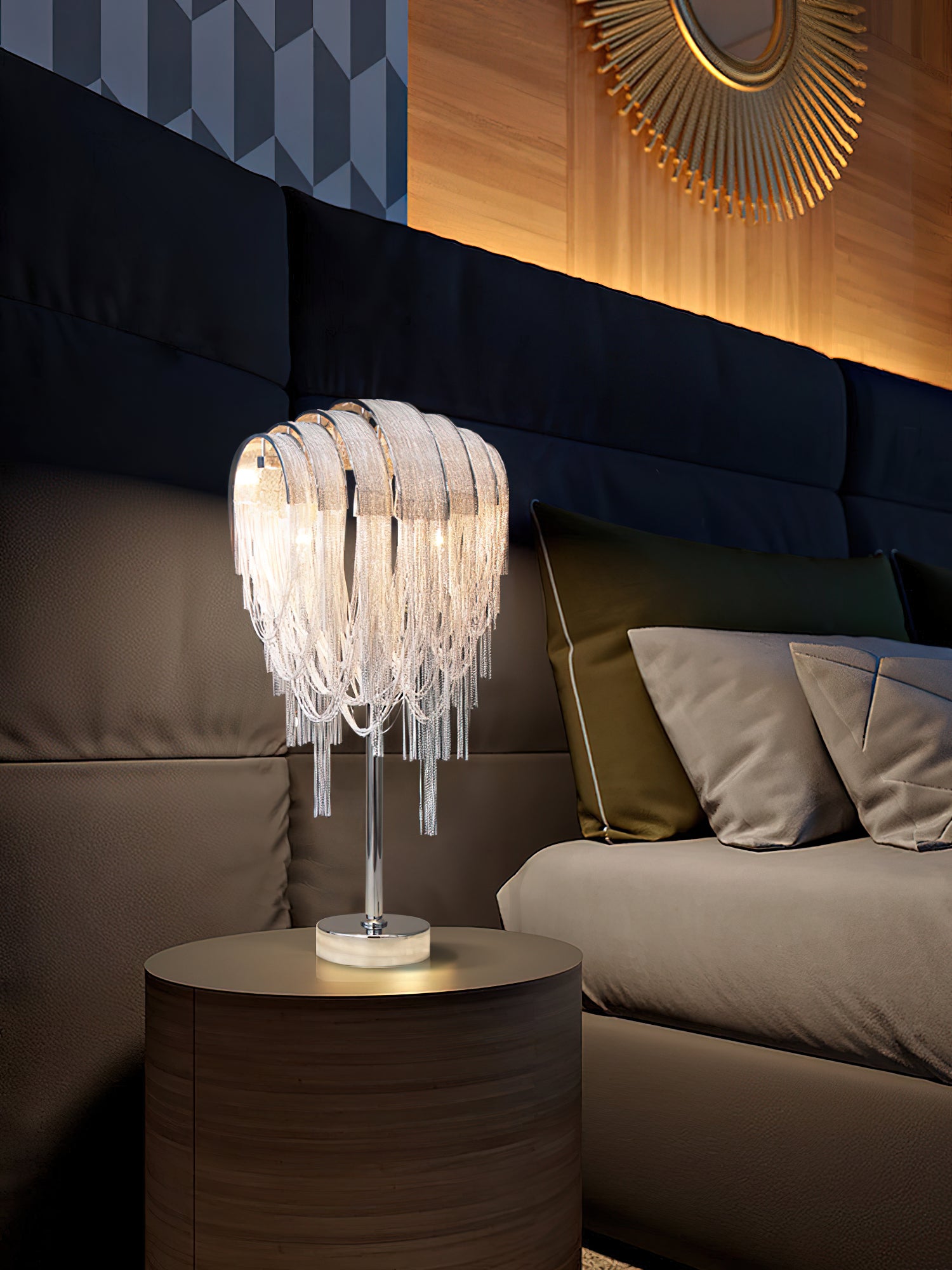 The Light Luxury Tassel Table Lamp adds exquisite, timeless elegance to any home. Housed in a delicate, tassel-trimmed frame, this lamp is adorned with intricate details that create an atmosphere of sophistication. Its soft, warm illumination provides a perfect ambiance for luxurious living.