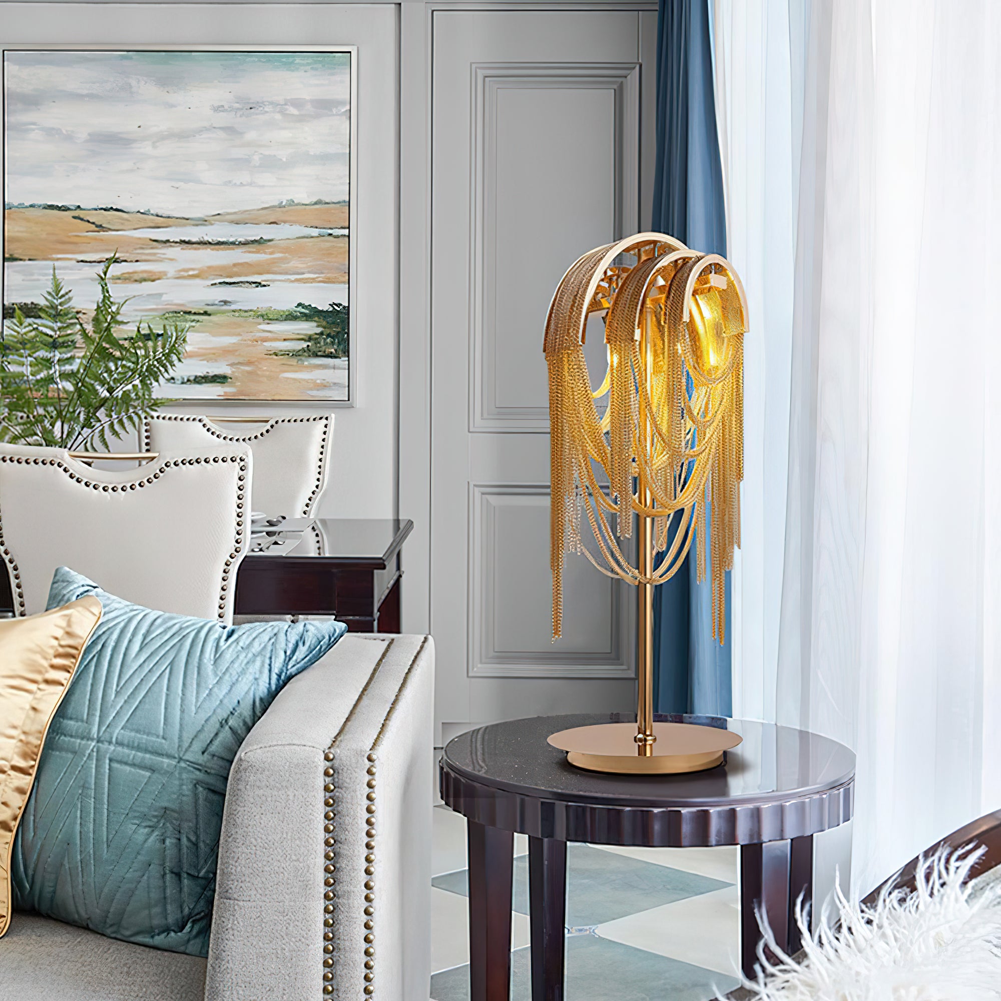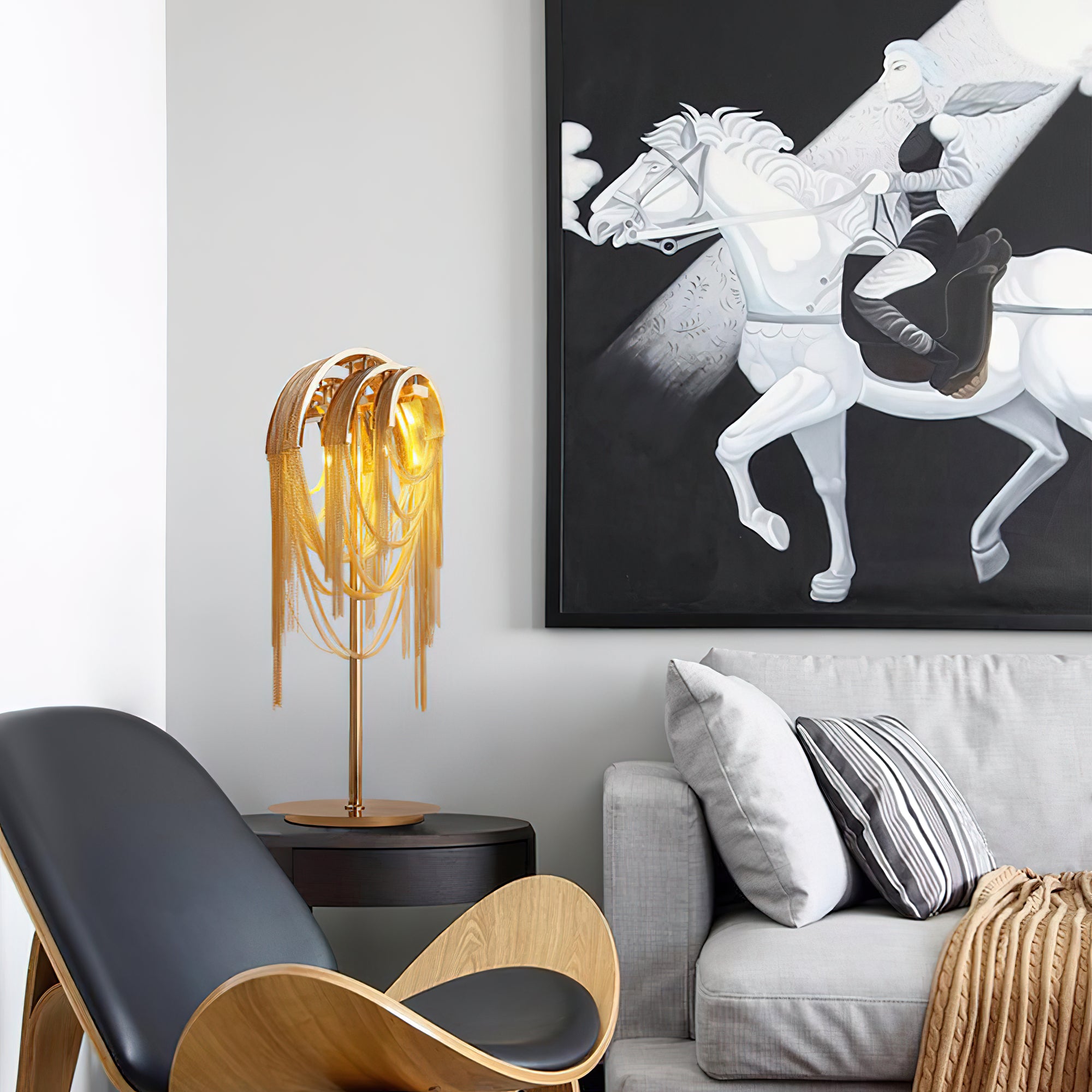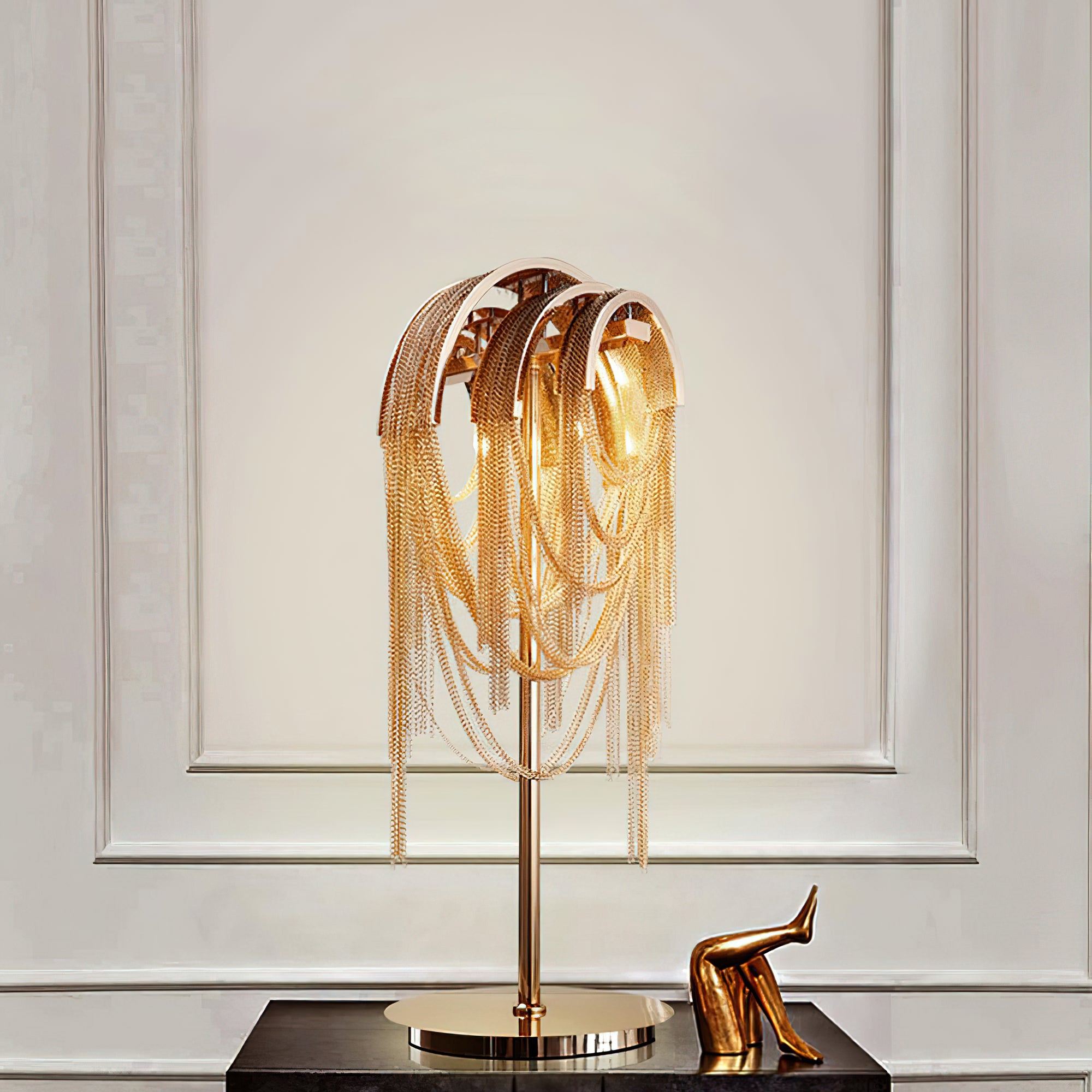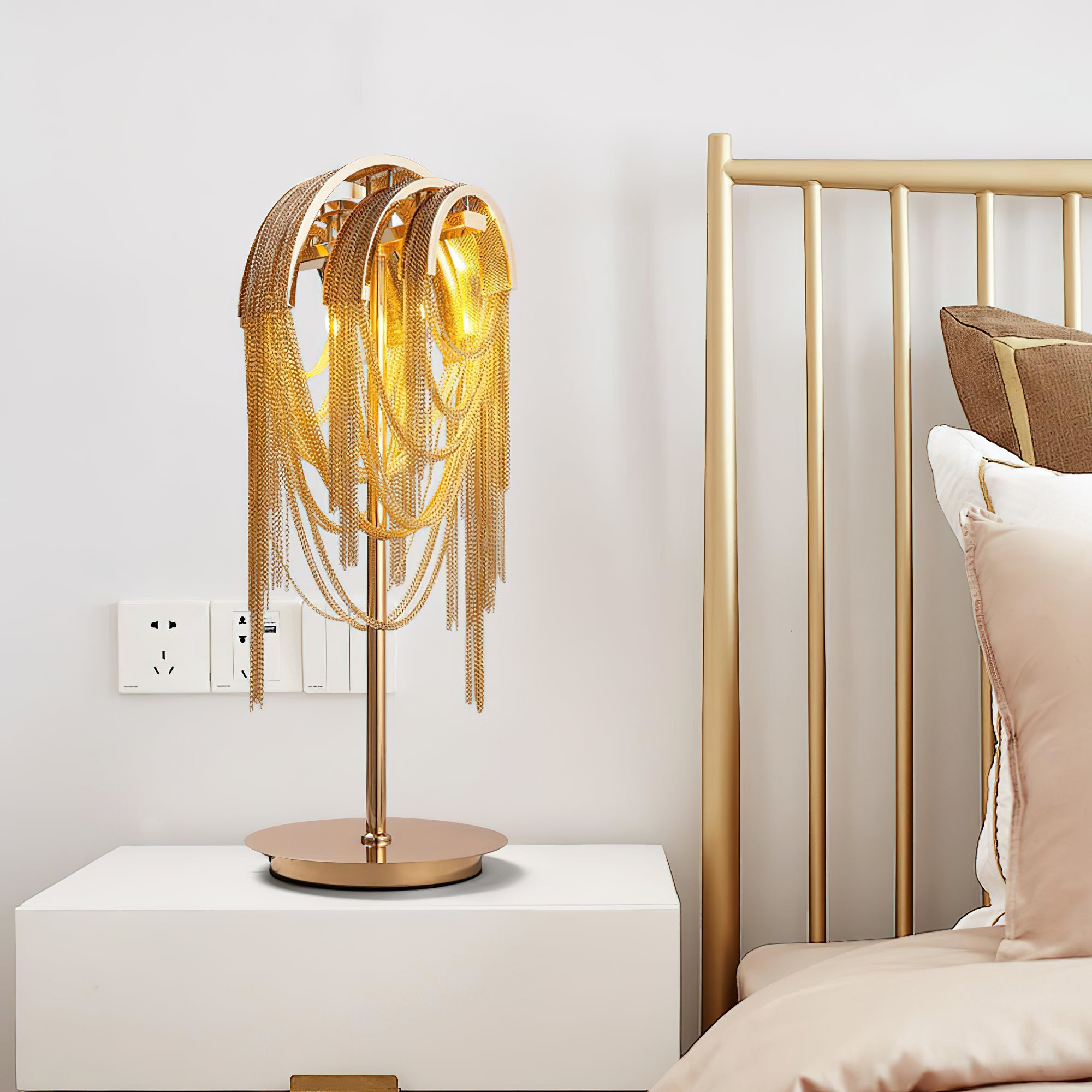 The Light Luxury Tassel Table Lamp adds exquisite, timeless elegance to any home. Housed in a delicate, tassel-trimmed frame, this lamp is adorned with intricate details that create an atmosphere of sophistication. Its soft, warm illumination provides a perfect ambiance for luxurious living.