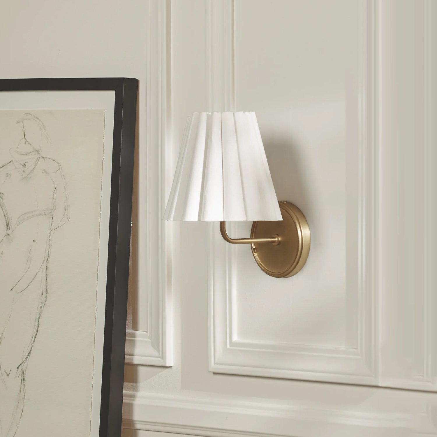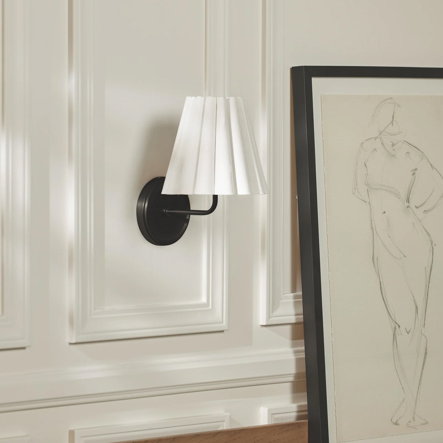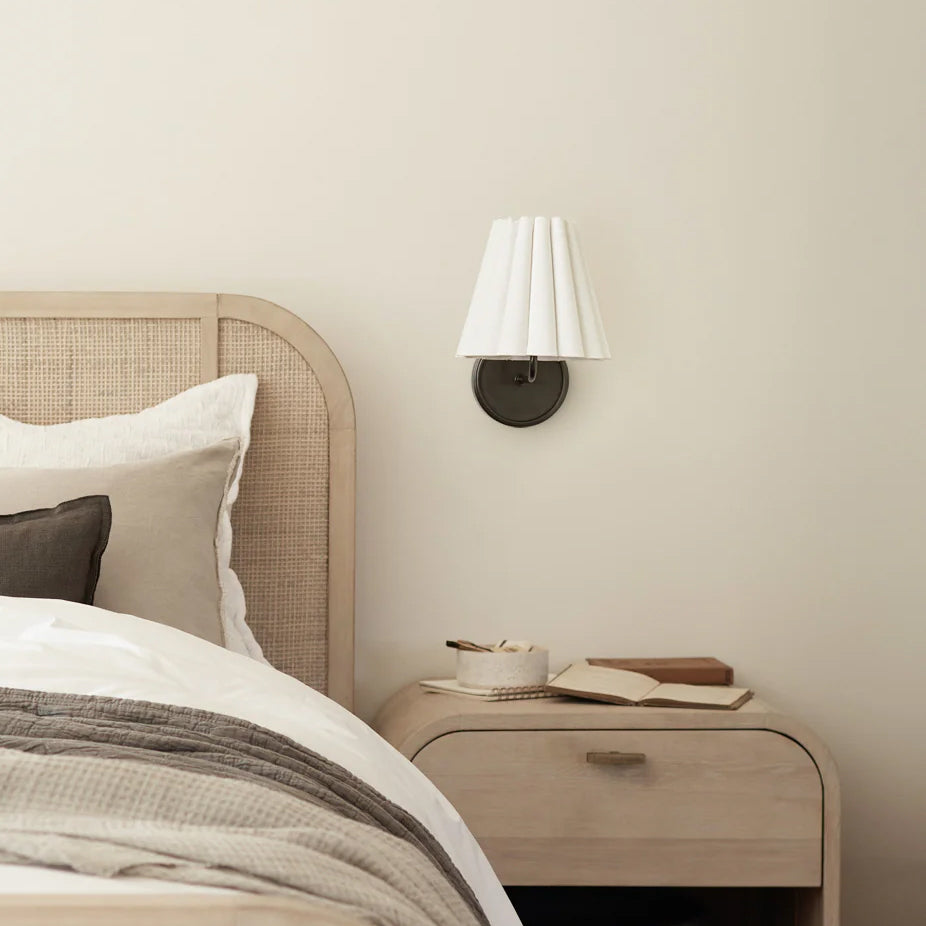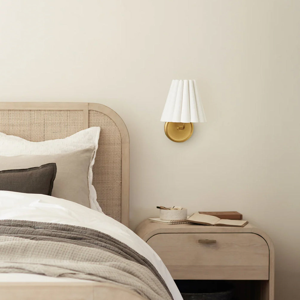The Lilabet Wall Lamp features a cleanly ruffled shade that brings a modern twist to a classic sconce design. Ideal for transitional interiors, it works beautifully in pairs or as a standalone statement, adding elegance and refined style to any space.