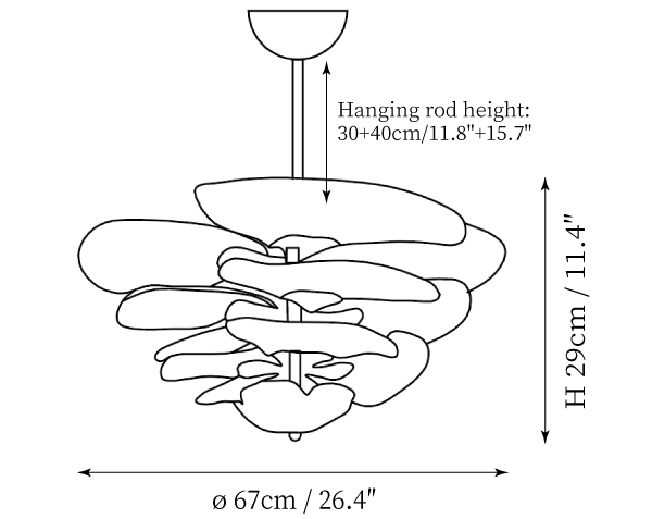 Dia 67cm x H 29cm / ∅ 26.4″ x H 11.4" (Weight: 16KG/35.3 Ibs), (E14 bulbs x 8 pieces, G4 bulbs x 4 pieces)