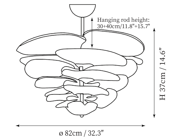 - Dia 82cm x H 37cm / ∅ 32.3″ x H 14.6" (Weight: 22KG/48.5 Ibs), (E14 bulbs x 12 pieces, G4 bulbs x 4 pieces)
