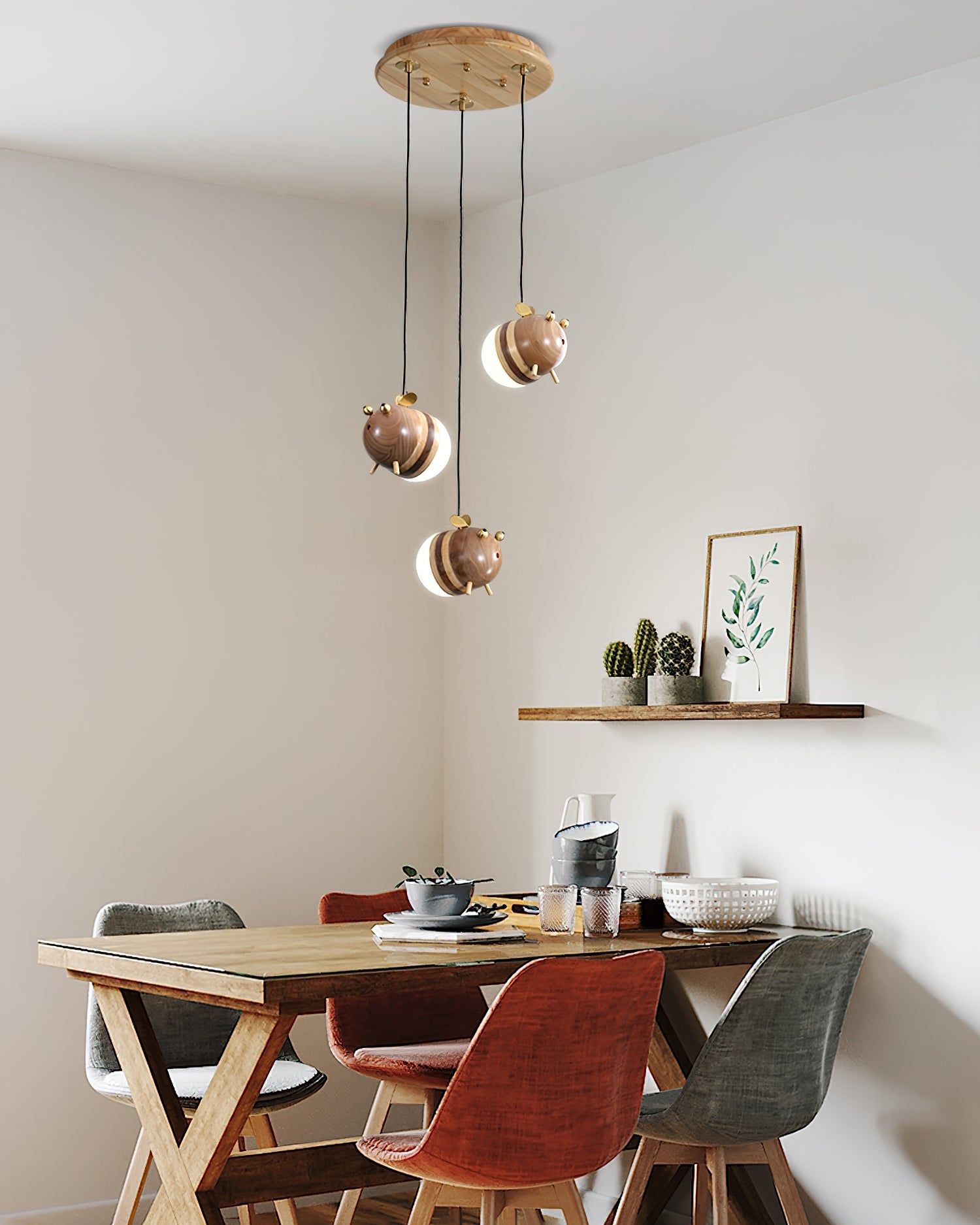 This Little Bee Pendant Lamp is a true masterpiece of craftsmanship, featuring a minimalist geometric design made of natural ash wood and black walnut embellishments. With its lifelike wood texture detail, it exudes a luxurious, exclusive aesthetic and offers a touch of Tuoji style. Its black walnut material ensures a beautiful, anti-corrosive and anti-rust design that gives you the perfect balance of nature and refined sophistication.