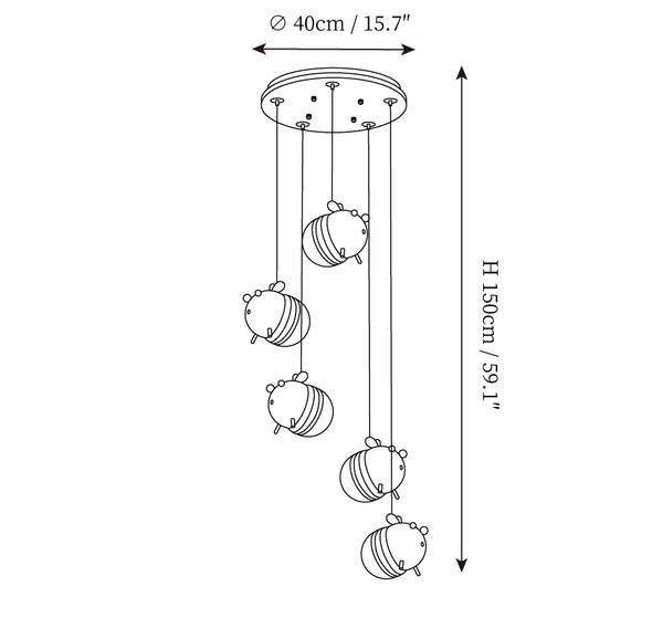 - 5Heads Size: Dia 40cm x H 150cm / ∅ 15.7″ x H 59.1″