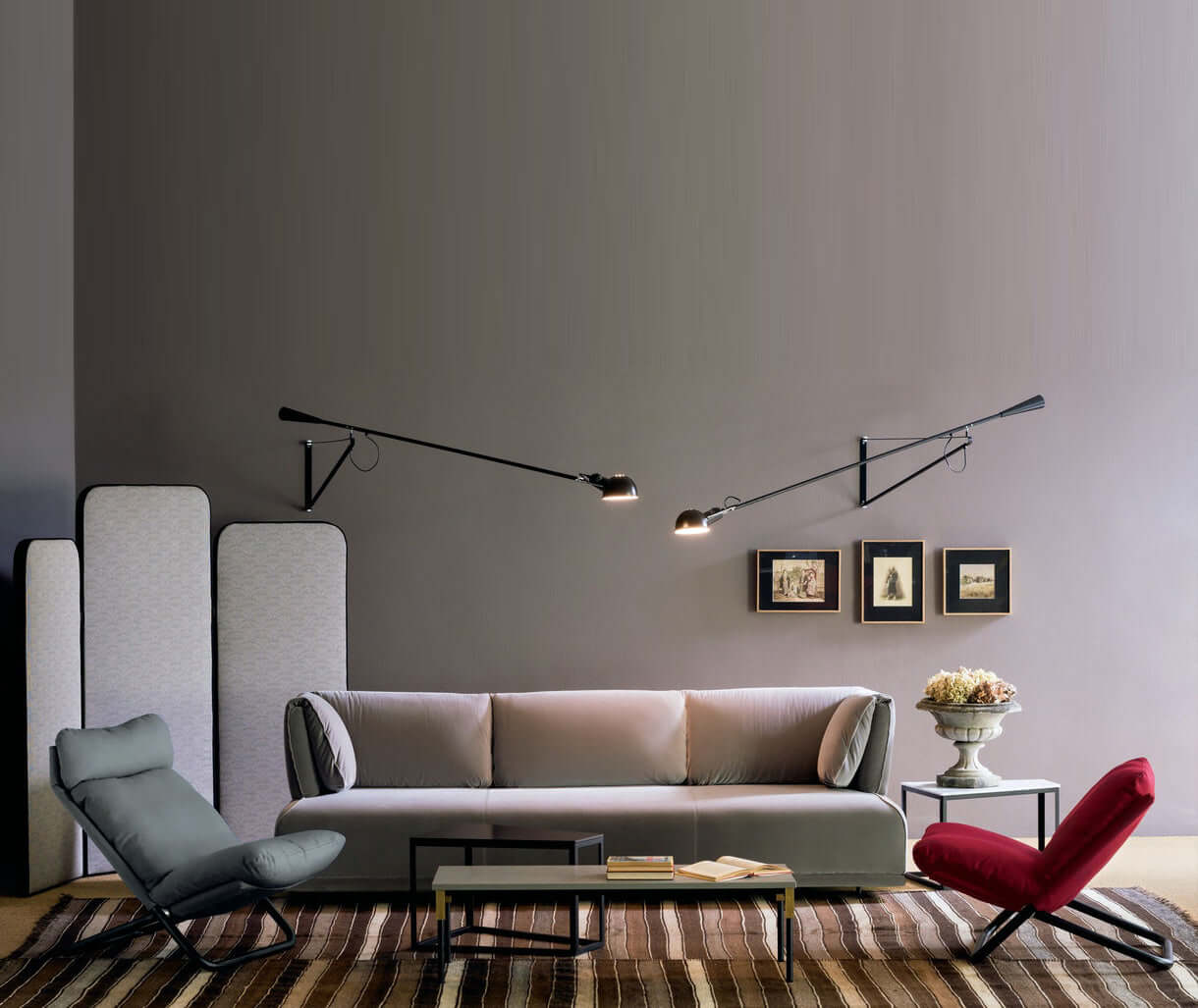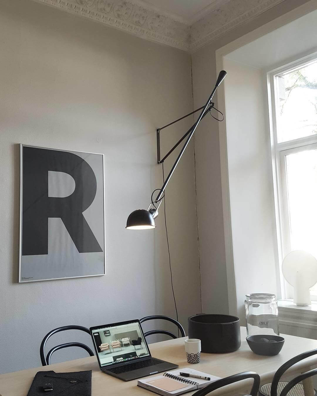 The 265 wall lamp is functional wall lighting with a stripped, industrial style. The small aluminum shade is easily adjustable, giving you a range of options for your light source. It has a metal frame that easily adheres to the wall. Bold in size and direct in function, the 265 is perfect for commercial spaces and large interiors in the home.