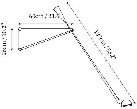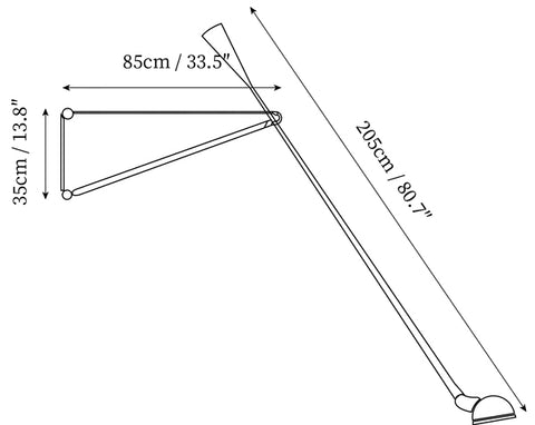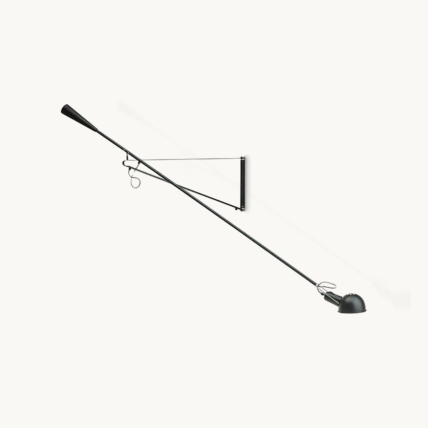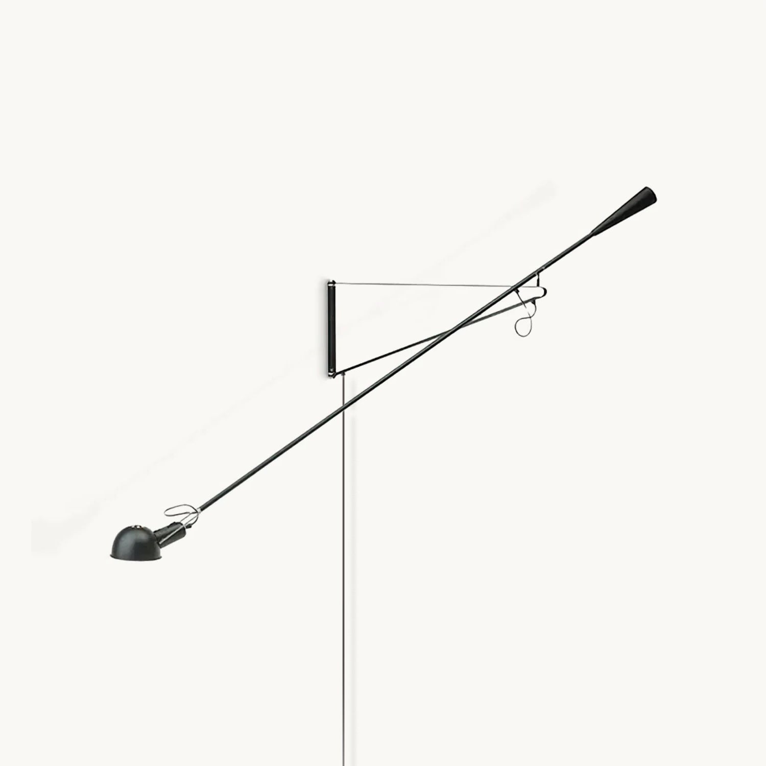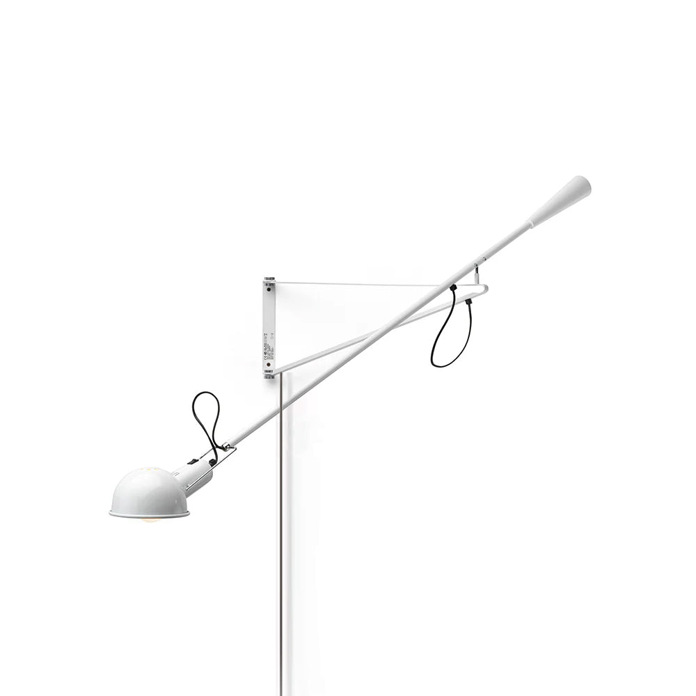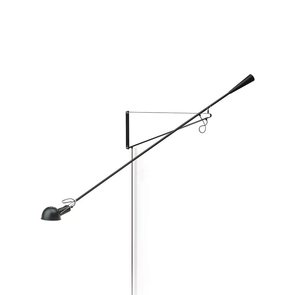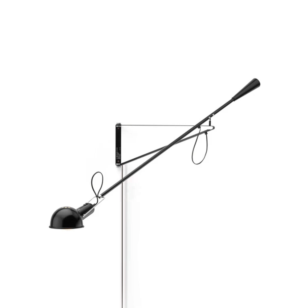 265 Wall lamp providing direct light. Painted metal adjustable arm and reflector. Black Painted metal reflector support. Cast iron tapered counterweight. Painted metal wall fixture.