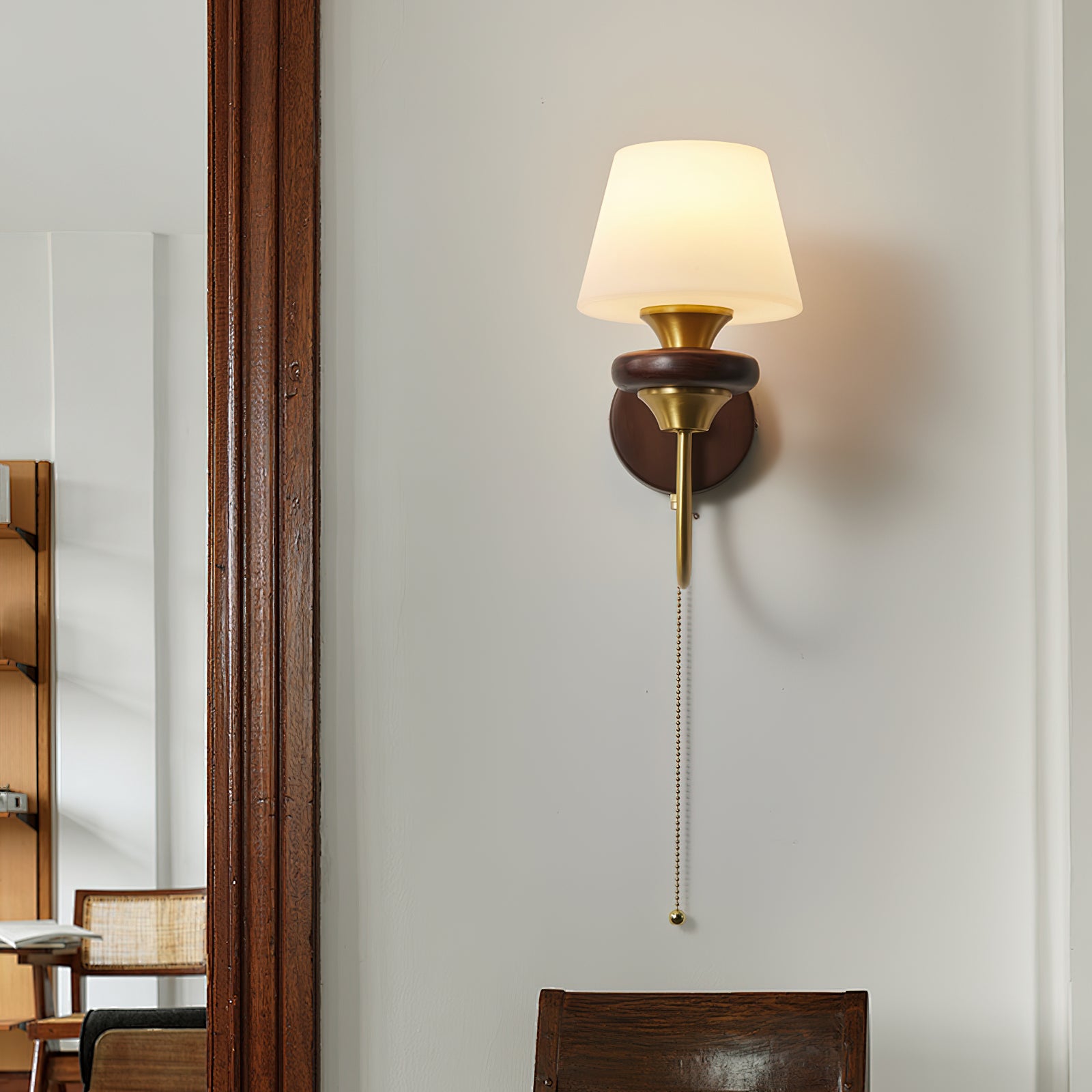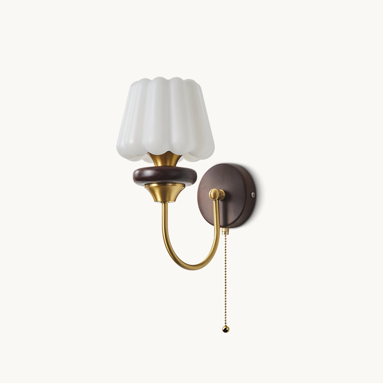 Experience timeless sophistication with the Louise Wall Lamp from Mooijane. Crafted with a brass lamp arm and a rich wooden base, this classic design adds warmth and elegance to any space. The pleated lampshade adds a touch of refinement while the warm light creates a cozy ambience.