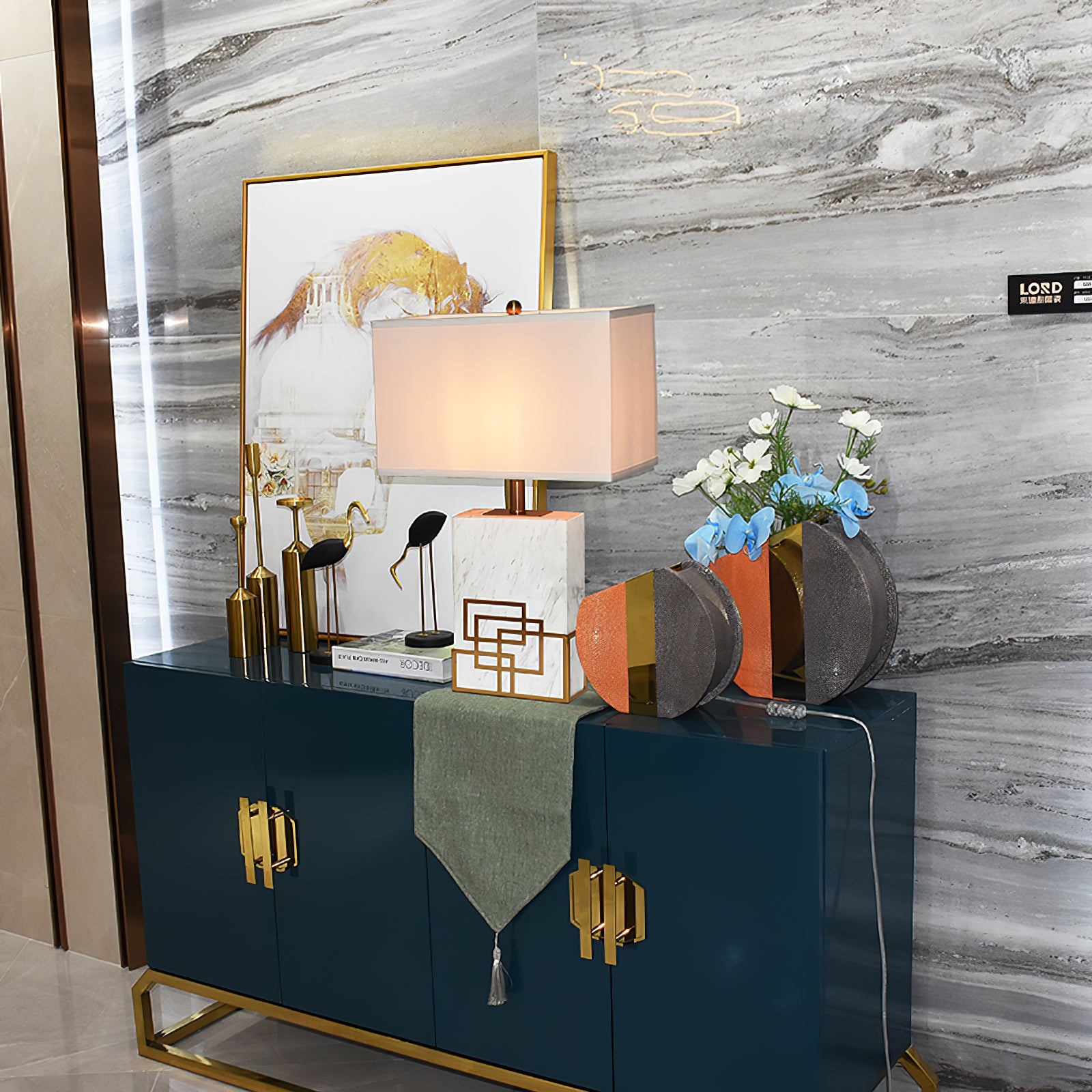 - Material: Metal, Marble, Fabric.