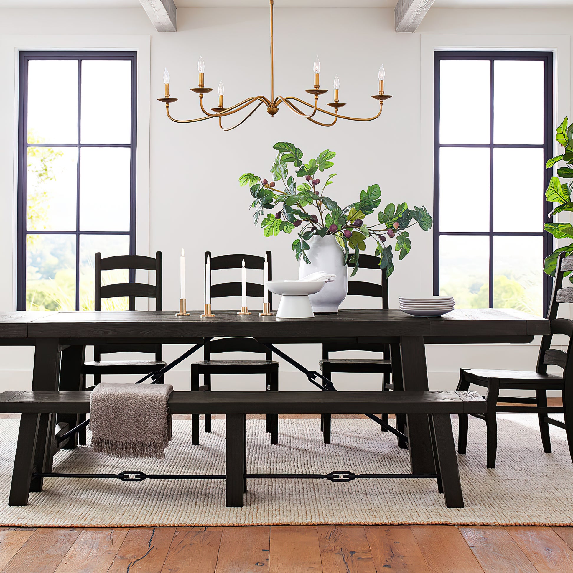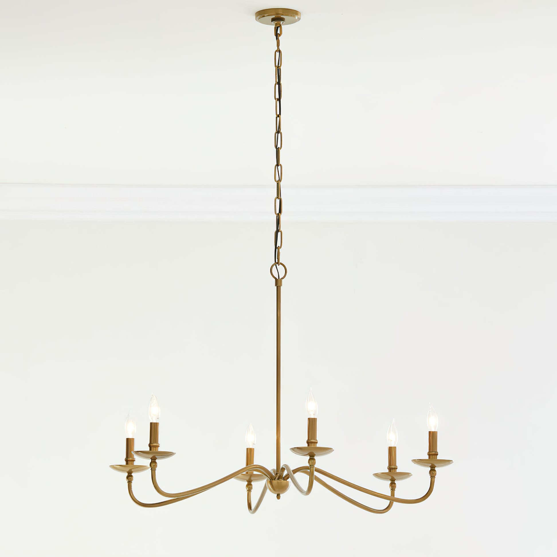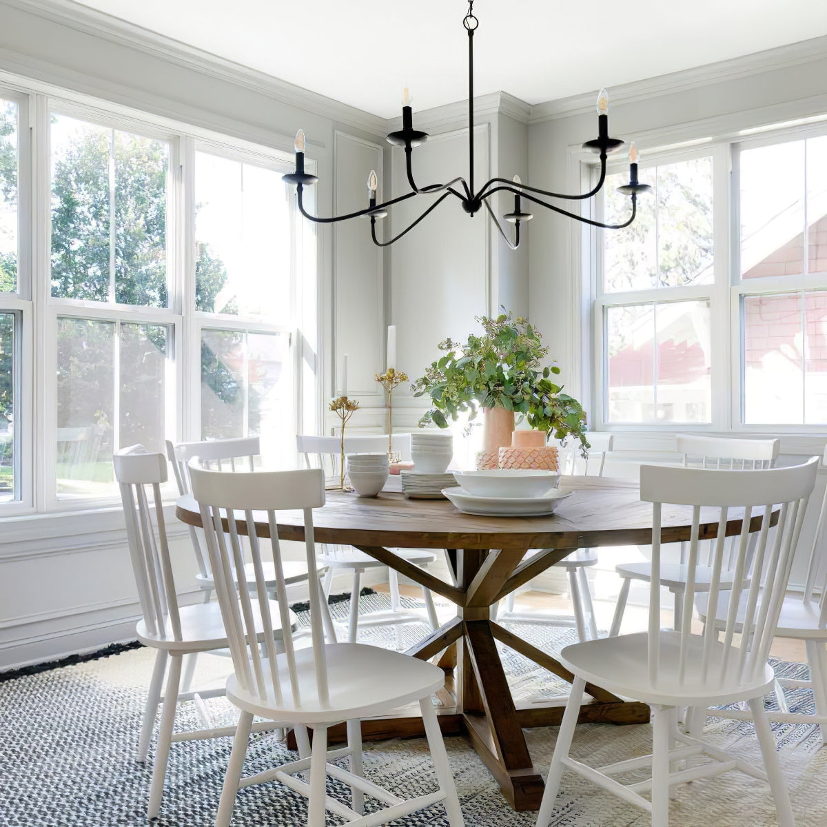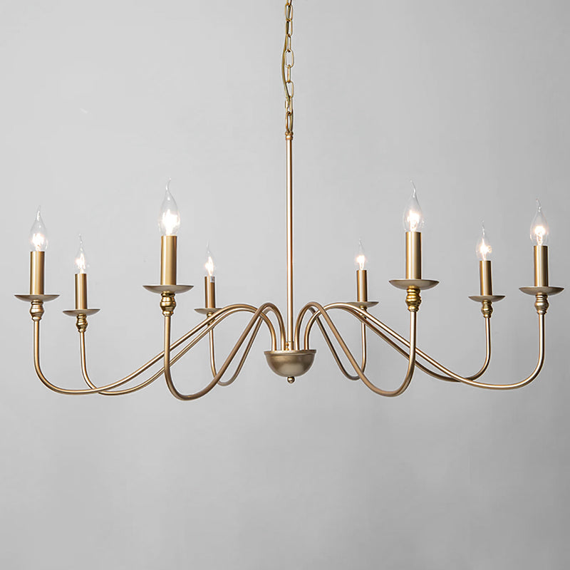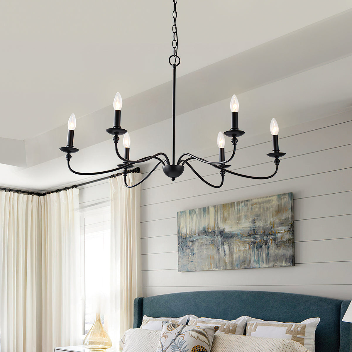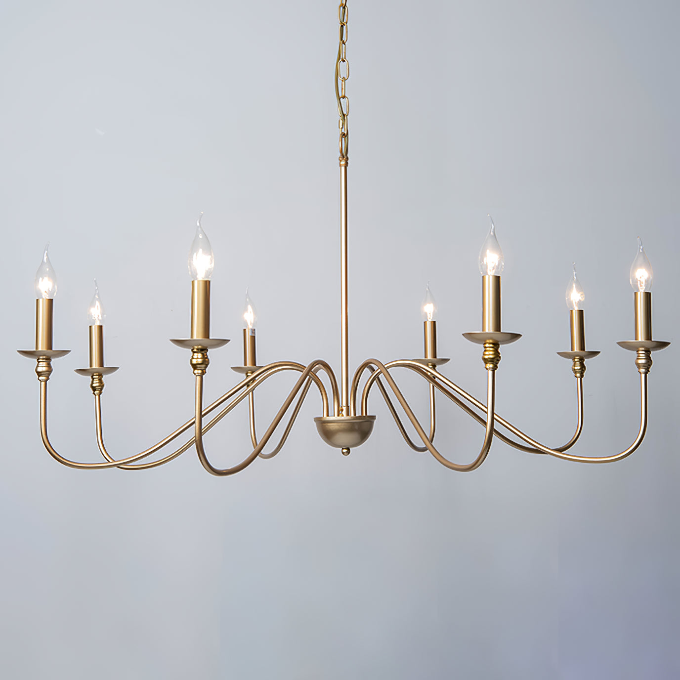 This lighting collection has a simultaneously solid and lightweight look. The wrapped iron gives each fixture a dark, robust feeling, but the swaging arms and saucer-like electric-candle sleeves feel just a touch feminine.