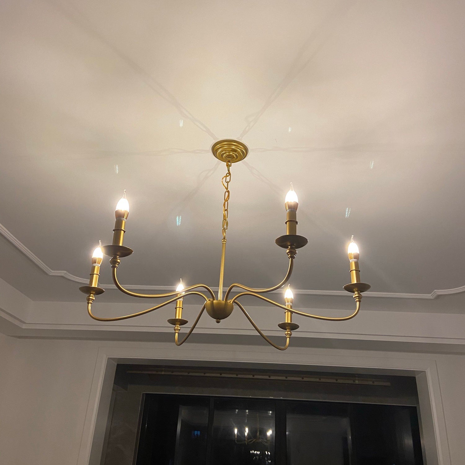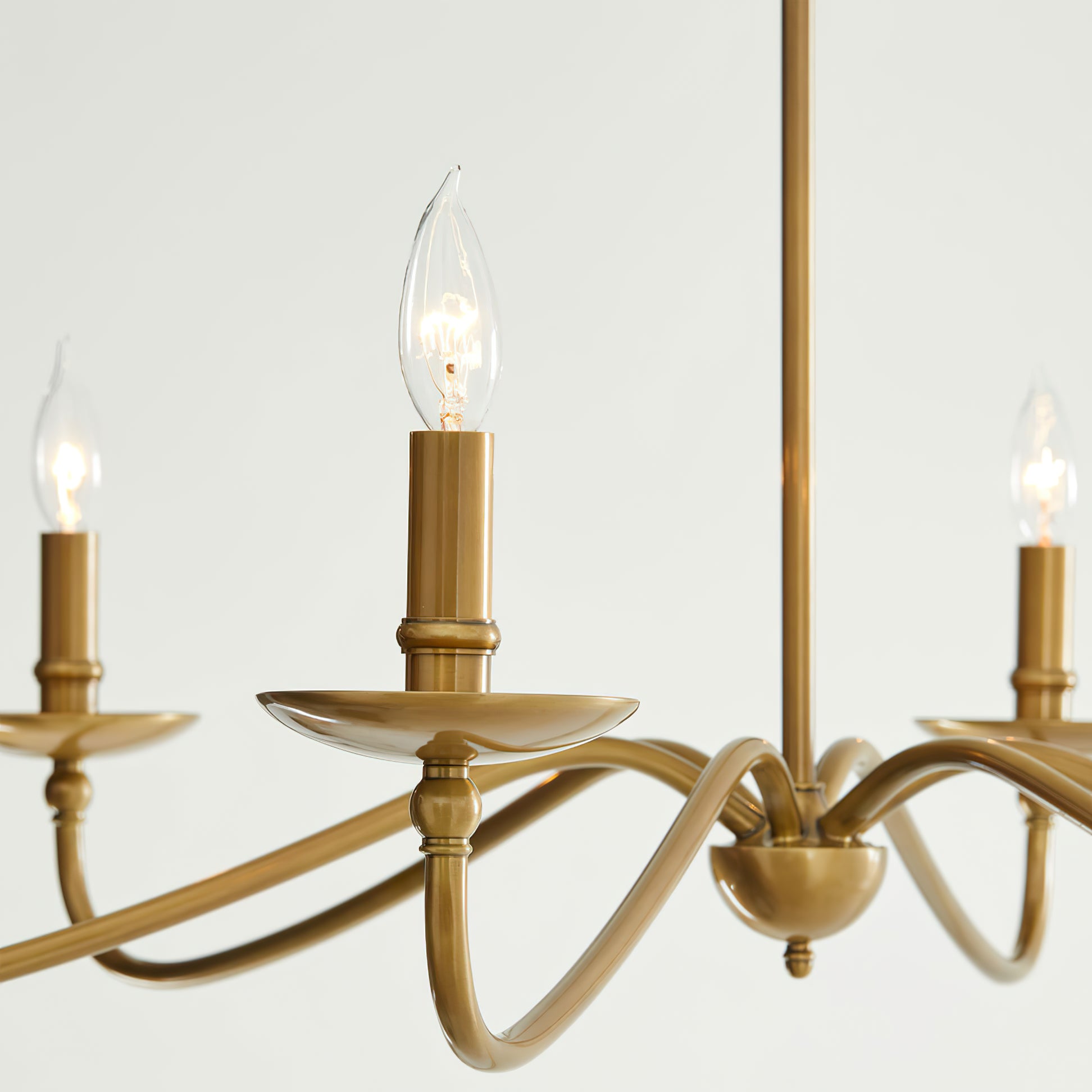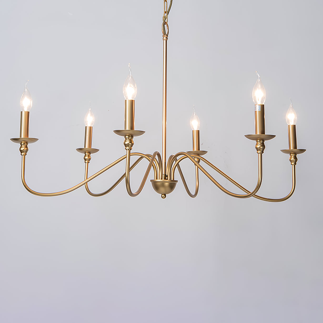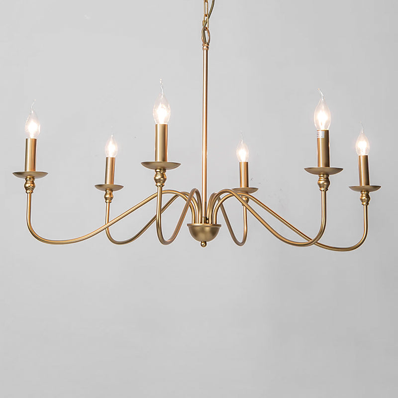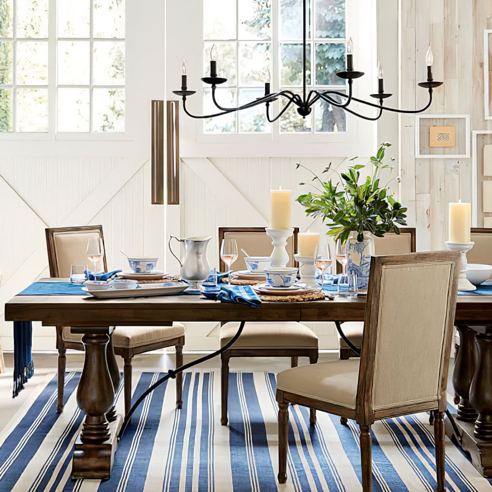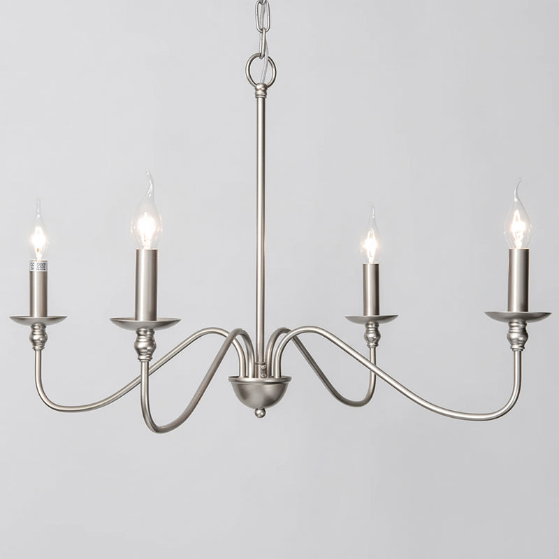 This lighting collection has a simultaneously solid and lightweight look. The wrapped iron gives each fixture a dark, robust feeling, but the swaging arms and saucer-like electric-candle sleeves feel just a touch feminine.