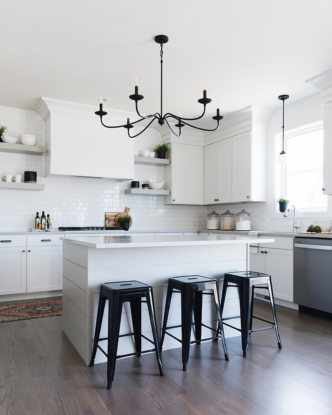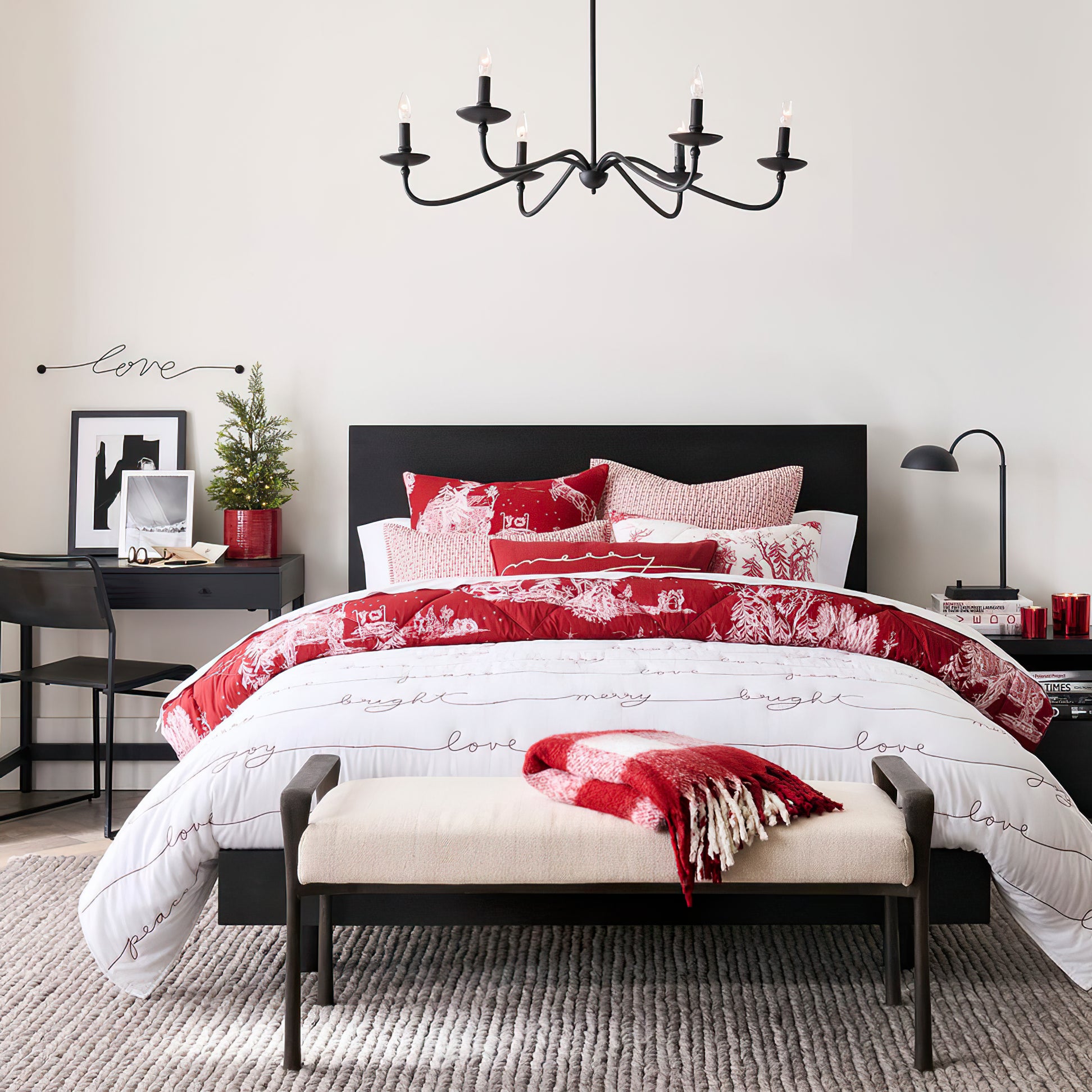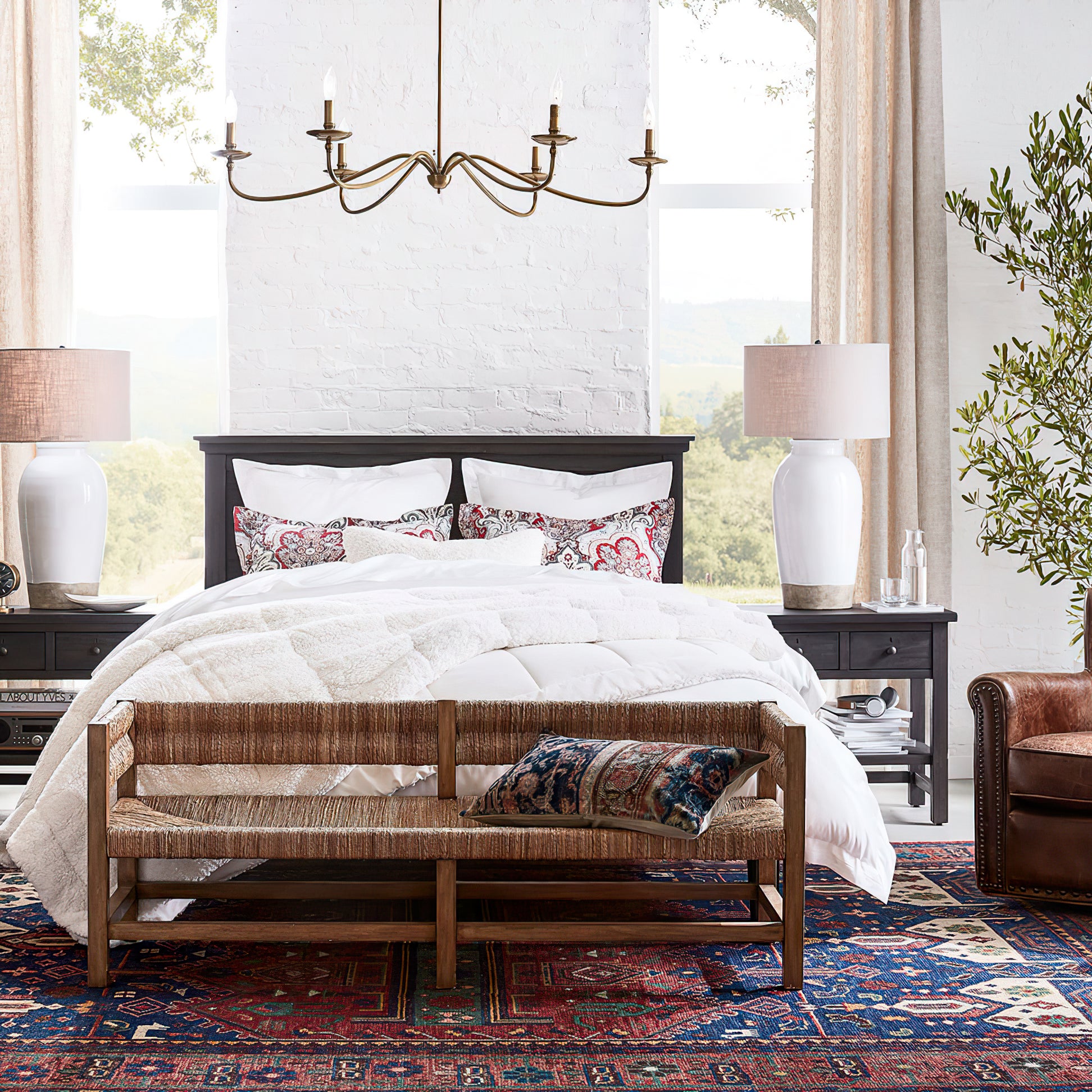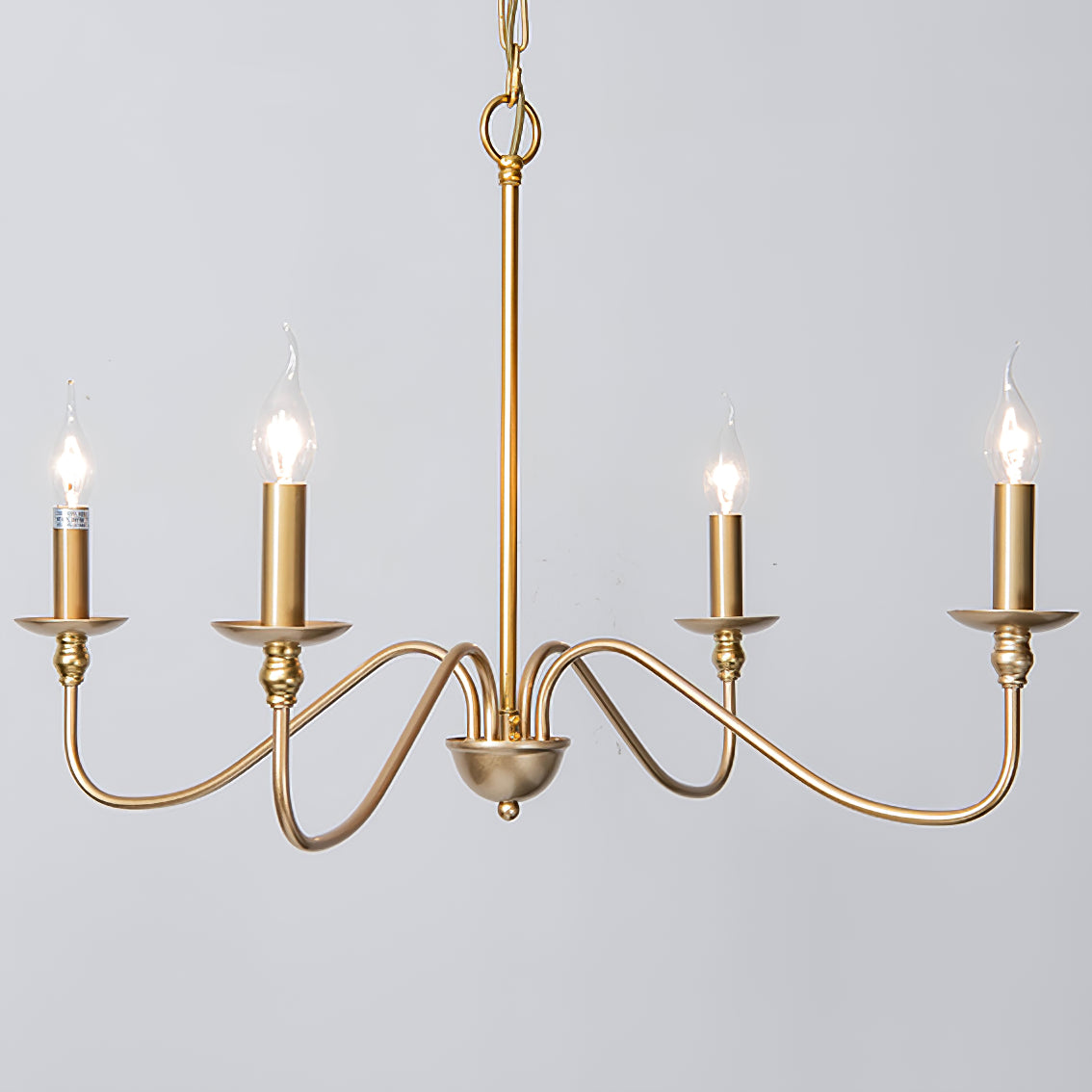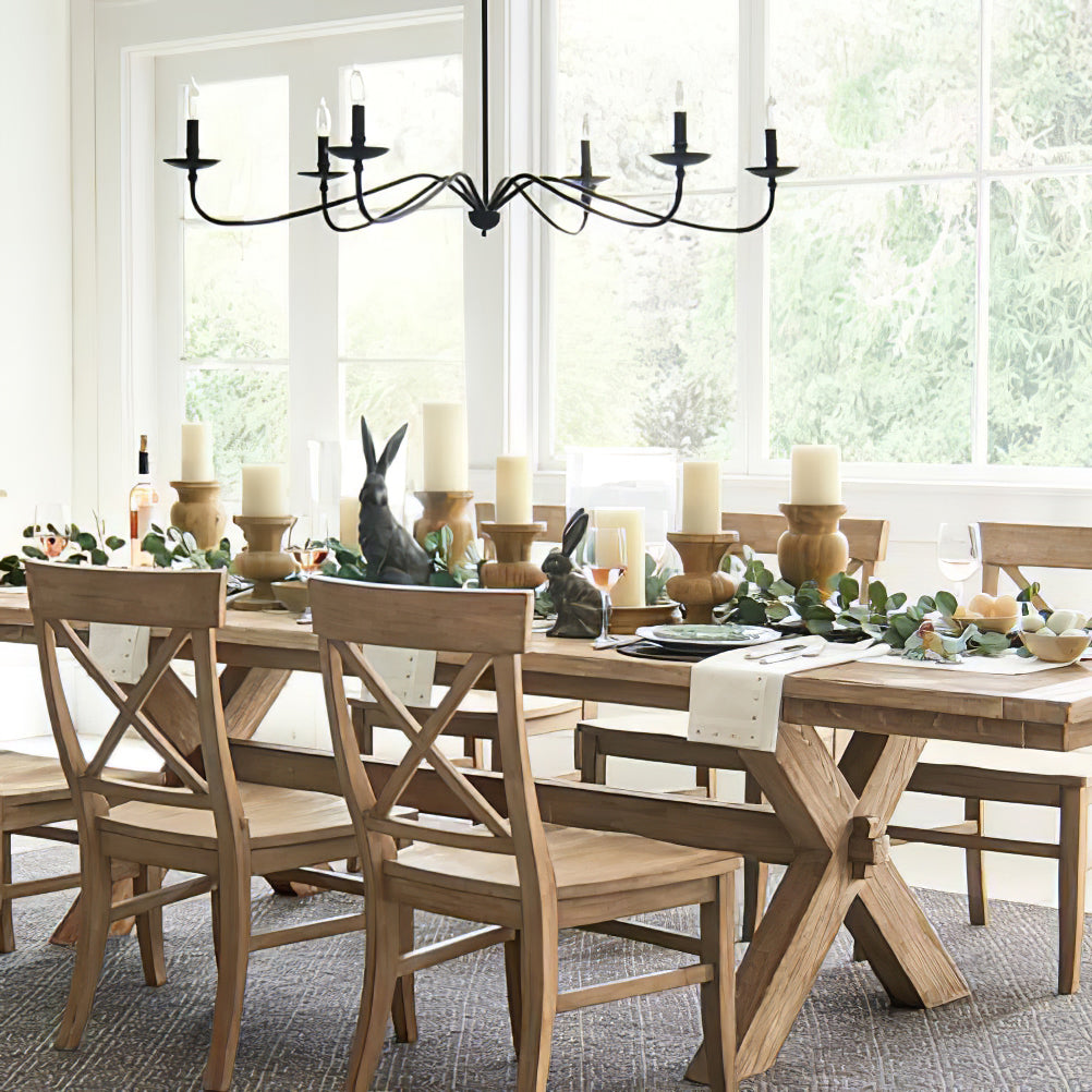 This lighting collection has a simultaneously solid and lightweight look. The wrapped iron gives each fixture a dark, robust feeling, but the swaging arms and saucer-like electric-candle sleeves feel just a touch feminine.