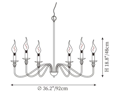 - 6 Heads Size: Dia 92cm x H 48cm / ∅ 36.2″ x H 18.8″