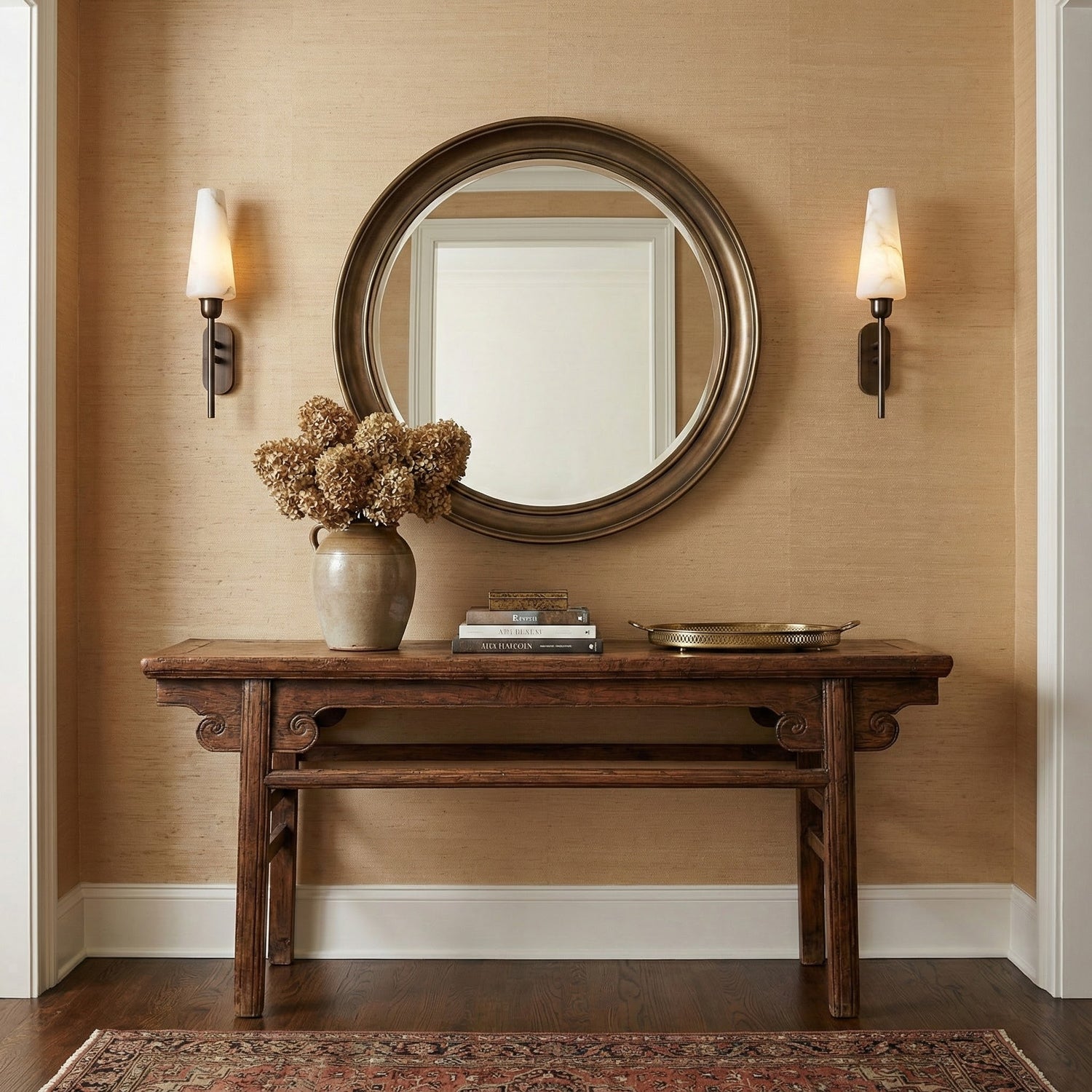 The Lucian Wall Light by Mooijane embodies quiet luxury with a refined Mid-Century sensibility. Set on a distinctive lozenge-shaped backplate, its dual arms are finished in rich bronze and crafted with meticulous hand-finished detail. Paired with a beautifully veined alabaster cone shade, the light is softly diffused, creating a warm and elegant ambiance. Ideal for private residences or hospitality interiors, this wall light brings timeless aesthetics and understated sophistication to any space.