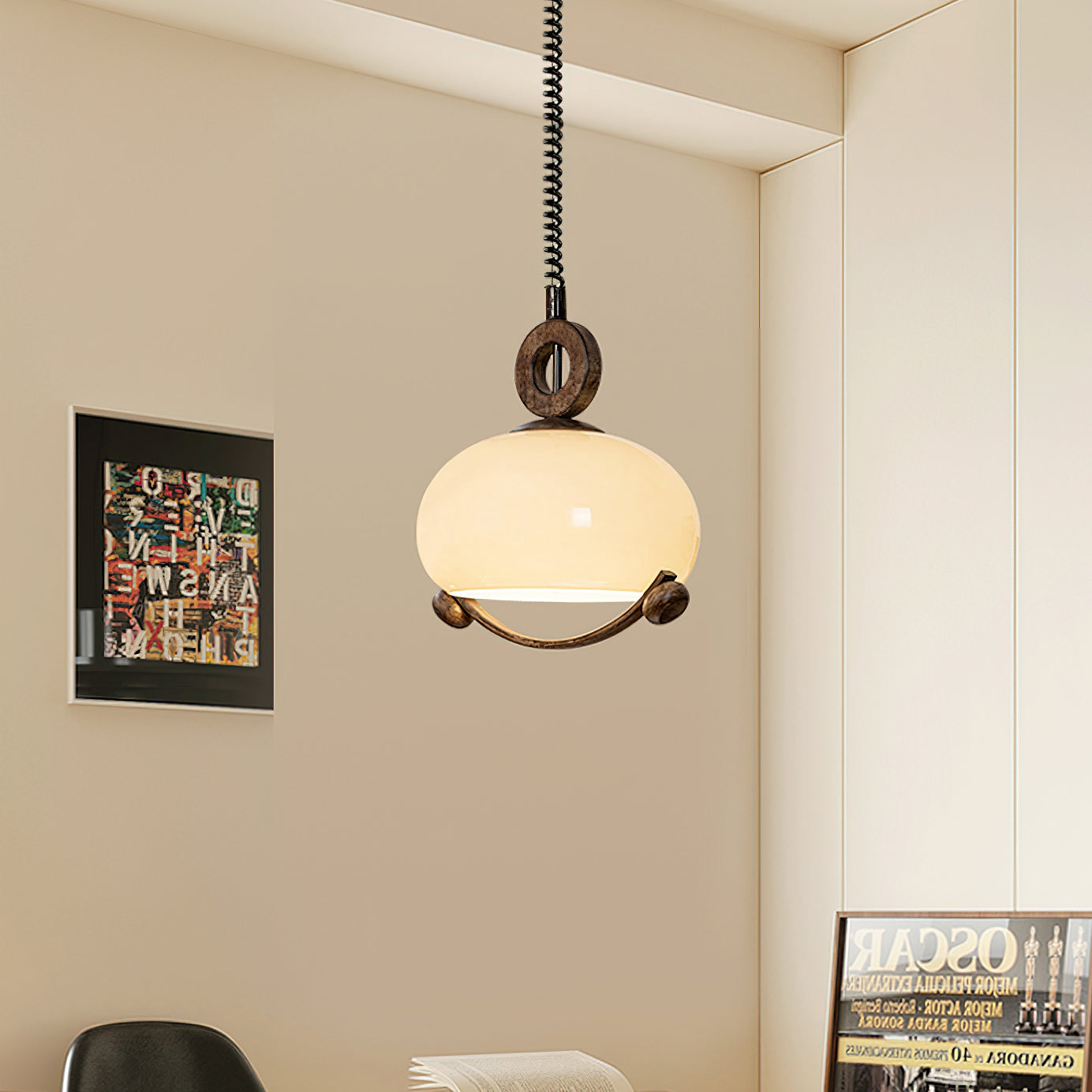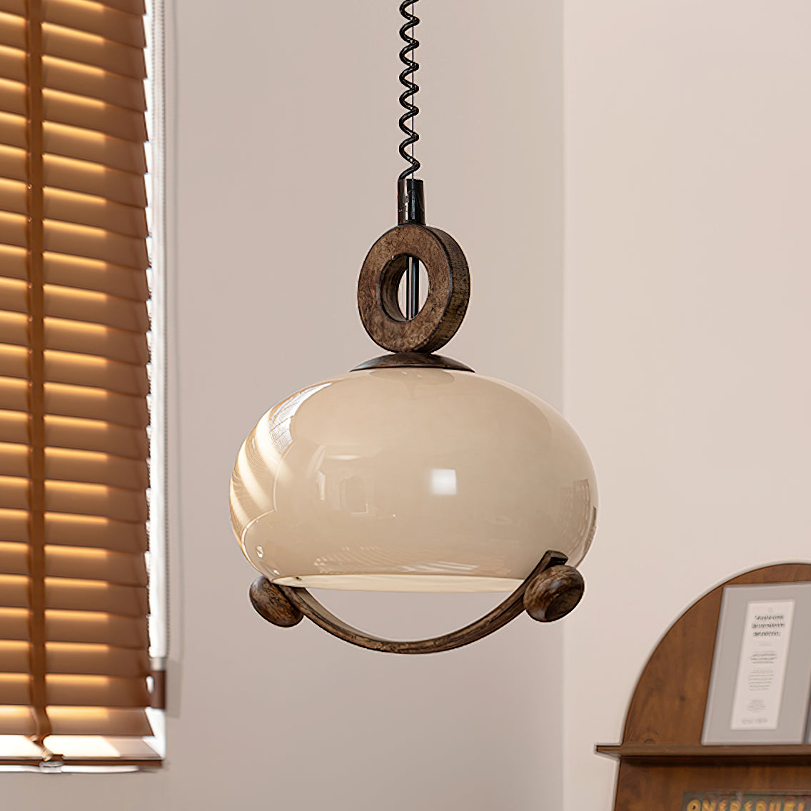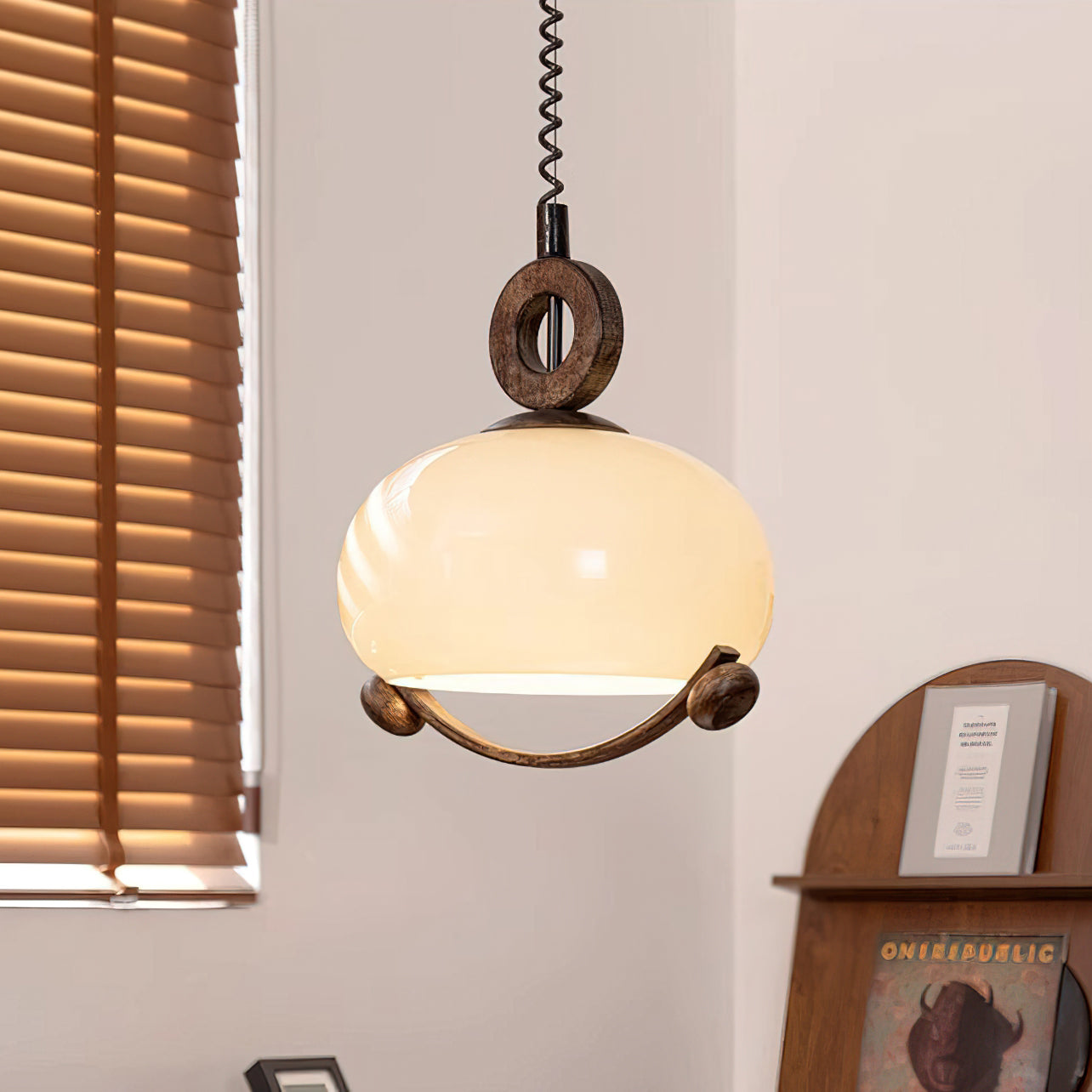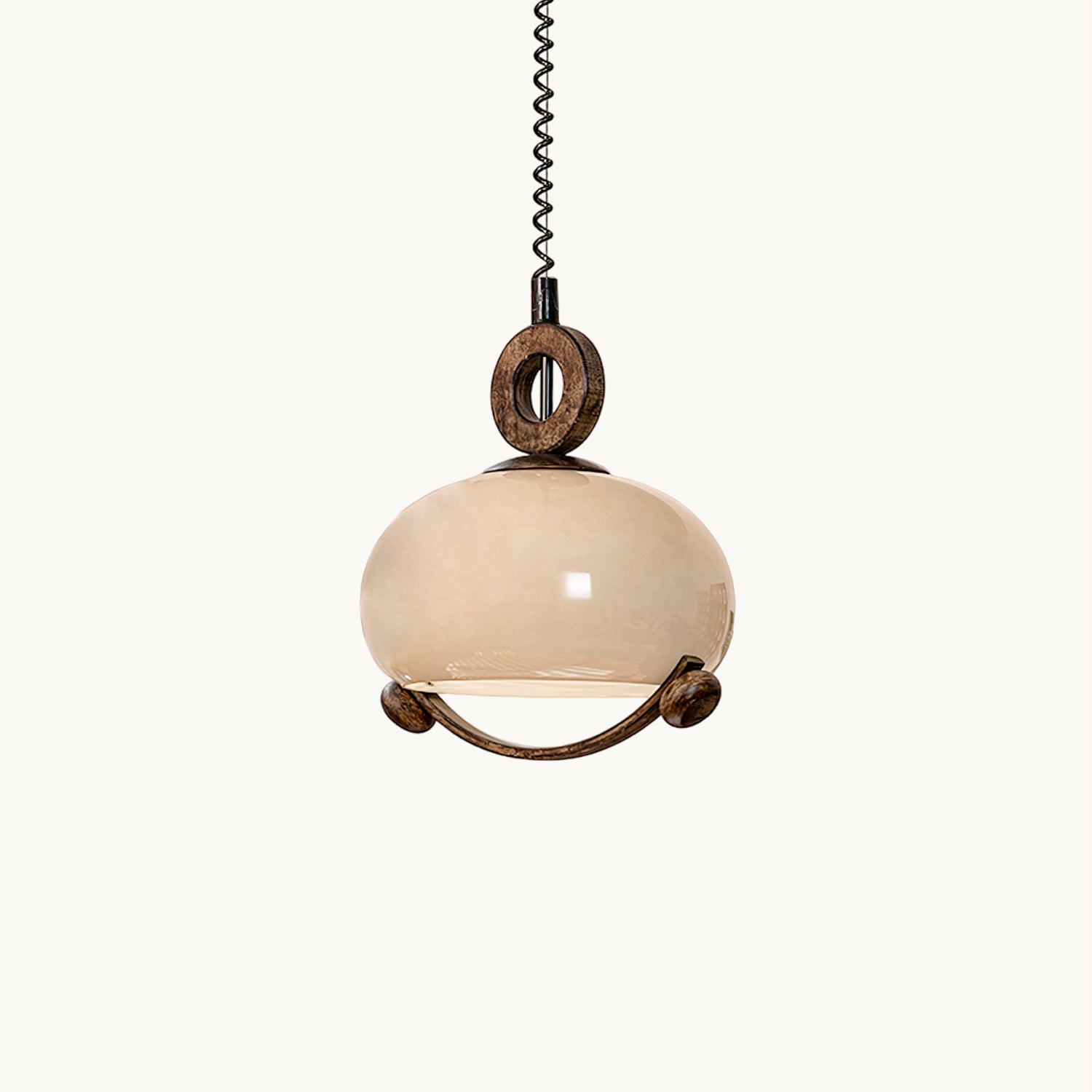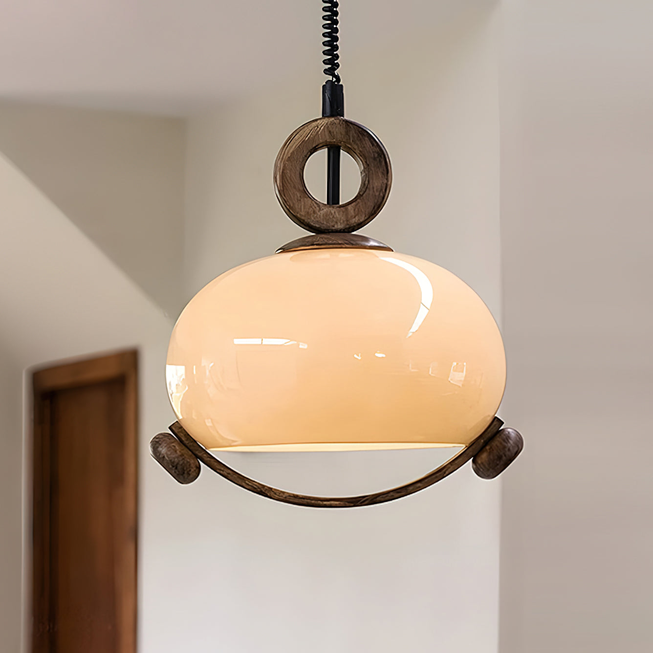 Indulge in the fusion of nature and modernity with the Luna Orb Pendant Lamp by Mooijane. The opal glass shade creates a serene, moon-like ambiance, while the suspended ring and wood accents add a touch of rustic luxury. Perfect for dining rooms, living rooms, or intimate corners that deserve a touch of sophistication.