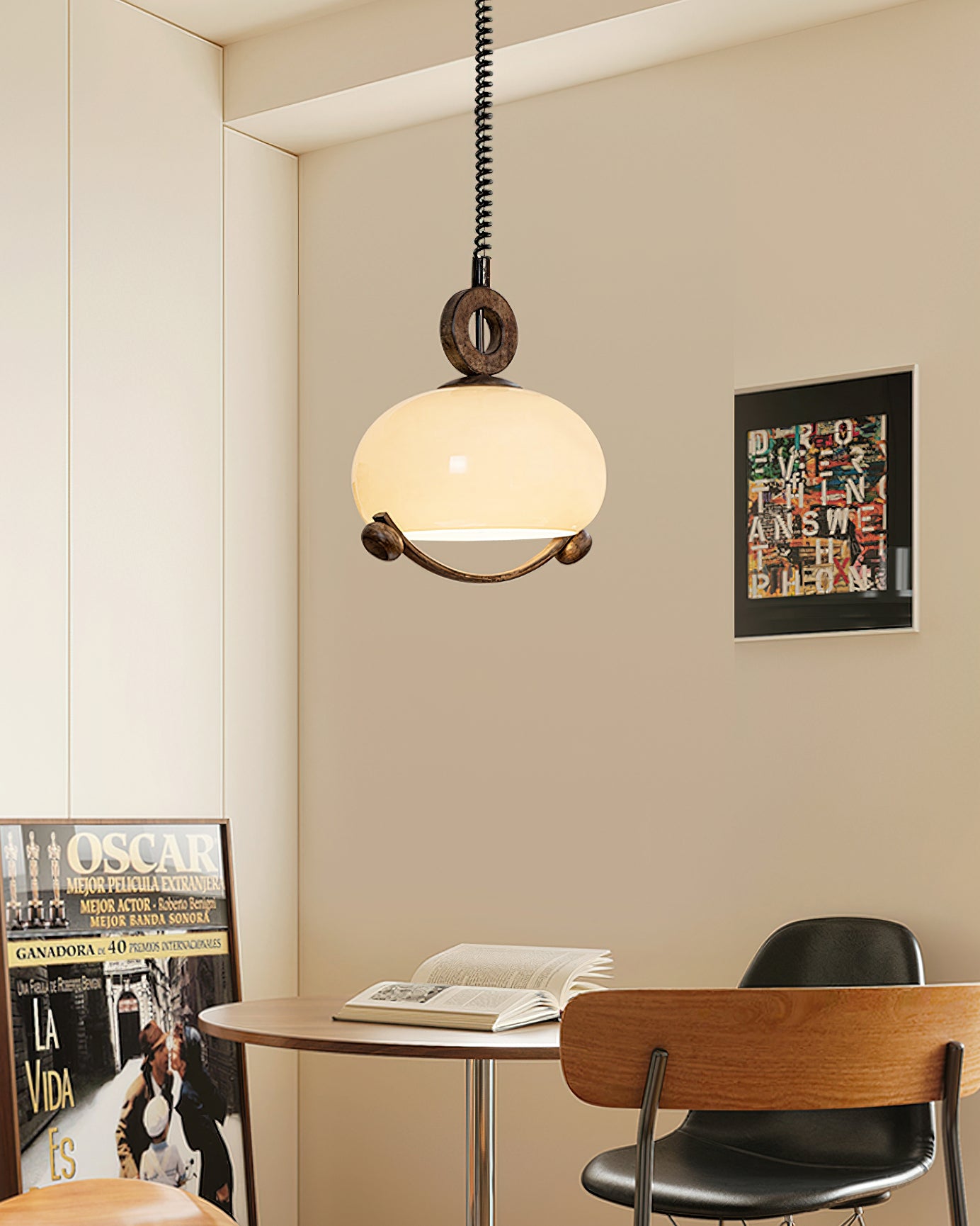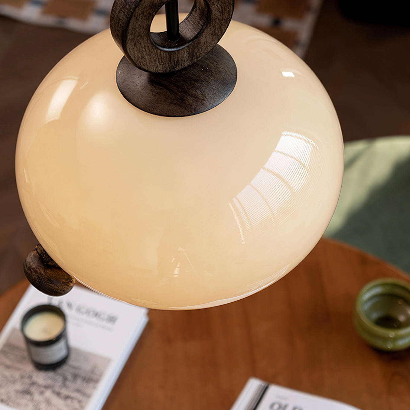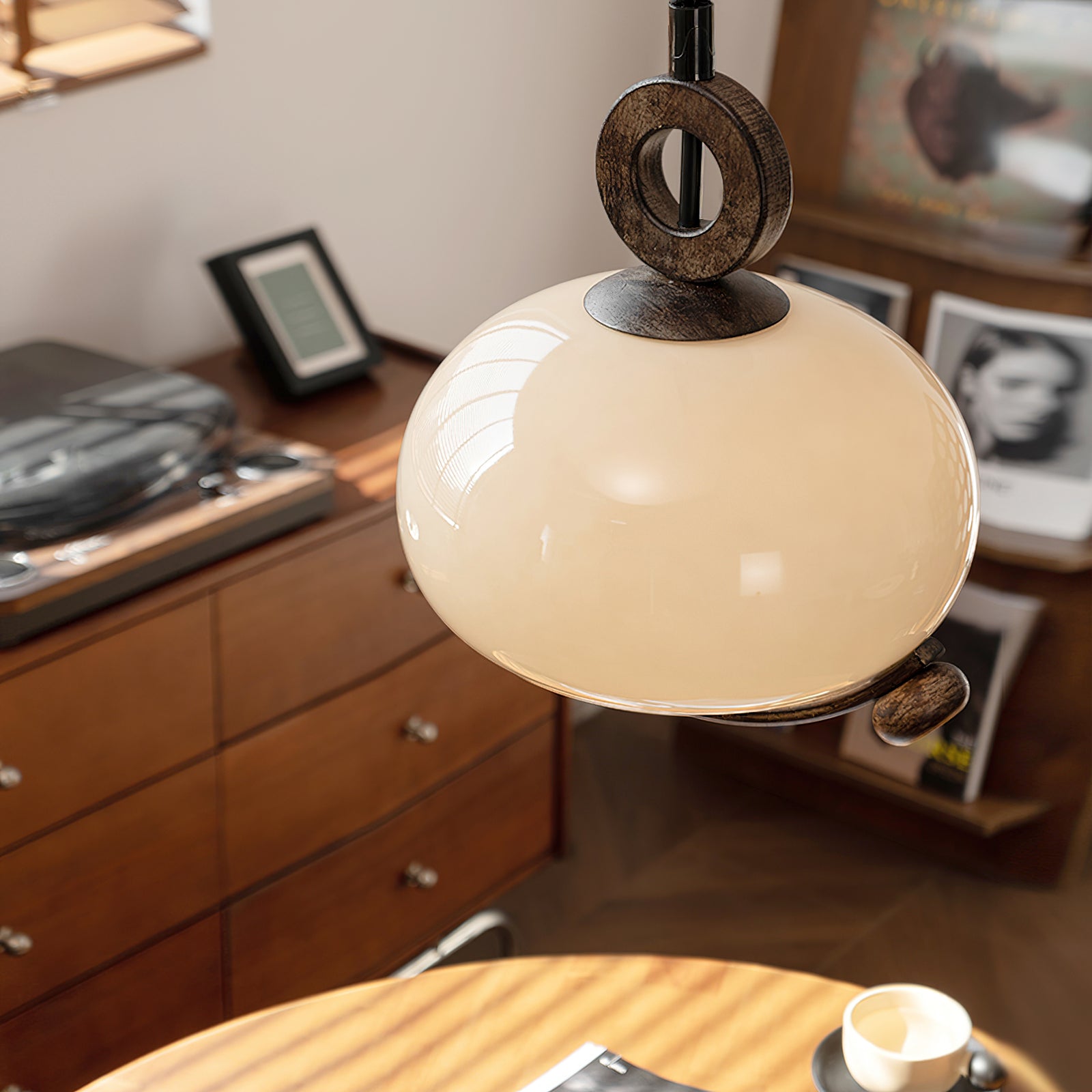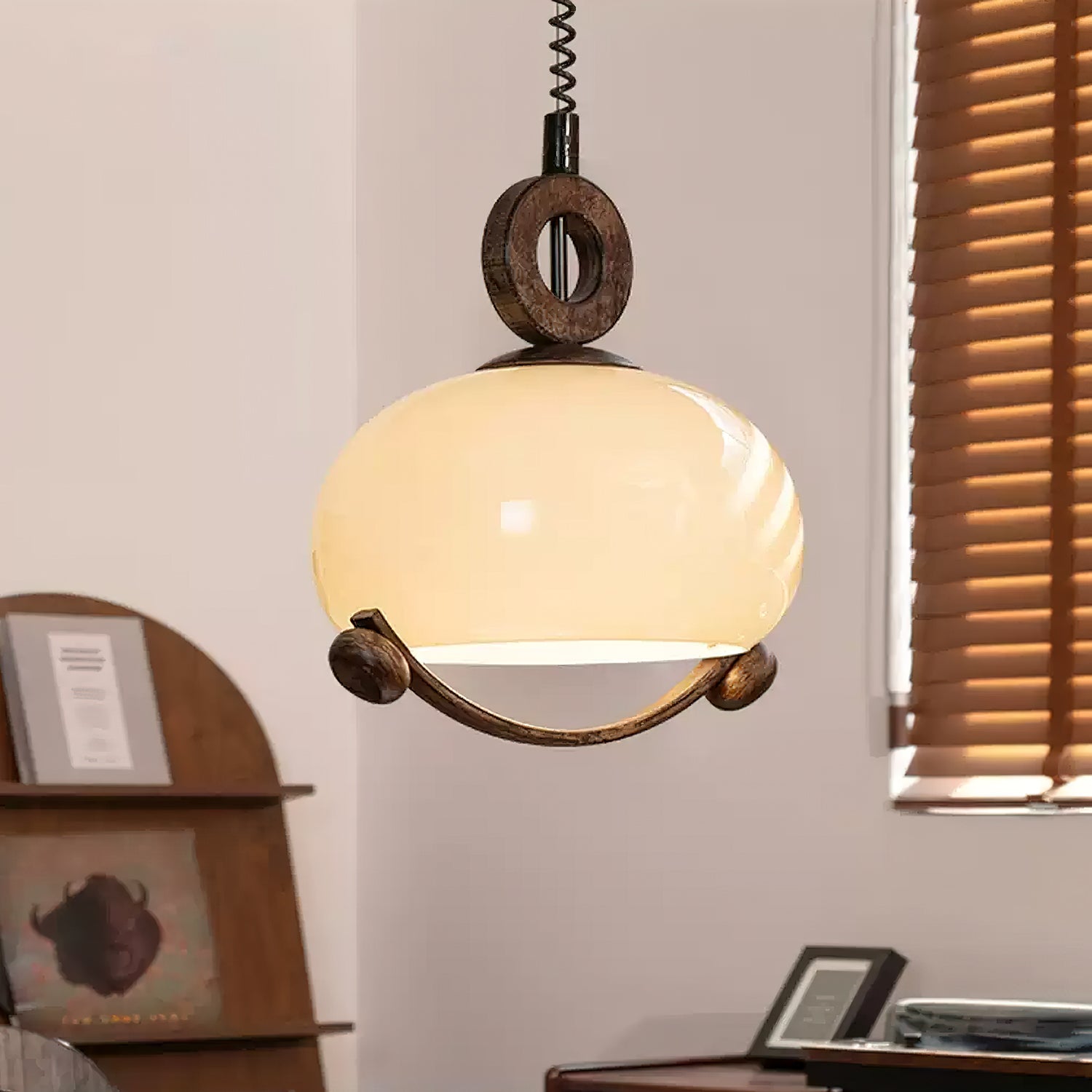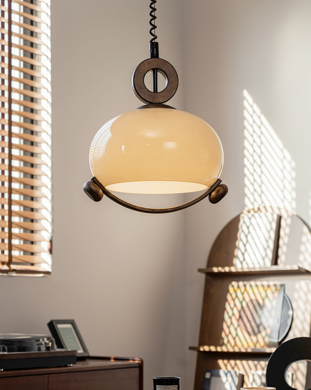 Indulge in the fusion of nature and modernity with the Luna Orb Pendant Lamp by Mooijane. The opal glass shade creates a serene, moon-like ambiance, while the suspended ring and wood accents add a touch of rustic luxury. Perfect for dining rooms, living rooms, or intimate corners that deserve a touch of sophistication.