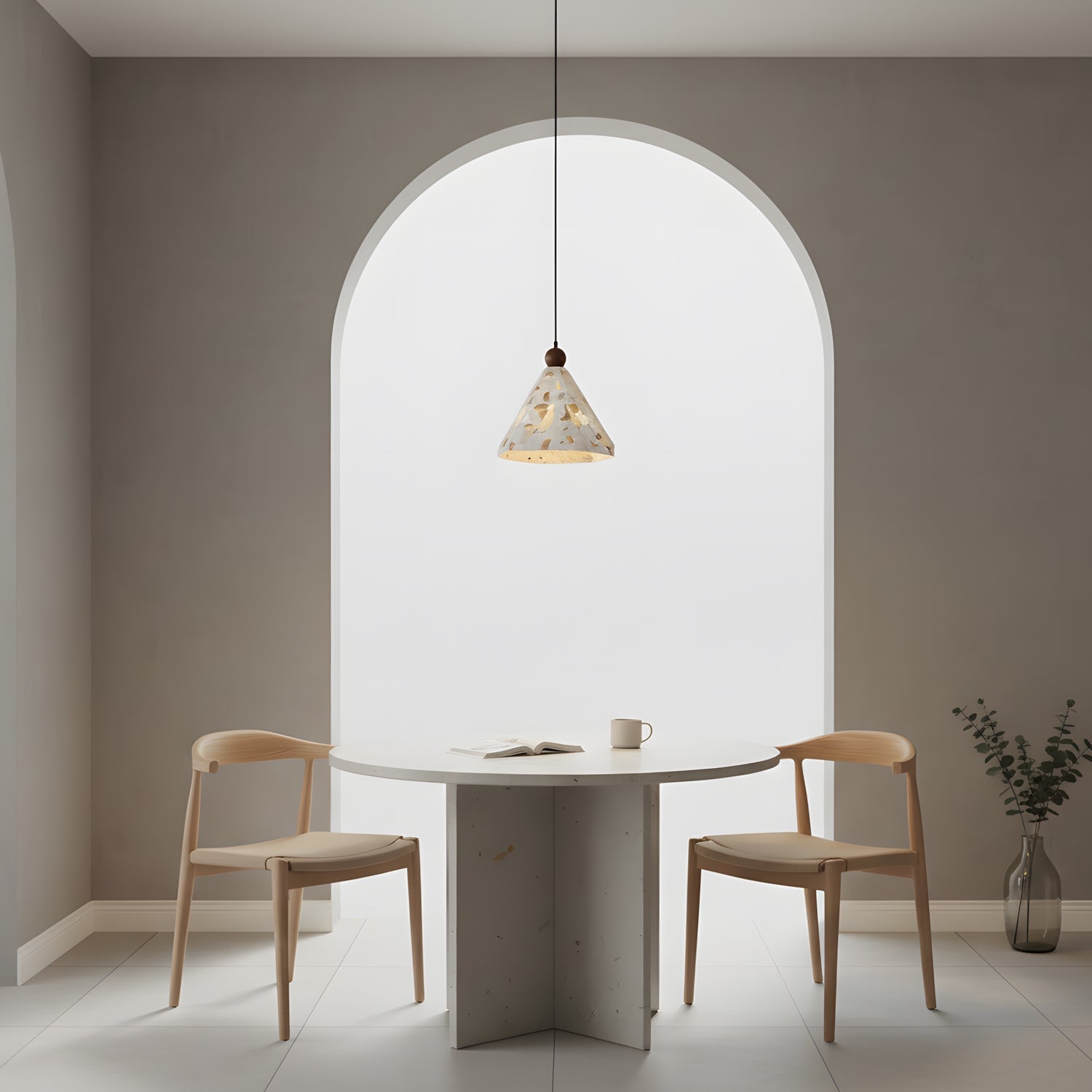 The Lustra Pendant Lamp by Mooijane reflects the quiet elegance of Wabi-sabi design. Featuring a water-polished translucent stone shade, it highlights organic texture and natural imperfections. When illuminated, it emits a soft, diffused glow that brings warmth and calm to dining areas, bedrooms, or contemplative spaces.