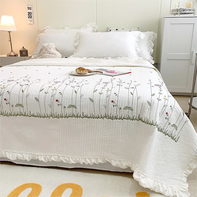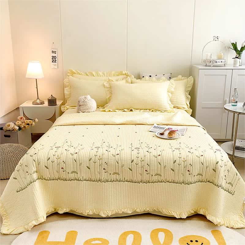 Indulge in luxury with our versatile quilt that complements various room styles. Adorned with a ruffle design, this quilt is stylish and eye-catching. Crafted from cotton gauze, this quilt is soft, comfortable, breathable, highly absorbent, without lint and pilling, and easy to clean and quickly dry.
