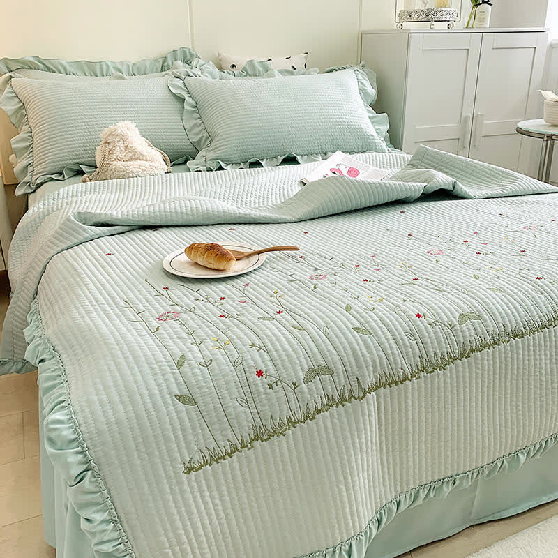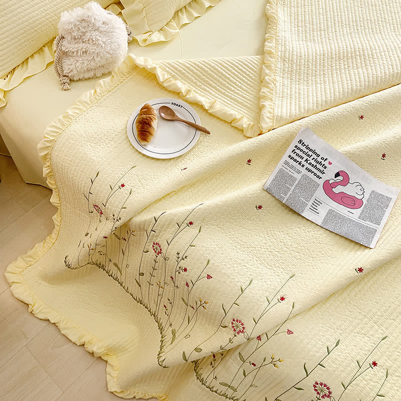 Luxurious Floral Soft Lightweight Ruffles Quilt