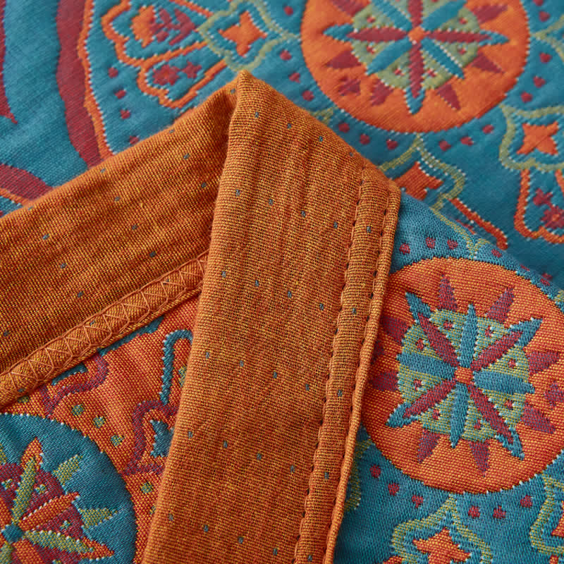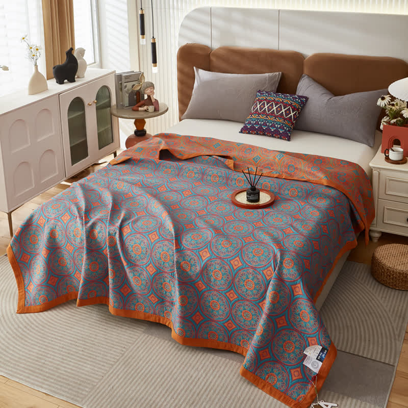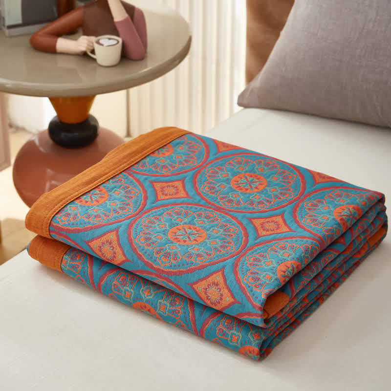 This elegant round pattern quilt can add a distinctive charm to diverse home styles. With a reversible design, you can choose which side to use according to your preferences and needs, increasing the product's practicality and service life. This quilt is made of pure cotton with three layers of yarn, which is softer and fluffier and not easy to fade, deform, and pilling. It's suitable for daily use.