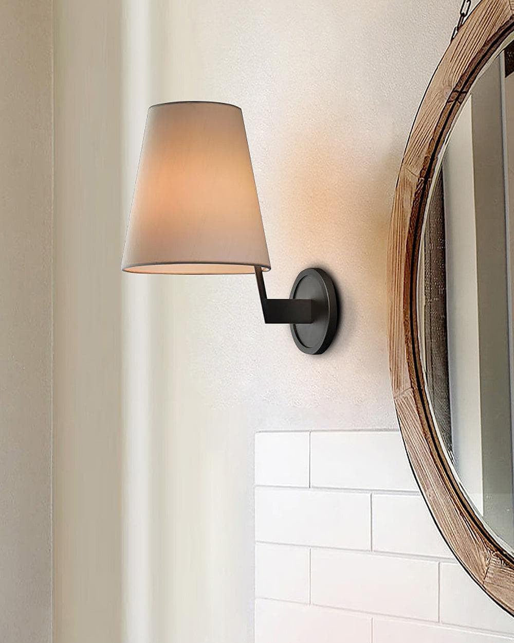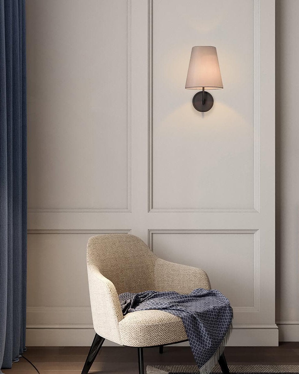 The Lyndsie Wall Sconce by Mooijane is a refined blend of timeless elegance and modern simplicity. Featuring a brushed black base paired with a durable linen shade, it casts a warm, ambient glow that enhances any space. Perfect for bedrooms, dining rooms, kitchens, hallways, or bathrooms, this versatile sconce is especially striking when installed in pairs. Its clean design makes it ideal for modern and transitional interiors alike.