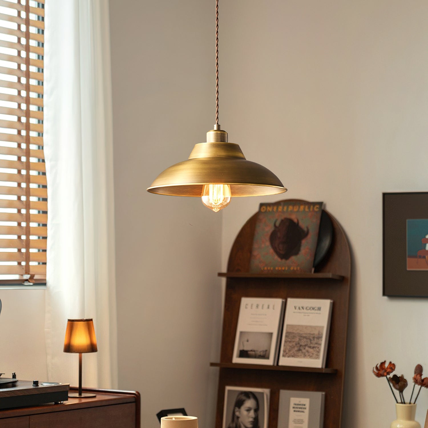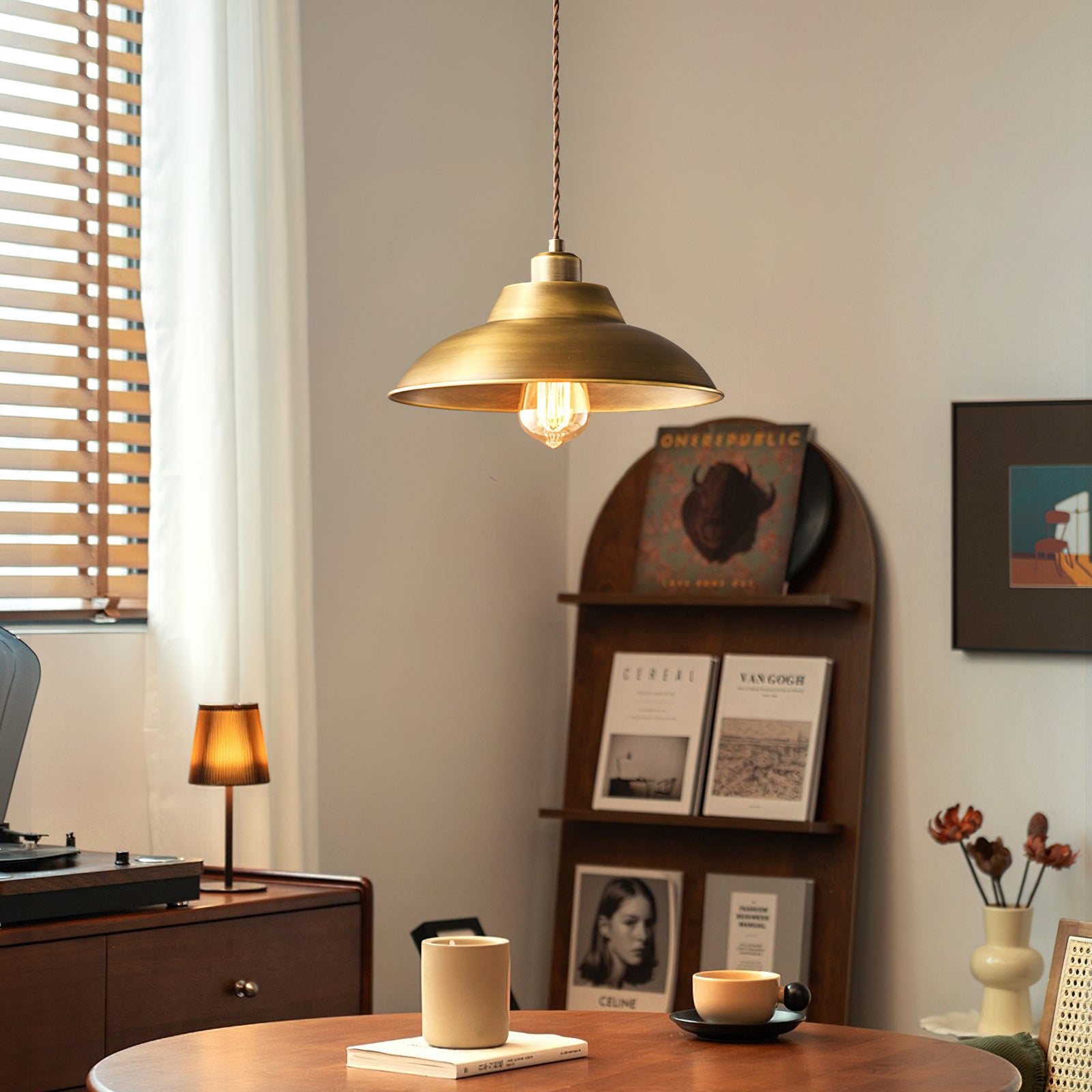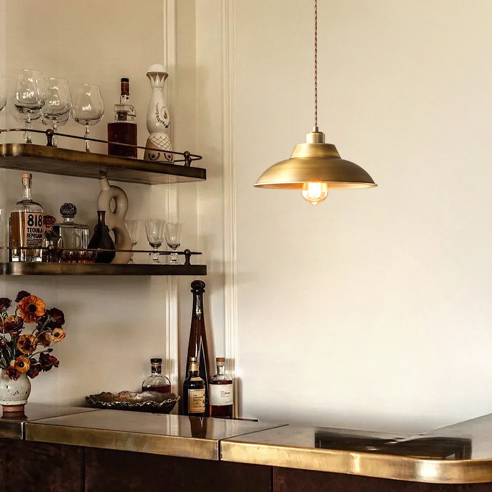 The Maeve Pendant Light by Mooijane is crafted from solid brass, featuring a graceful curved arm and wide flared shade. Its polished finish radiates a warm metallic glow that naturally develops a rich patina over time. Designed to pair beautifully with an exposed Edison bulb, it casts a soft, nostalgic light—perfect for adding character to both industrial and vintage-inspired spaces.