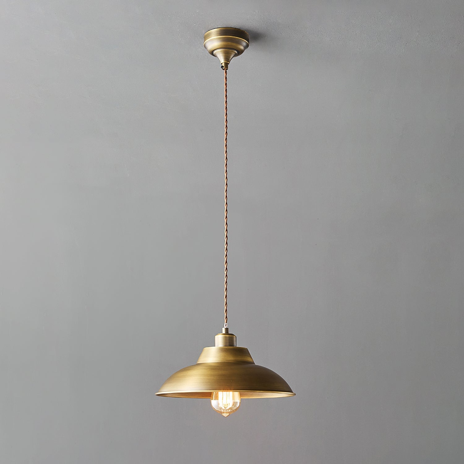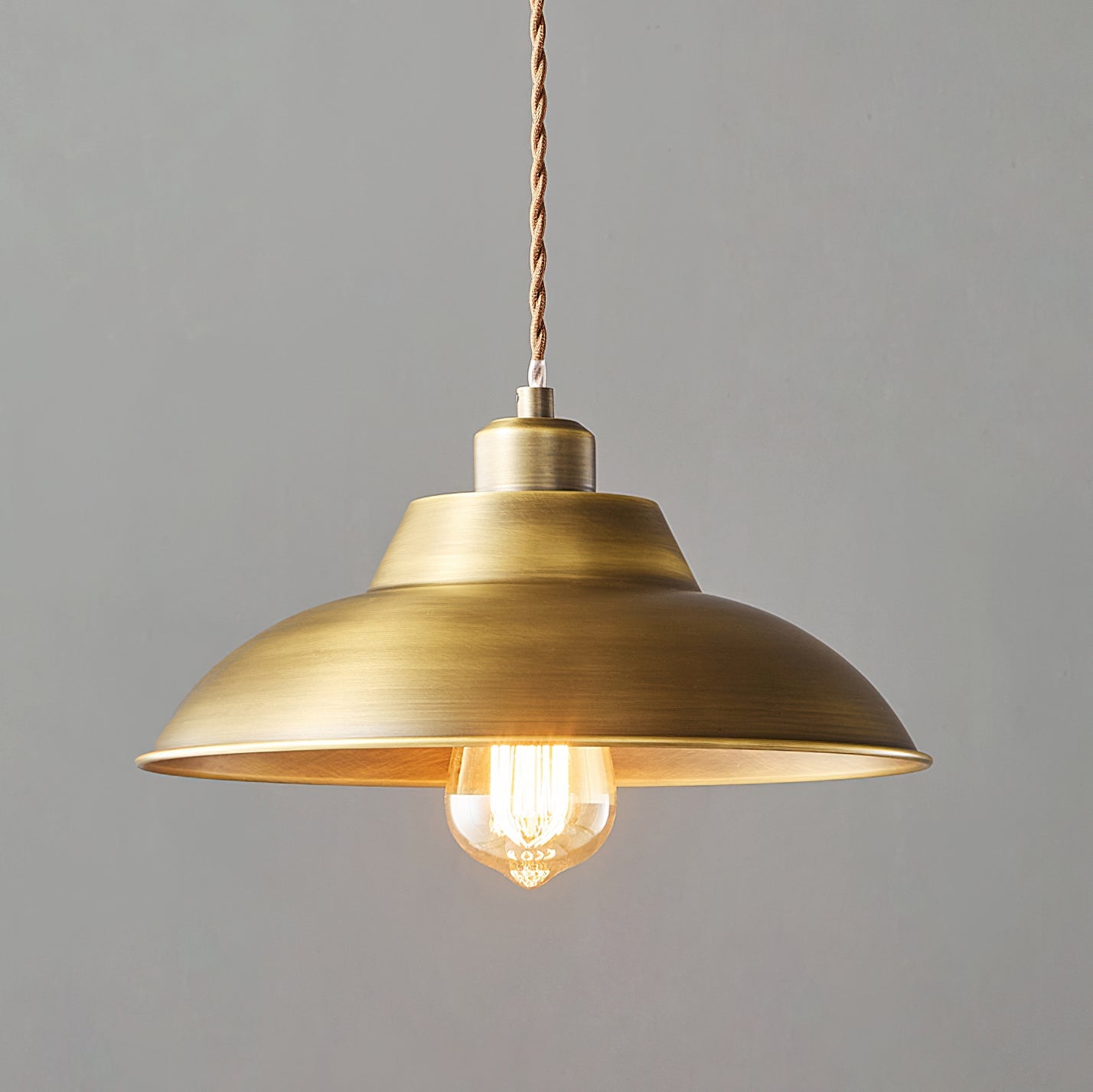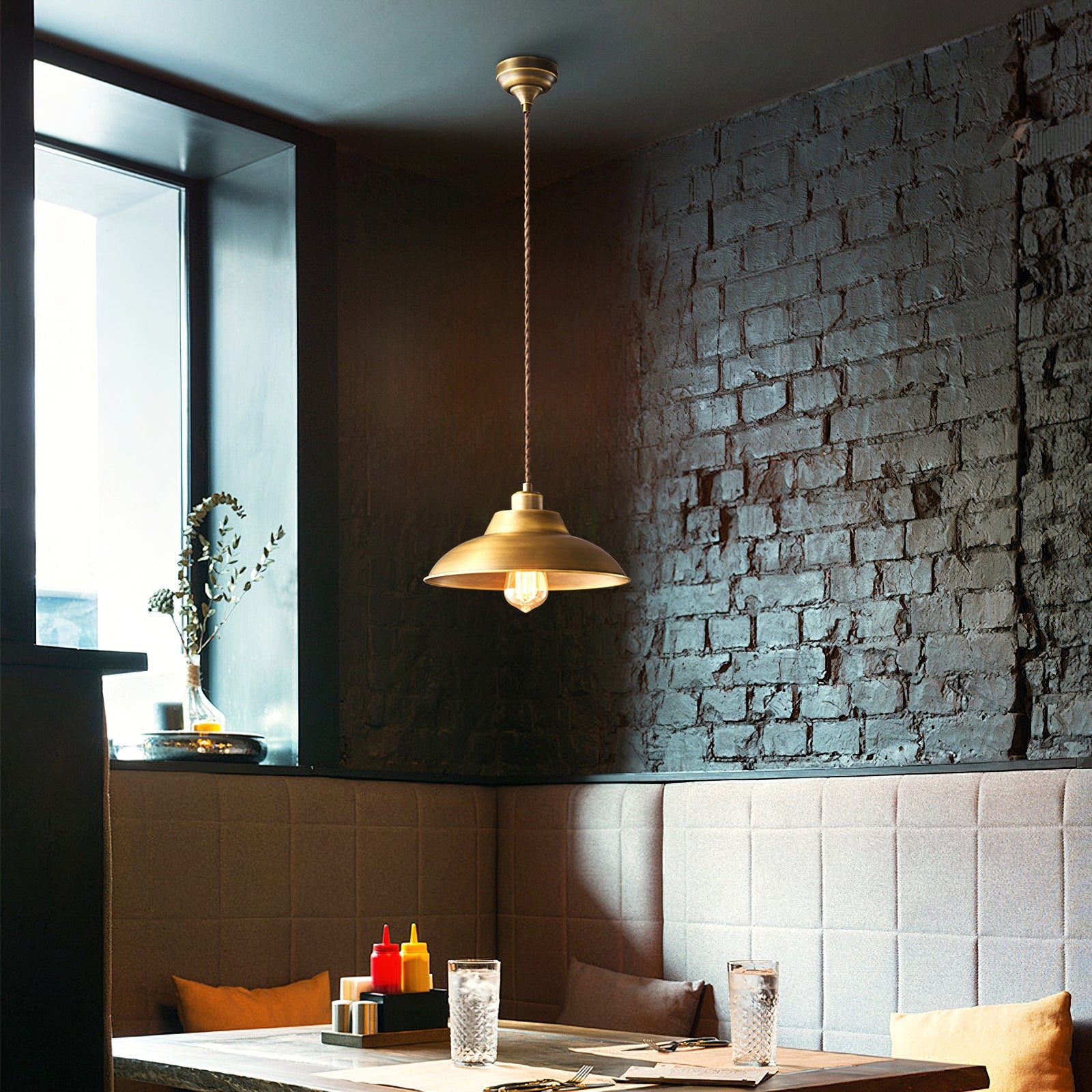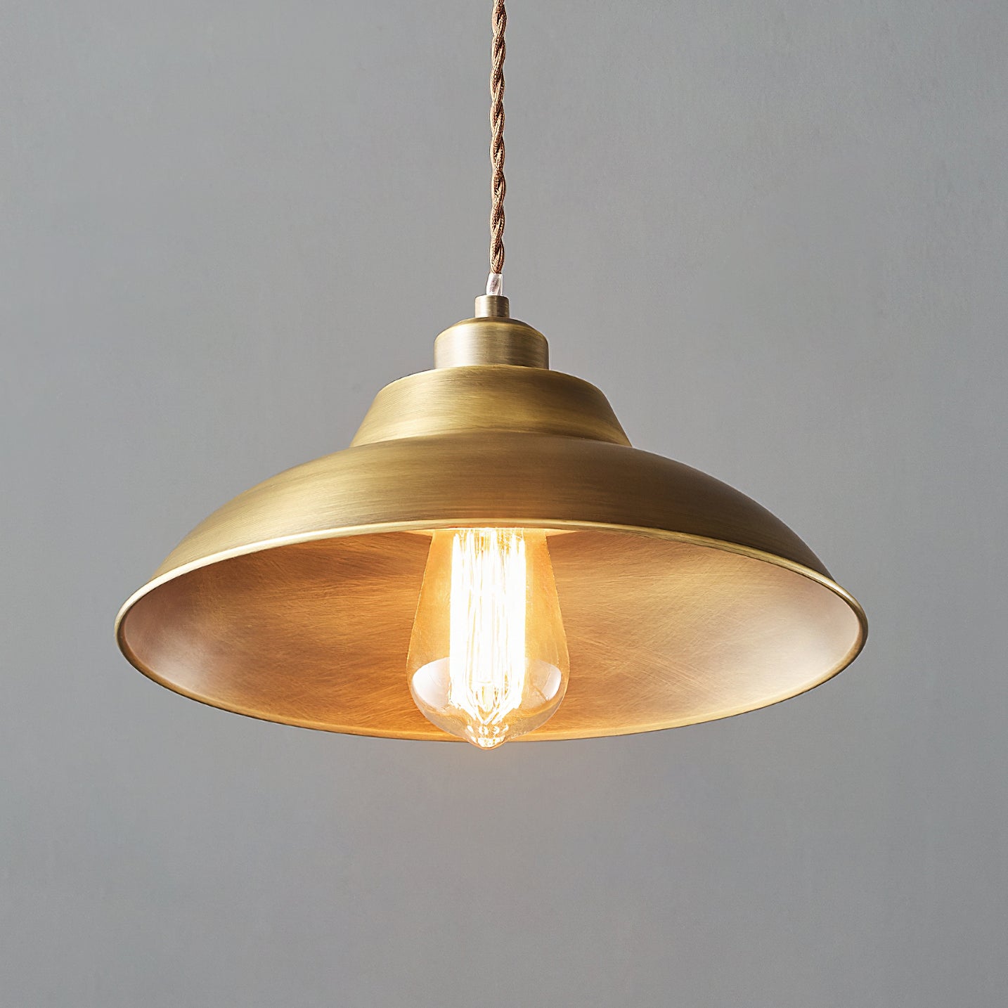 The Maeve Pendant Light by Mooijane is crafted from solid brass, featuring a graceful curved arm and wide flared shade. Its polished finish radiates a warm metallic glow that naturally develops a rich patina over time. Designed to pair beautifully with an exposed Edison bulb, it casts a soft, nostalgic light—perfect for adding character to both industrial and vintage-inspired spaces.