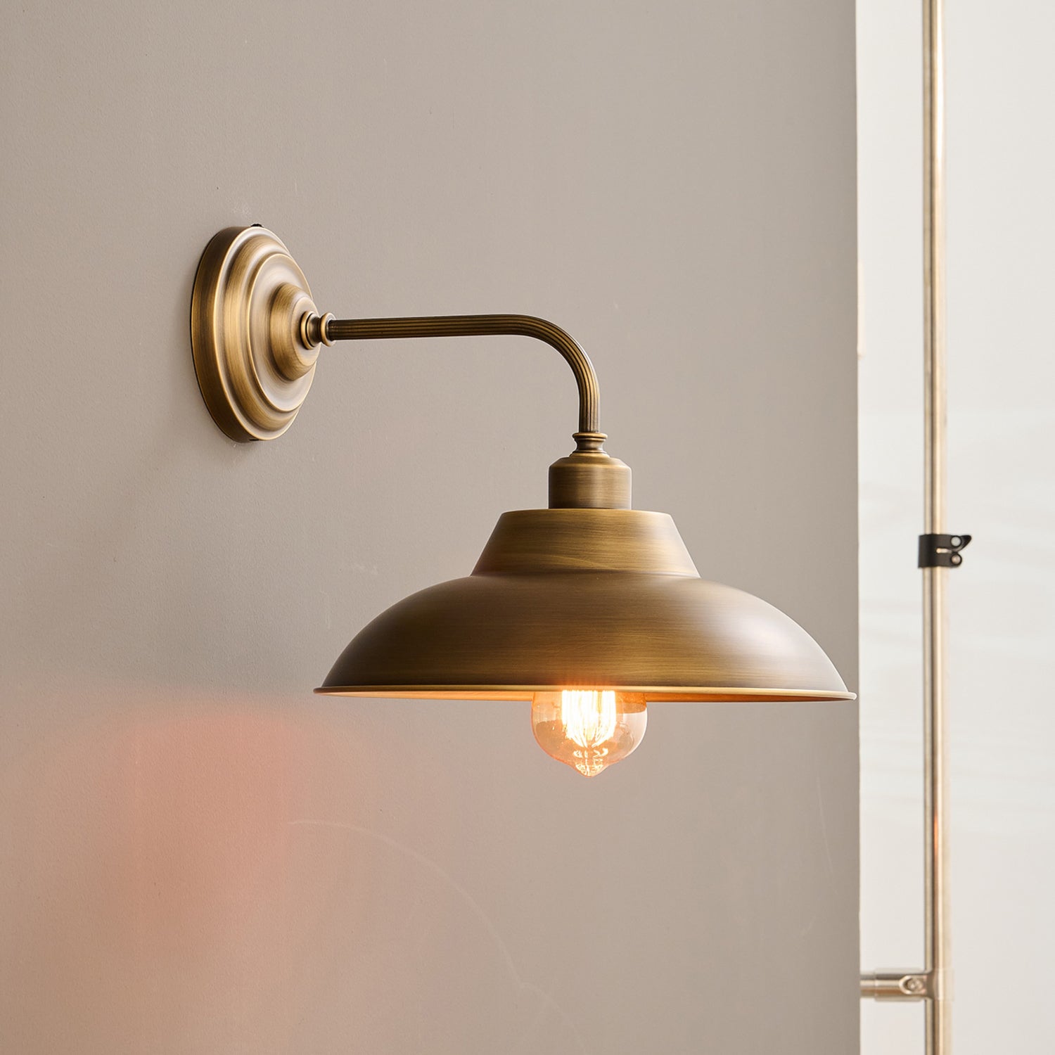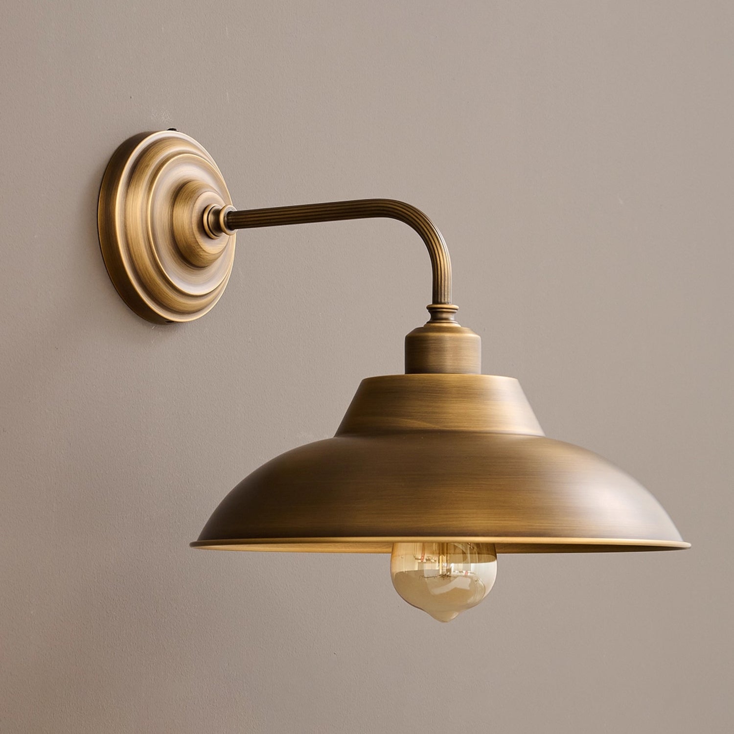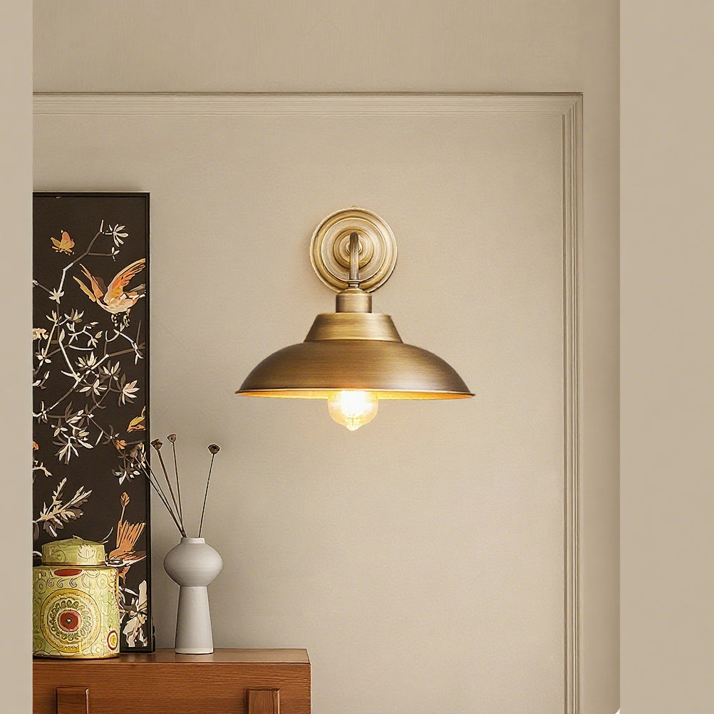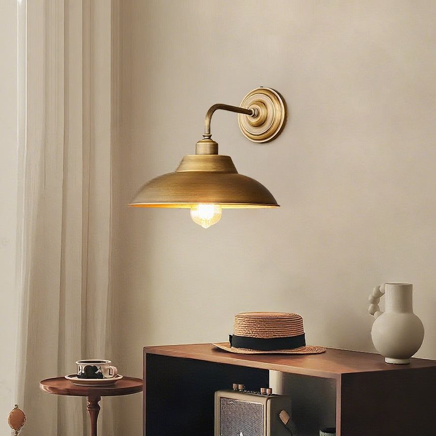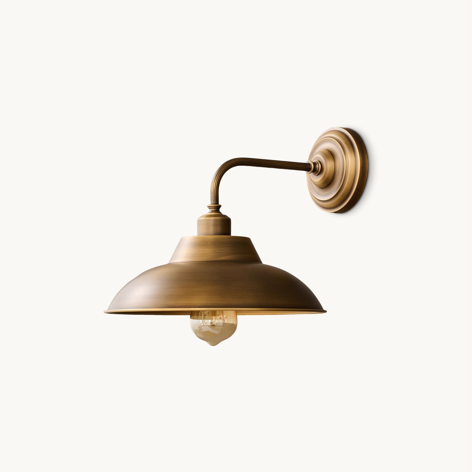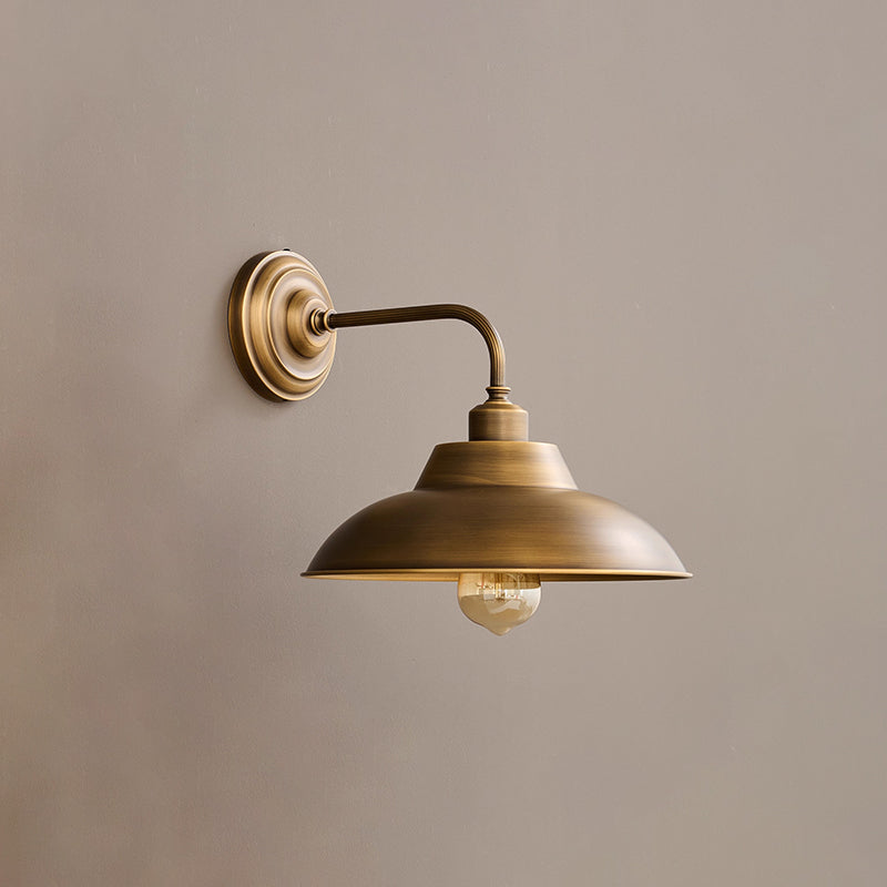 The Maeve Wall Sconce by Mooijane is crafted from solid brass, showcasing a timeless design with a curved arm and wide flared shade. Its polished finish offers a warm metallic glow that develops a natural patina over time. Paired with an exposed Edison bulb, it casts a soft, nostalgic light that enhances both industrial and vintage-inspired interiors.